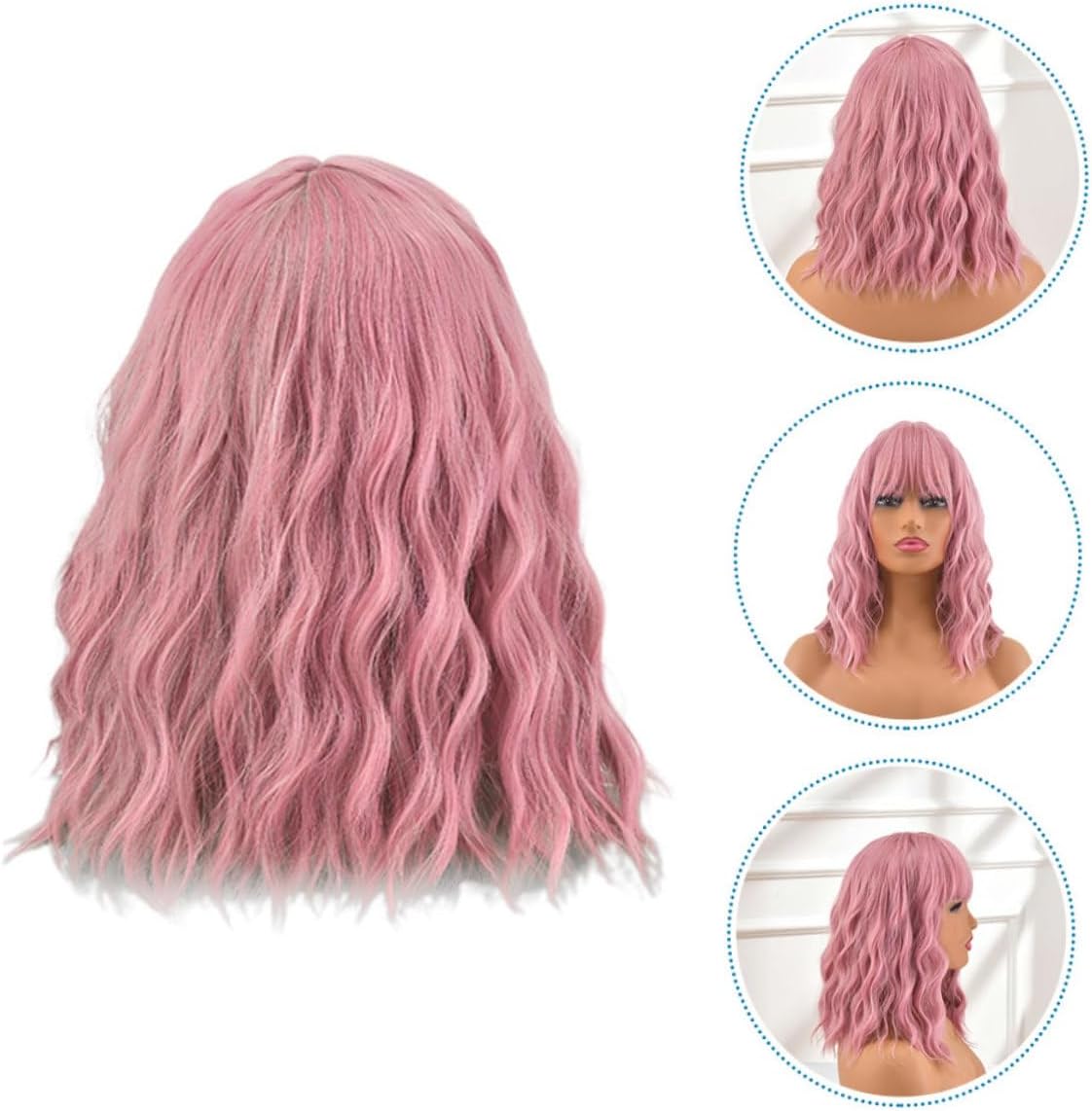 dei pacchetti 1 parrucca da cosplay Caratteristiche -Materiale: parrucche per feste in maschera in fibra ad alta temperatura -Dimensioni: 35,00X35,00X10,00 cm/13,76X13,76X3,93 pollici parrucche alla moda -Colore: rosa ondulati da festival - Realizzata con materiali affidabili, la parrucca ondulata sarà durevole, pratica e affidabile per l'uso a lungo termine delle parrucche cosplay colorate. - La parrucca da festival può mettere meglio in risalto il tuo fascino e la tua personalità e può anche essere un ottimo accessorio per le foto cosplay. - Potrebbe essere un decorativo e carino per i tuoi amici, familiari, partner di ballo e altri cosplayer in maschera. - La parrucca ha un aspetto chic e alla moda, attraente ed elegante e ti farà diventare il delle feste. - Adatto per Halloween, cosplay, costumi, feste a tema, mascherate, balli di fine anno, serate fuori, Carnevale, pesce d'aprile e qualsiasi occasione per ondulati alla moda. Descrizione della merce finti per mascheramento La parrucca ondulata da donna è adatta a tutte le occasioni. parrucche cosplay per le vacanze La parrucca ondulata è realizzata in materiale stabile e affidabile, molto adatto per un uso a lungo termine. parrucche da festa Puoi provare a cambiare i tuoi stili quotidiani, tranquilli, vivaci, adorabili, incantevoli e così via