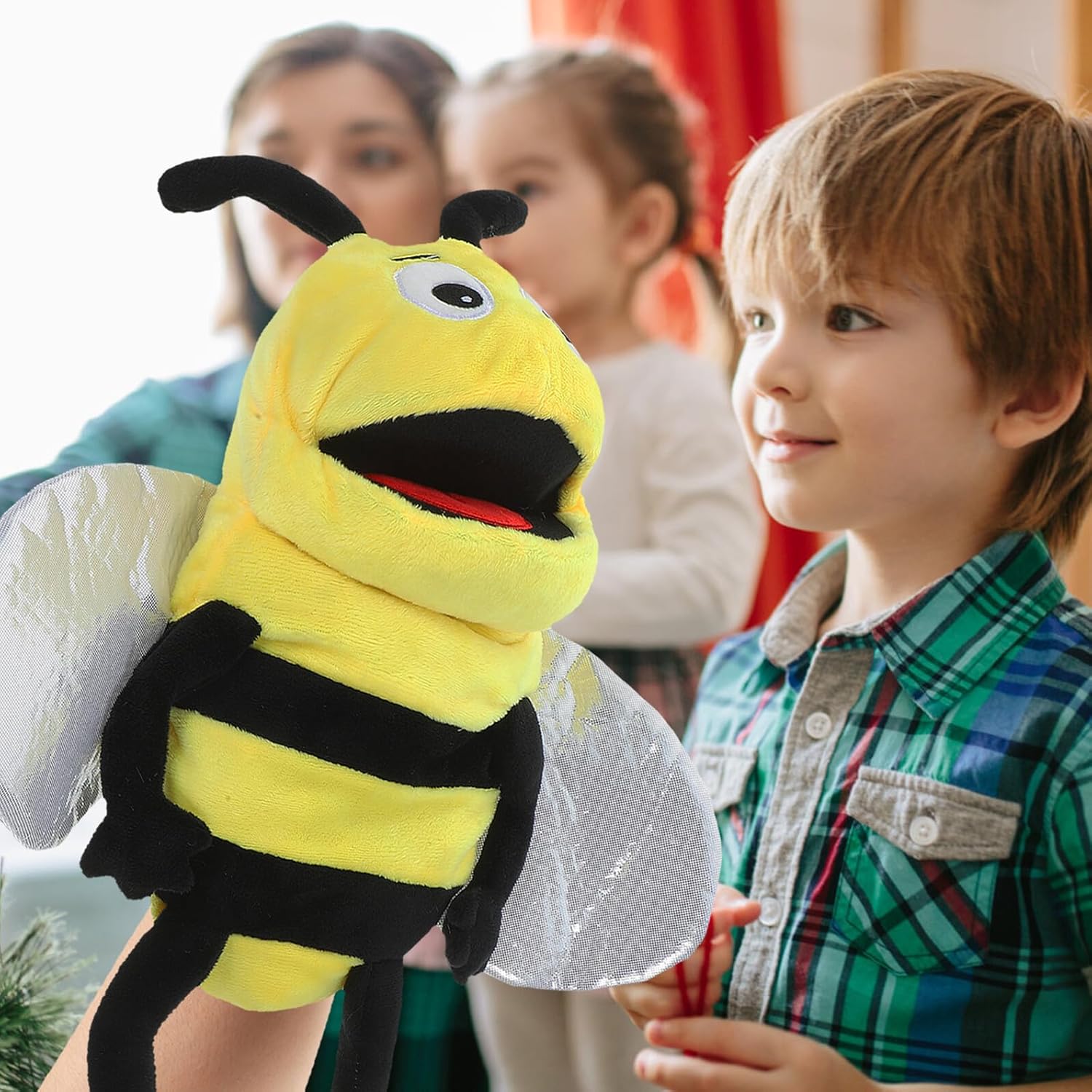 Burattini da dito per la famiglia - racconta storie e gioca con il bambino e regala una favola della buonanotte, burattino da dito delle api Burattino da mano per la famiglia - il nostro burattino da mano è realizzato in morbido cotone pp e materiali morbidi, morbidi e confortevoli, lavabili e facili da pulire, burattino da mano per giochi di ruolo Burattino da mano - il simpatico burattino da mano a forma di ape può essere ampiamente utilizzato in presentazioni, giochi di ruolo, conservazione, narrazione, burattini per bambini Burattini per ragazze - perfetti per attività di fantasia e giochi interattivi, migliorano le capacità di comunicazione e le relazioni genitore-figlio, burattini di peluche Bambini: un fantastico interattivo per la casa, la scuola, l'asilo e altri centri di apprendimento, piccola marionetta
