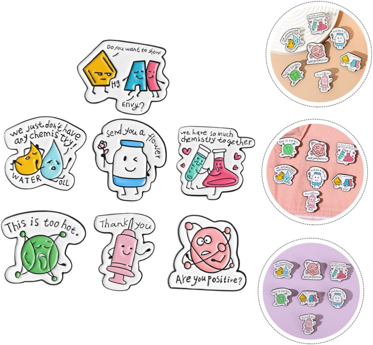 pacchetto include 7 spille da di chimica dei cartoni animati Caratteristiche -Informazioni sul prodotto: Spilla con esperimento di chimica -Colore: spilla con distintivo di colori assortiti -Materiale: spilla a forma di cartone animato in di -Dimensioni: spilla per vestiti 3,00X3,00X1,00 cm/1,18X1,18X0,39 pollici - design, spilla estetica può sicuramente farti diventare una spilla da scientifico accattivante. - Ampiamente utilizzata per decorare , borse, cappelli, vestiti, sciarpe, foulard e altri indumenti, spilla da bavero può adattarsi alle tue esigenze di spilla da . - Realizzata in materiale di qualità e di buona fattura, spilla per è per essere utilizzata a lungo come spilla per . - Struttura robusta, facile da usare, con elevata durezza, spilla per zaini non si deformerà romperà facilmente spille per gioielli. - spilla da abito è adatta per essere indossata quotidianamente o in molte come compleanni, spettacoli, appuntamenti, può essere usata come spilla divertente per infermieri e dottori. Informazioni sulle merci Spilla da bavero design , può essere utilizzata per decorare zaini, vestiti come , cappelli, sciarpe, scialli e altro ancora. Spilla a forma di cartone animato. Decorativa, , tutto può essere combinato nella spilla da bucato! Realizzata con materiali metallici di qualità e con una lavorazione artigianale dettagliata, spilla estetica è per un a lungo termine.