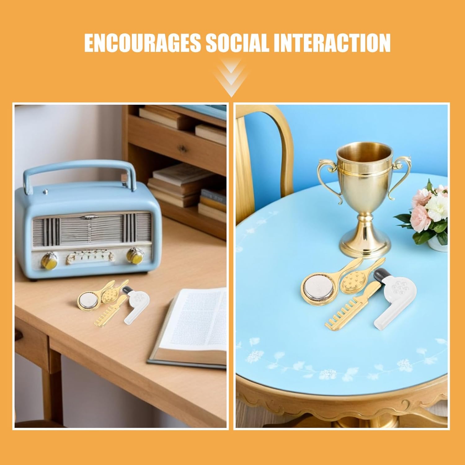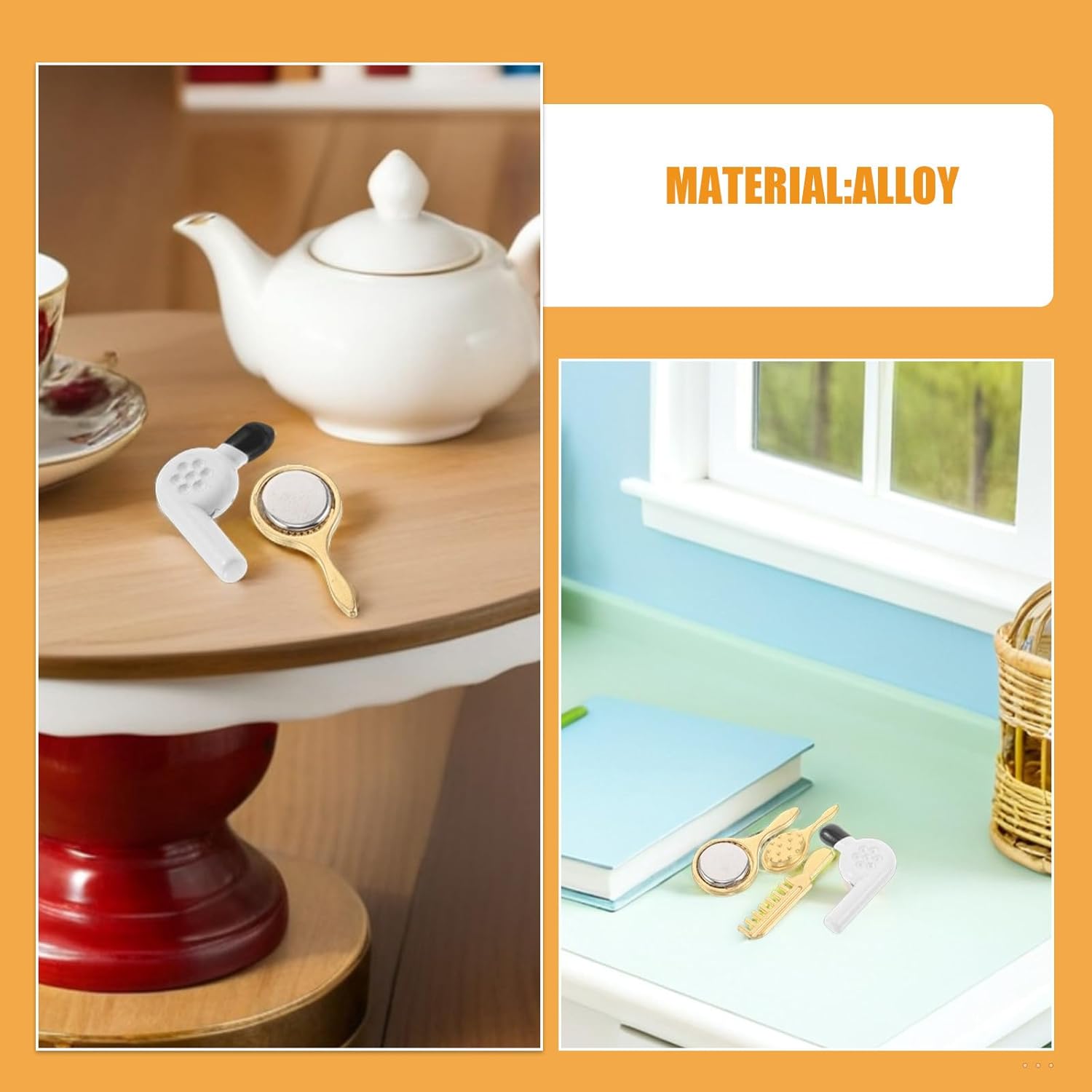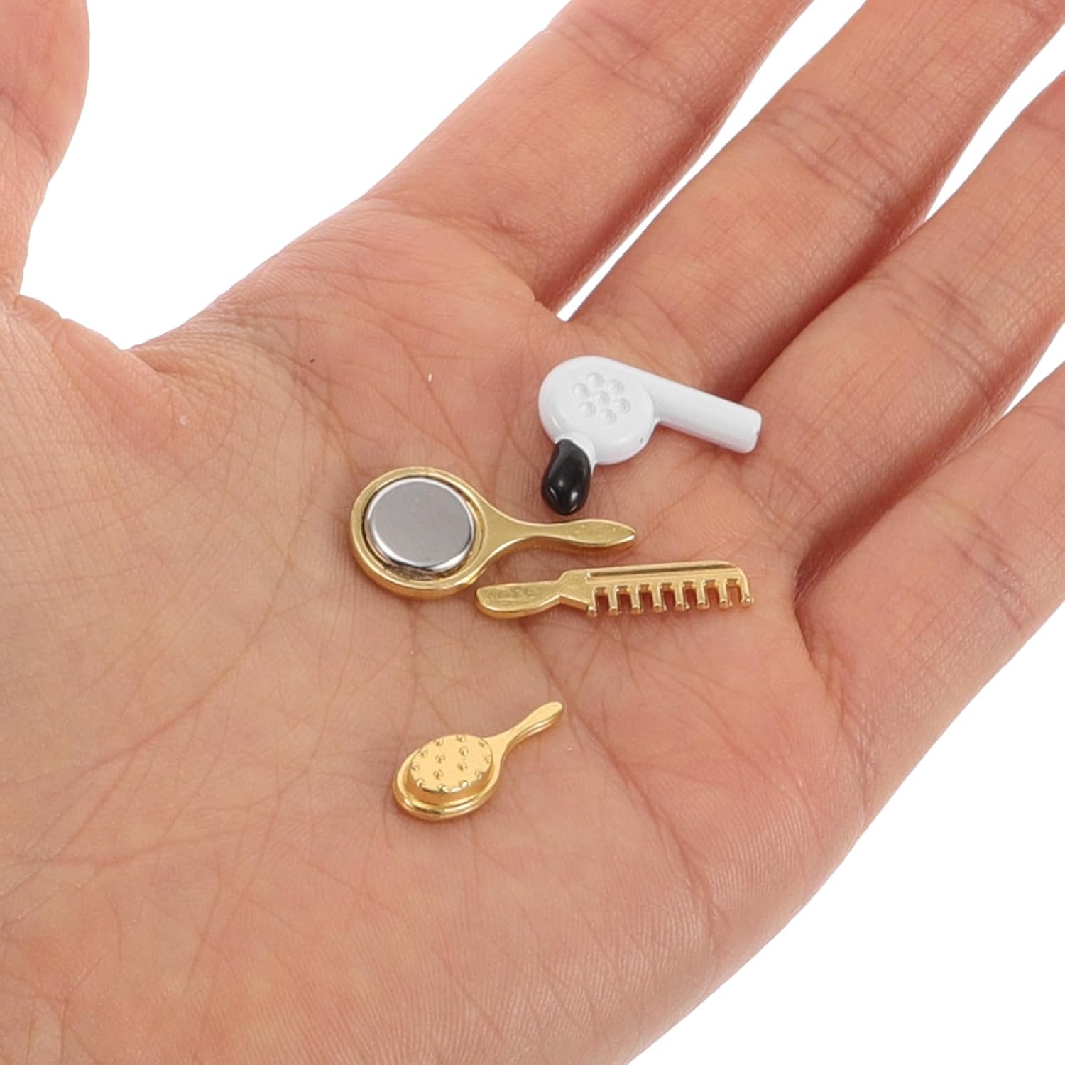 Migliora la creatività e l'immaginazione: il set di mobili da bagno in miniatura per la casa delle bambole con mini set da gioco ispira i bambini a creare scene uniche per decorare la casa delle bambole Kit completo di accessori per il bagno: include un pettine in miniatura, un asciugacapelli, uno specchio e un mini accessorio per il bagno, fornendo gli elementi per un realistico allestimento del bagno della casa delle bambole per giochi di finzione: il kit per il trucco della casa delle bambole e l'asciugacapelli giocattolo consentono ai bambini di esplorare scenari di gioco di ruolo fantastici, stimolando così la loro creatività e capacità di narrazione Compatti e facili da riporre: gli accessori da bagno in miniatura e i mini la spazzola per capelli pieghevole è progettata per essere facilmente riposta, rendendola ideale per piccoli spazi o viaggi Design sicuro e protetto: gli accessori da bagno in miniatura e le decorazioni per la casa delle bambole in miniatura sono realizzati con materiali che garantiscono sicurezza e divertimento a lungo termine
