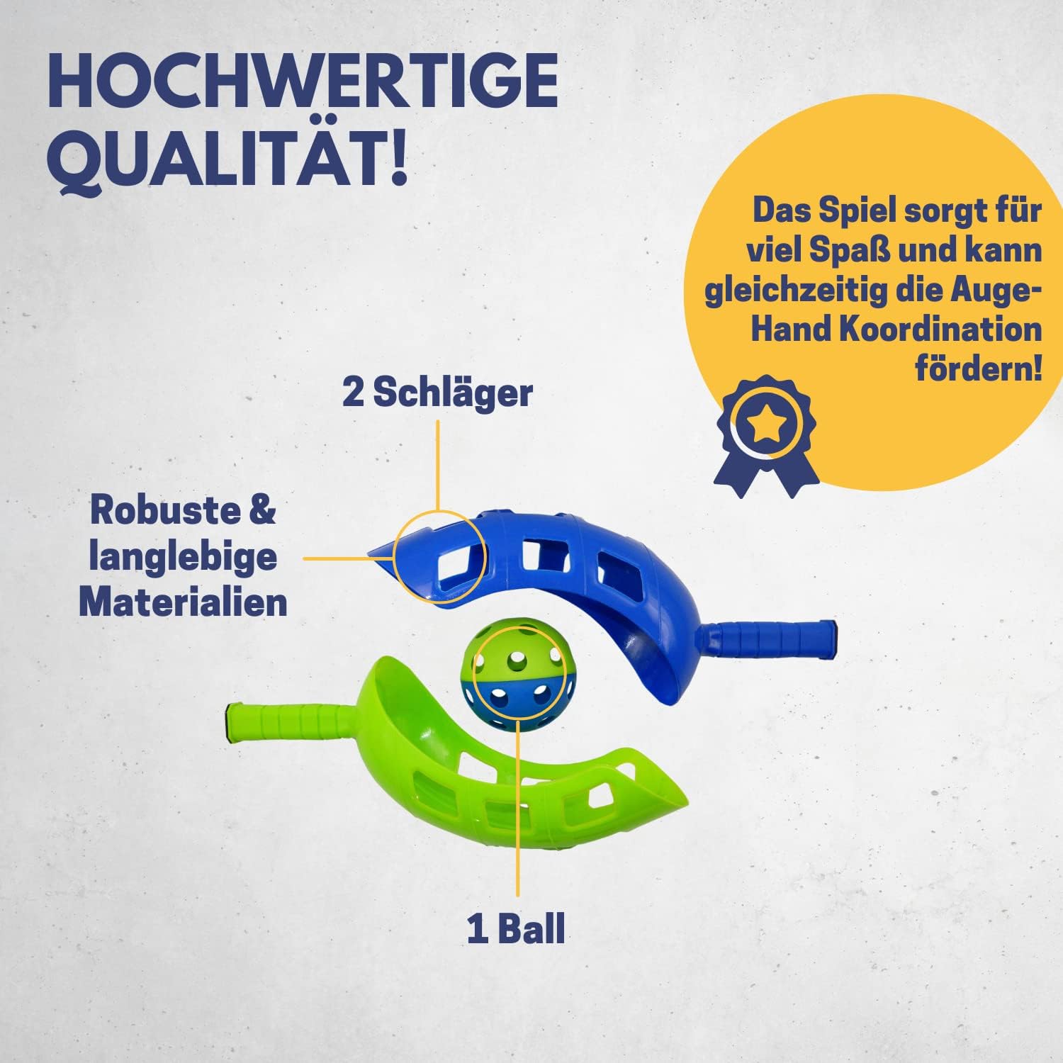 Gioco di squadra: due partner si affrontano ad una distanza di almeno 10 metri e giocano con due racchette Scoop una pallina che non deve toccare terra prima di averla presa. Per grandi e piccini - Il gioco del beach ball è per tutta la famiglia. Il gioco da esterno per adulti e bambini garantisce tanto divertimento nel giardino di casa o al parco, rendendo divertente il gioco all'aria aperta. Durevole: il materiale particolarmente stabile e robusto ti consente di avere qualcosa di durevole nel gioco della mini palla Lacrosse. La palla e la racchetta sono in plastica. SET DA GIOCO PER BAMBINI - 2 racchette in plastica da 85 g in 39 x 11 cm I Colore pallina: blu/verde I Colore racchetta: blu (1 racchetta) / Verde (1 racchetta) I 1 pallina, diametro: 90 mm Qualità per convinzione - Per voi, come azienda familiare di Brema, da oltre 40 anni definiamo tendenze nei prodotti per lo sport e il tempo libero - La vostra soddisfazione è la nostra motivazione