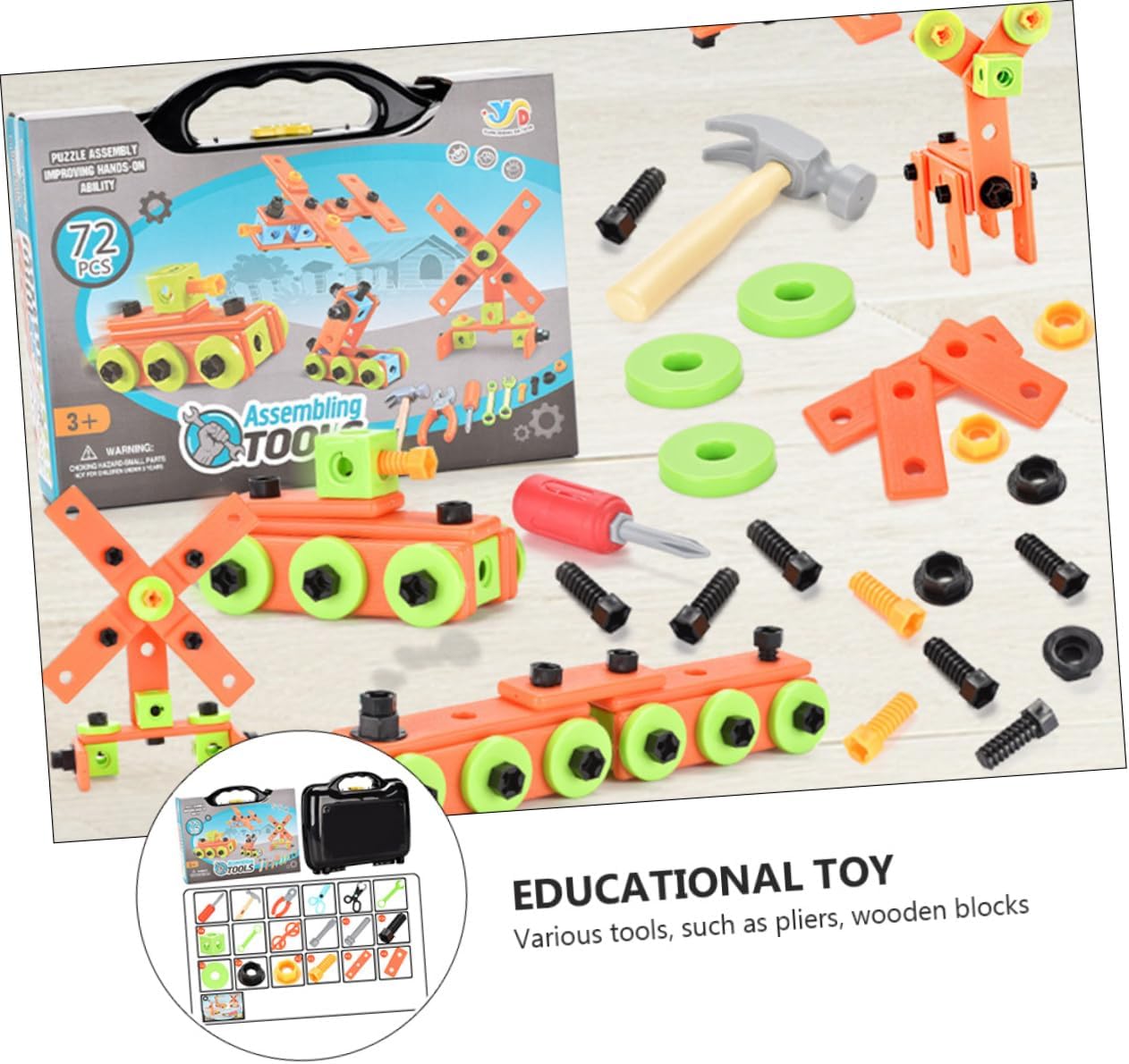 Modelli di strumenti: per sviluppare il cervello dei ed esercitare le loro capacità cognitive, kit giocattolo combinato Giocattolo per : è sicuro, non danneggia la salute dei , non devi preoccuparti della sua sicurezza, giocattolo educativo Giocattolo per : questo è un set di giocattoli per da assemblare, un giocattolo divertente, pratico ed educativo Giocattolo di assemblaggio per : vari strumenti, come pinze, blocchi di legno, martello da carpentiere, occhiali e cacciavite, sono disponibili per far giocare i , giocattolo per viti dadi di assemblaggio Forniture per : vari modelli e colori intensi possono attirare i a giocare, giocattolo con vite a dado