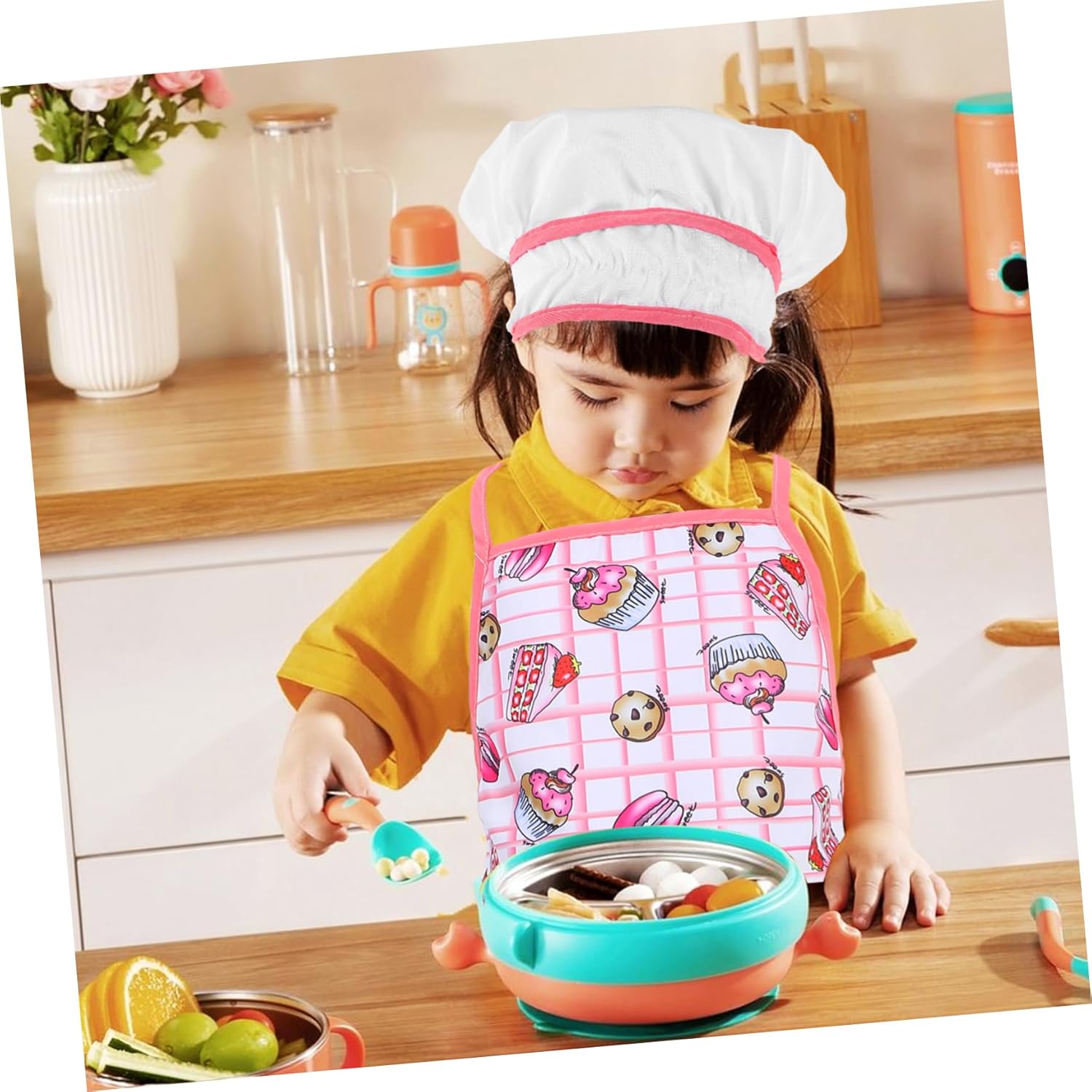 Grembiule per bambini e cappello da cuoco: il bel vestito li rende adorabili e previene l'olio o le bruciature. porta più divertimento e sorpresa per i bambini. Grembiuli per ragazzi per cucinare i bambini: con colori vivaci, stampa chiara, sensazione di mano confortevole. offrirti una buona esperienza utente. Grembiuli da cucina per bambini: è il modo perfetto per legare con i bambini durante le festività natalizie, lasciando che imparino le abilità di cottura con te. Grembiuli da cucina per bambini: tuo figlio può indossare il grembiule e il cappello insieme, quindi l'effetto protettivo è migliore. Grembiuli da cucina per bambini e ragazze: sono della misura giusta per le manine dei più piccoli che sono curiose di imparare a cucinare o cuocere al forno.