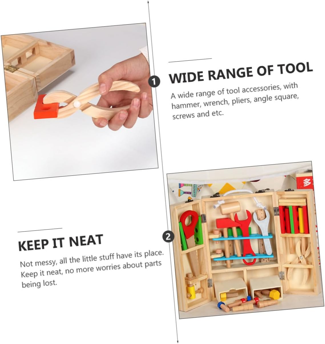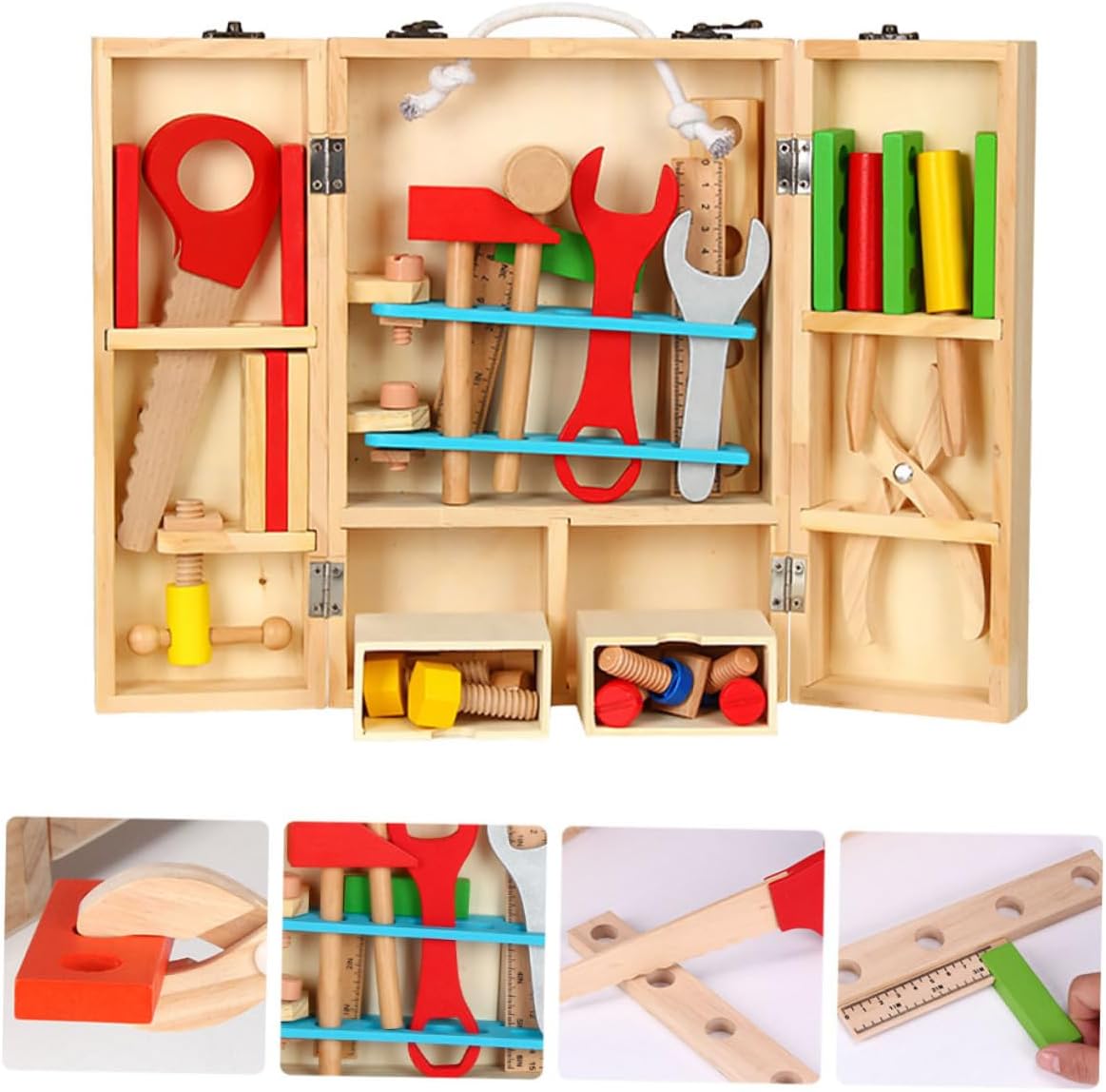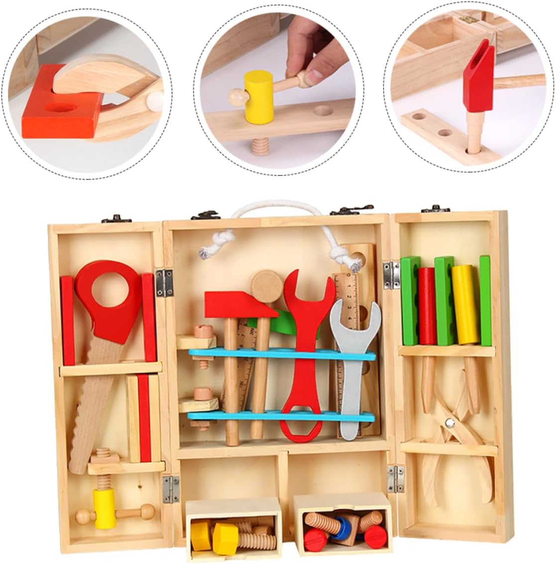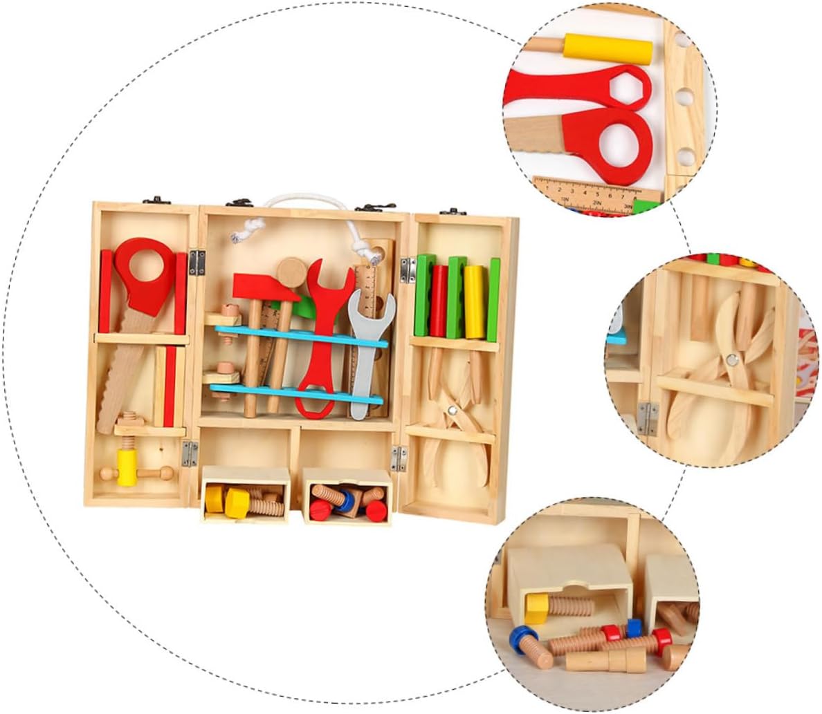 Giocattolo da gioco di ruolo: materiale in legno, bordi lisci, non fa male ai , un fantastico compleanno per il tuo , ragazzo, ragazza, nipote, nipote, giocattoli da costruzione Giocattolo smontabile: ispira lo spirito di esplorazione del tuo , aiuta il tuo a gli strumenti e ad apprendere le loro funzioni, giocattolo di manutenzione ingegneristica Giocattoli per attrezzi di riparazione per : il nostro set di strumenti di ingegneria è dotato di una valigia, tutti gli accessori possono essere riposti nella valigia, giocattolo per attrezzi di manutenzione Giocattolo per riparare gli strumenti per : questo design realistico può aiutare i a costruire i blocchi molto più facilmente e stimolare la loro curiosità verso gli strumenti, tenendoli intrattenuti per ore, giocattolo di costruzione di assemblaggio Giocattolo per la manutenzione del legno: una di accessori per utensili, con martello, chiave inglese, pinze, squadra angolare, viti e così via, giocattolo di costruzione e assemblaggio