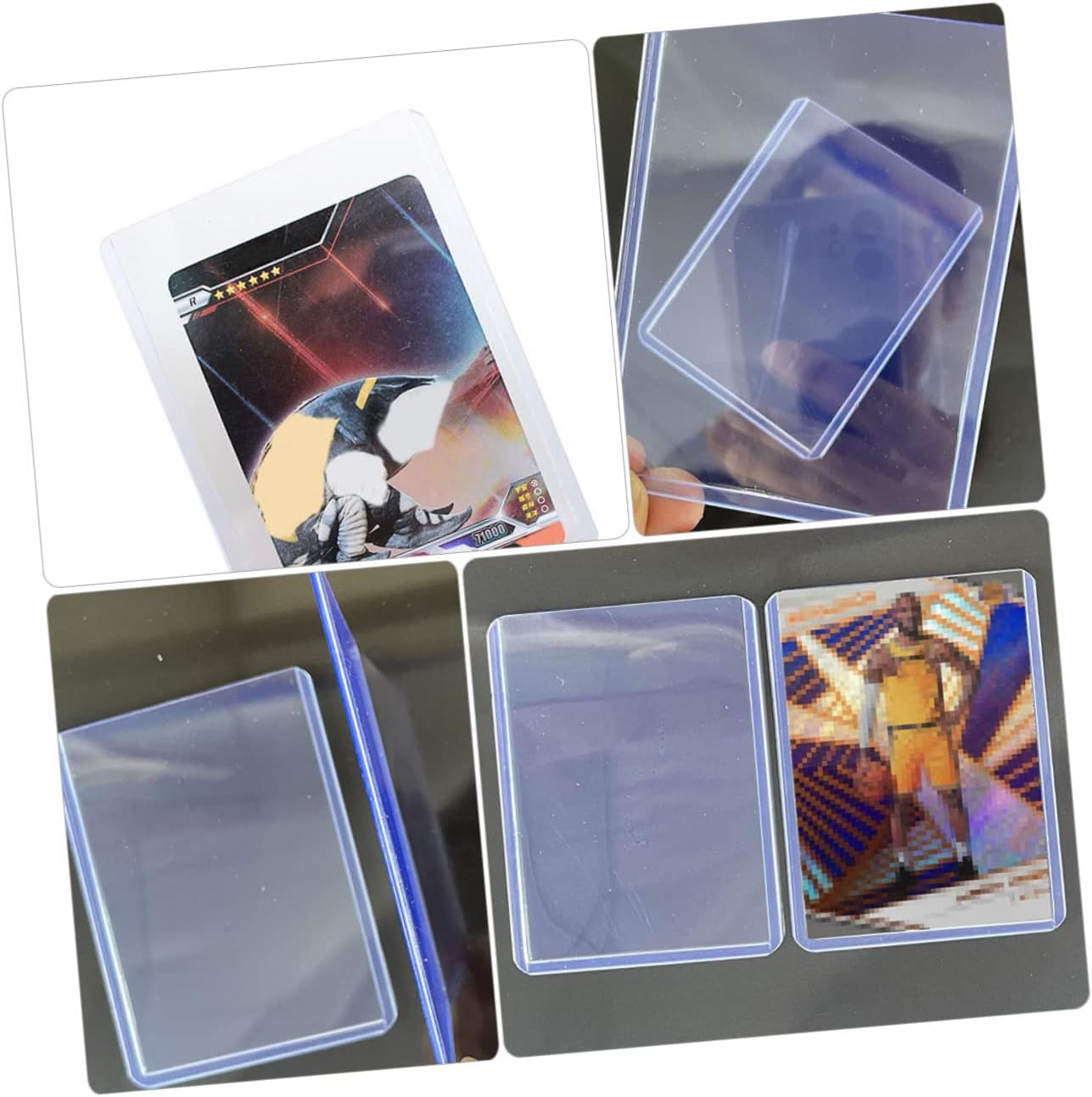 Protezioni da baseball: forniscono una protezione sicura per targhetta con , badge, carte d'identità, biglietti da visita, carte di credito, ecc., custodie per carte Coperture delle carte: il titolare della carta garantisce la sicurezza della tua carta durante la conservazione, l'esposizione e il trasporto, coperture delle carte Supporto per caricamento laterale: le dimensioni di queste copertine per carte sono adatte per la maggior delle carte da gioco o altre carte sul mercato, buste protettive per carte Buste per carte-- pregevole fattura, sbavatura sulla superficie, anche se il bambino giocando e usandola non danneggerà la pelle delicata del bambino, copertura in pvc delle carte da gioco Protezioni trasparenti per carte: adottano un design aperto superiore, che facilita l'inserimento e l'estrazione delle carte, comode da usare, protezioni sportive