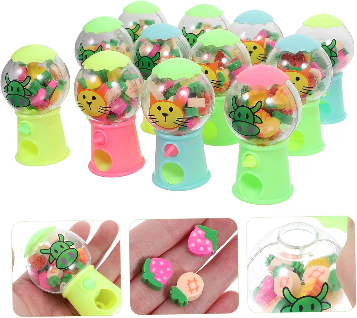 Mini gomme da cancellare: di piccole dimensioni, leggere, possono essere portate in qualsiasi luogo di cui hai bisogno, ti permettono di una buona sensazione ogni volta che usi, per bambini Distributore di gomme per bambini: il design creativo della modellazione può attirare meglio i tuoi bambini, potranno godersi un momento di gioco indimenticabile, macchina per cancellare i bambini Giocattolo contenitore per gomme: i bambini adoreranno smontarli e giocare, e le gomme da cancellare possono essere un buon articolo di cancelleria per cancellare i segni della matita, adorabili giocattoli per gomme da cancellare Festa dei bambini: utilizzo di materiale affidabile e con lavorazione squisita per resistere e utilizzare questo giocattolo, bambini Studenti stazionari: realizzati con materiali, riutilizzabili e, possono supportare un lungo periodo di utilizzo, giocattolo per cancellare