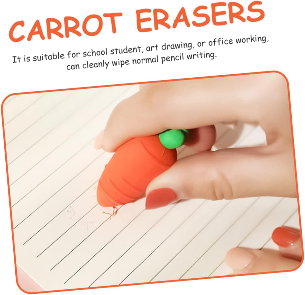 Gomma per matita portatile: fantastica e divertente collezione, articoli per feste, premi scolastici o natalizi, gomme per carote Cancelleria per gomme per studenti: un'ampia di scenari di utilizzo, può essere utilizzata da studenti, impiegati e designer, gomme per studenti Gomme da cancellare decorative per carote: il prodotto è realizzato meticolosamente e il non sbiadisce facilmente, articoli di cancelleria Gomme da cancellare - adottate, ti serviranno per molto tempo, gomma da cancellare a forma di cibo Mini gomma: queste gomme sono portatili e leggere, facili da trasportare a scuola, gomme per studenti
