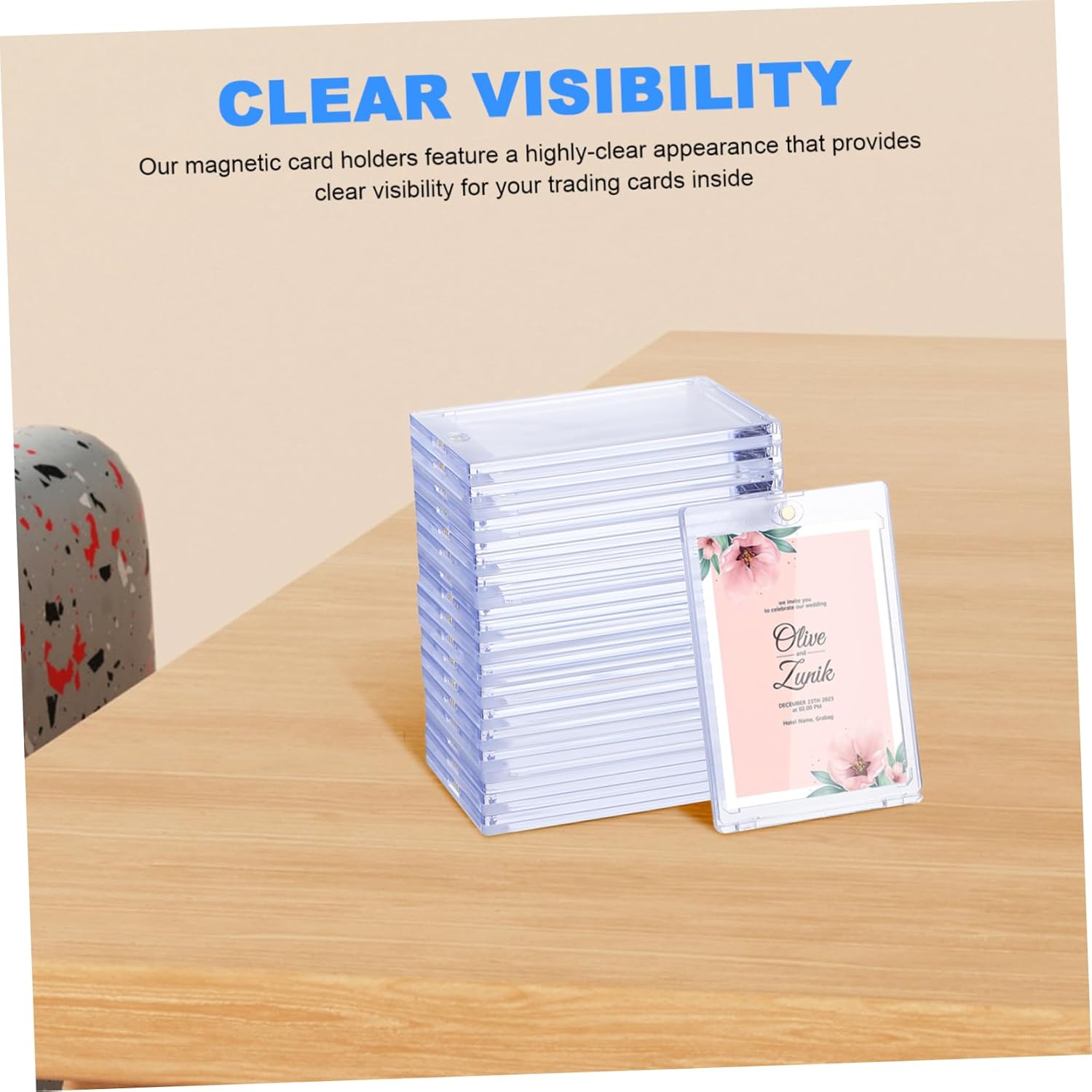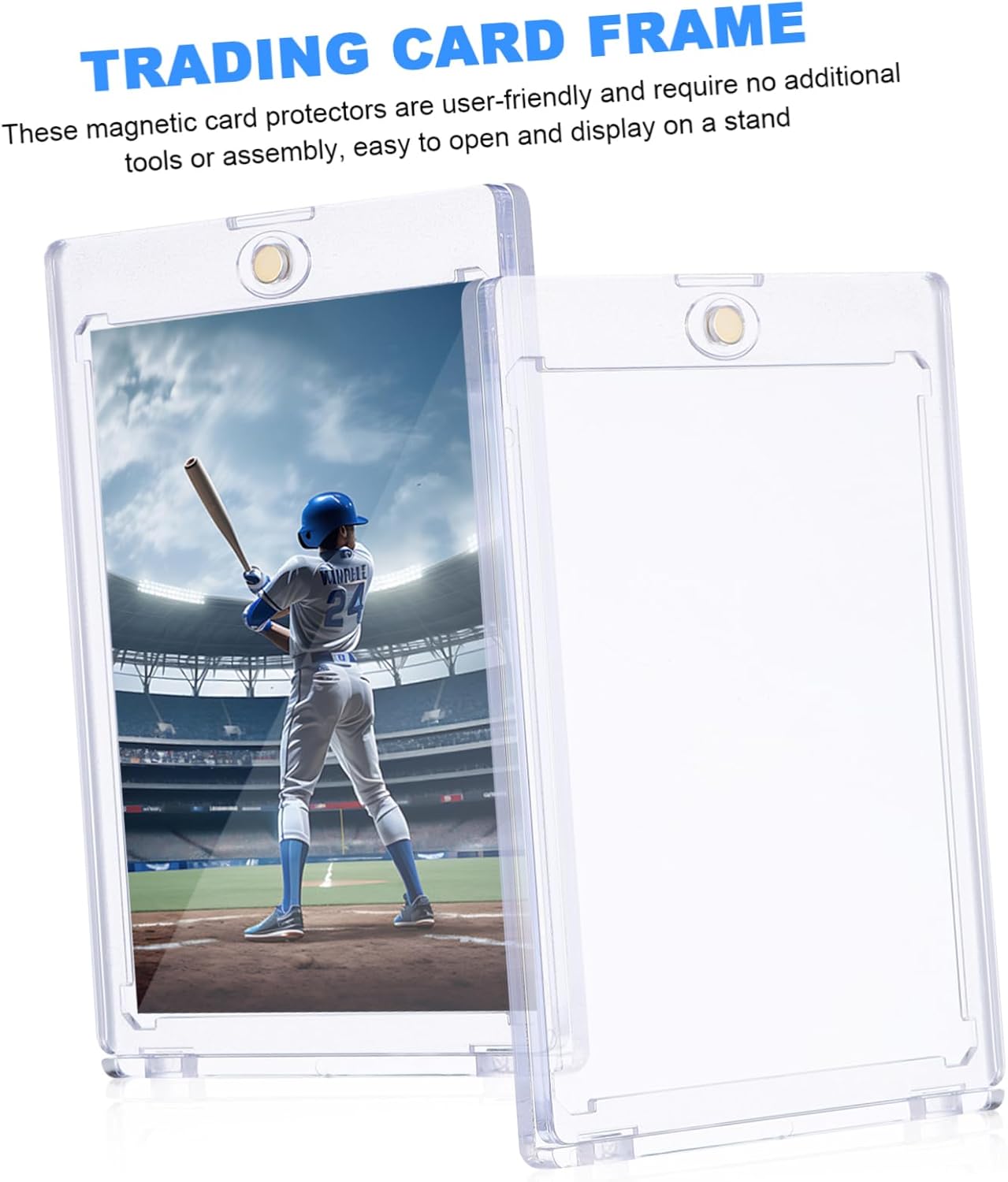 Chiara visibilità: i nostri porta carte magnetici presentano un aspetto estremamente chiaro che fornisce una chiara visibilità per le tue carte collezionabili all'interno, porta carte da baseball in plastica dura, porta carte da basket Chiusura magnetica: le nostre custodie per carte sono dotate di una chiusura magnetica che mantiene le tue carte saldamente in posizione e consente un facile accesso e sostituzione, supporto per carte collezionabili, porta carte trasparenti Facile da usare: queste protezioni per carte magnetiche sono facili da usare e non richiedono strumenti o assemblaggio aggiuntivi, facili da aprire e visualizzare su un supporto, espositore per carte collezionabili, protezioni per carte rigide Uso versatile: i nostri porta carte magnetiche trasparenti sono di dimensioni adeguate per carte collezionabili, carte sportive, carte da gioco, carte celebrità, ecc., porta carte magnetiche trasparenti, protezioni trasparenti per carte Facile applicazione: inserisci semplicemente le tue carte collezionabili nel supporto e la chiusura magnetica le manterrà saldamente in posizione, ti consente inoltre di accedere facilmente alle carte, custodia per carte da baseball, vetrina per carte da baseball
