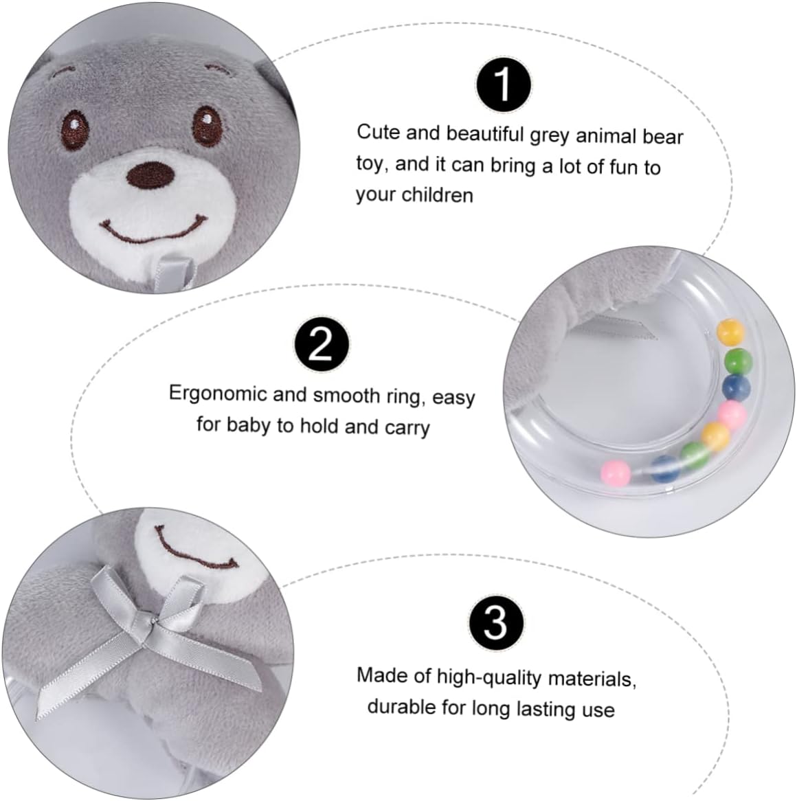 Ciucci per neonati: il sonaglino per bambini, orsetto grigio, per uso esterno ed , come casa, passeggino, camera dei bambini, culla, ecc. ad anello morbido: realizzato in flanella di alta qualità, materiale di cotone pp, sicuro e durevole. Giocattolo per bambini con da : leggero, confortevole al tatto, i bambini possono giocare sempre e ovunque. per bambini in peluche: leggero e portatile, più comodo da trasportare e riporre. Soffici animali di peluche: regalo educativo per il tuo bambino durante i periodi importanti di natale, compleanni, vacanze e halloween.