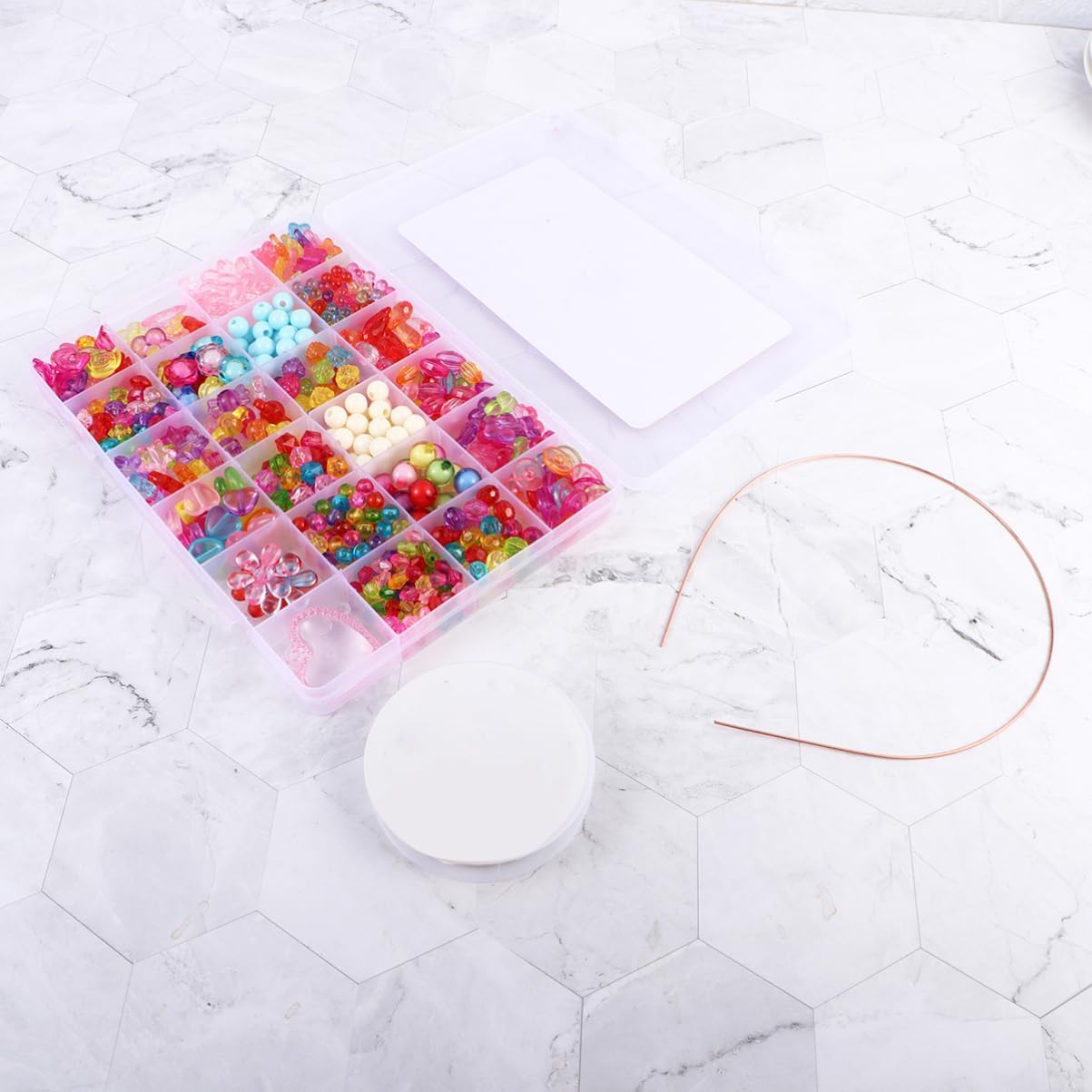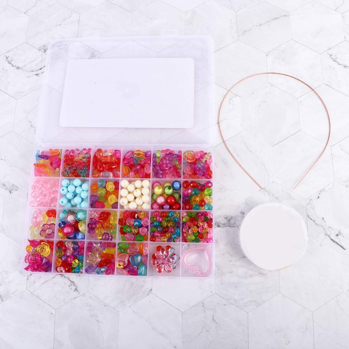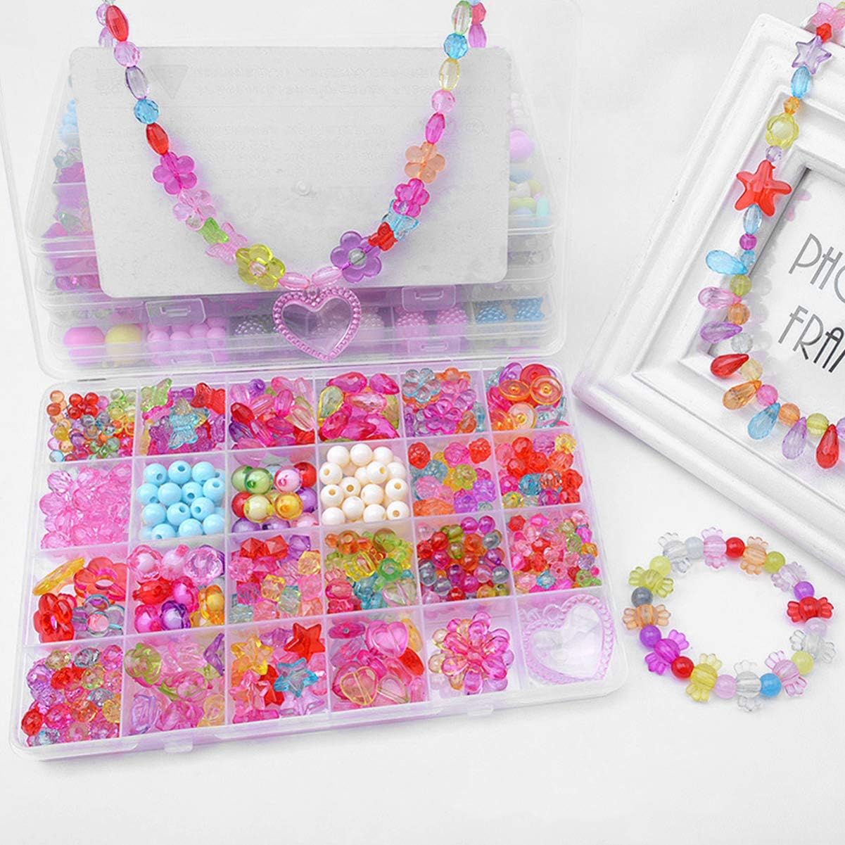 Giocattoli con perline per bambini: il design colorato lo rende più attraente per i bambini, a loro piacerà molto. Giocattoli per bambini per ragazze: realizzato in materiale acrilico, questo giocattolo con perline è sicuro e durevole nell'uso da dei bambini. Perline colorate per bambini: questo giocattolo con perline fai da te è un regalo perfetto per i tuoi bambini, saranno molto felici di ricevere questo regalo. Kit per creare gioielli per bambini: ci sono molti tipi di parti decorative, che possono far sì che tuo figlio faccia ciò che desidera più facilmente. Perline colorate: giocare con questo giocattolo con perline può migliorare l'abilità pratica dei bambini, allenando la loro creatività e il pensiero logico.