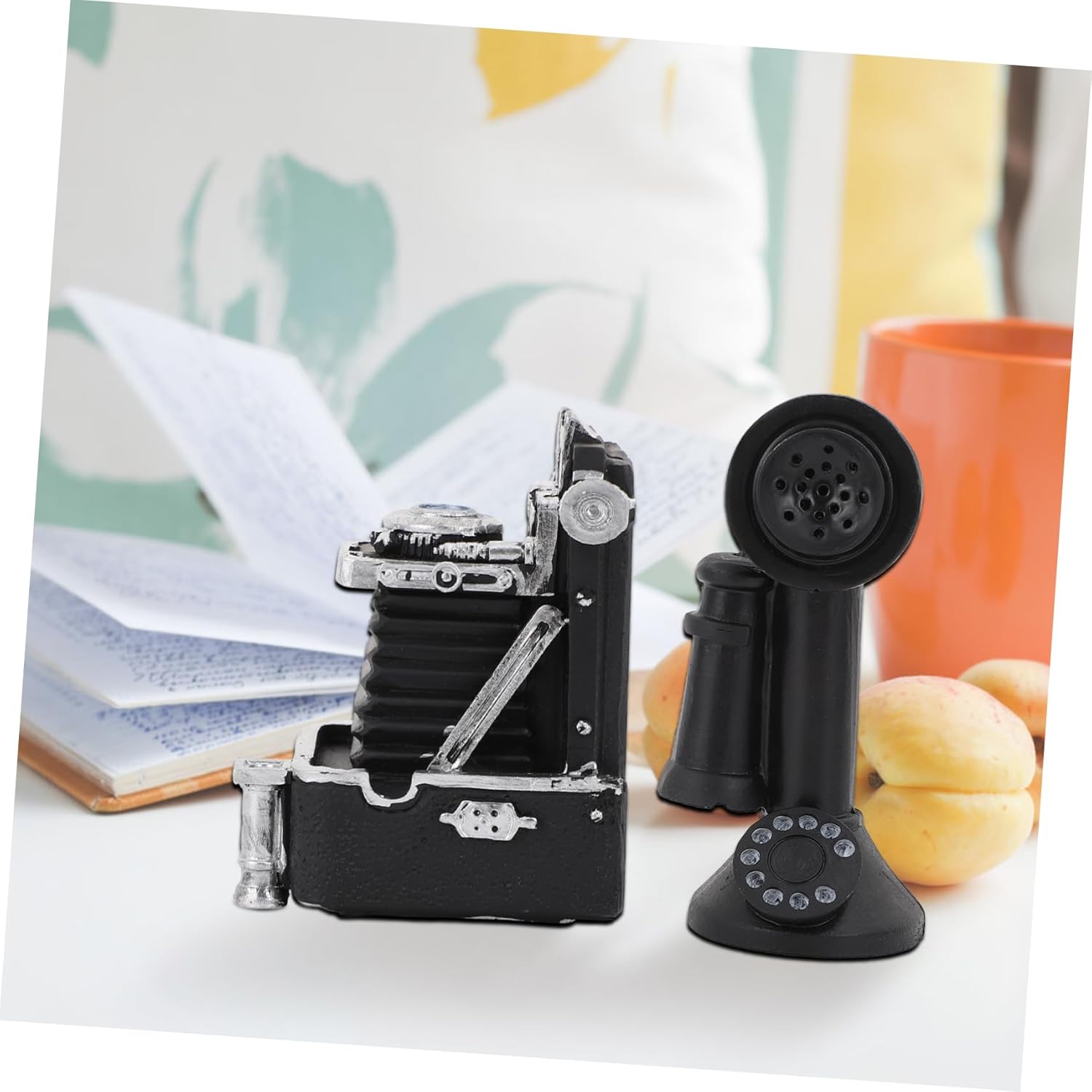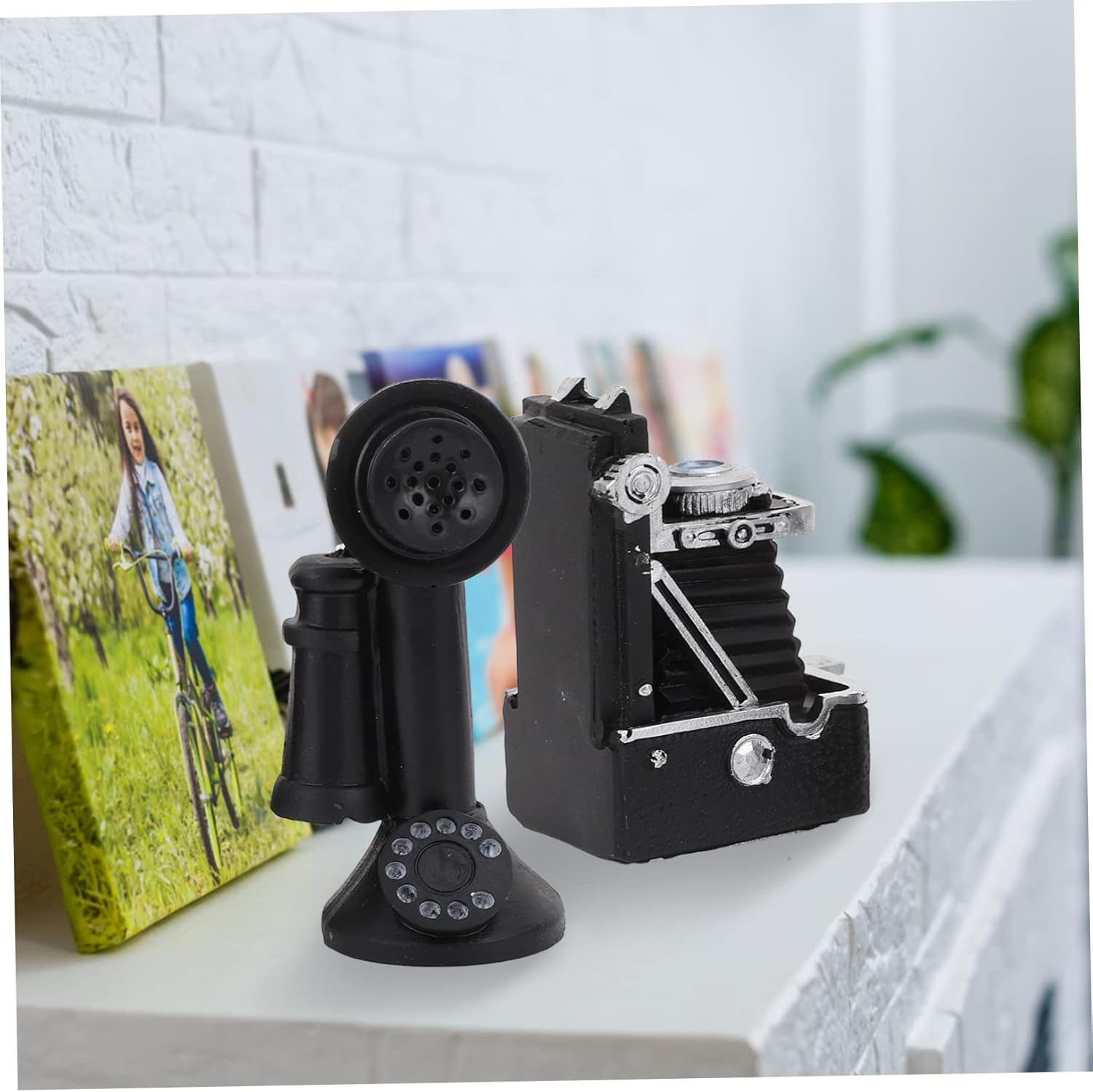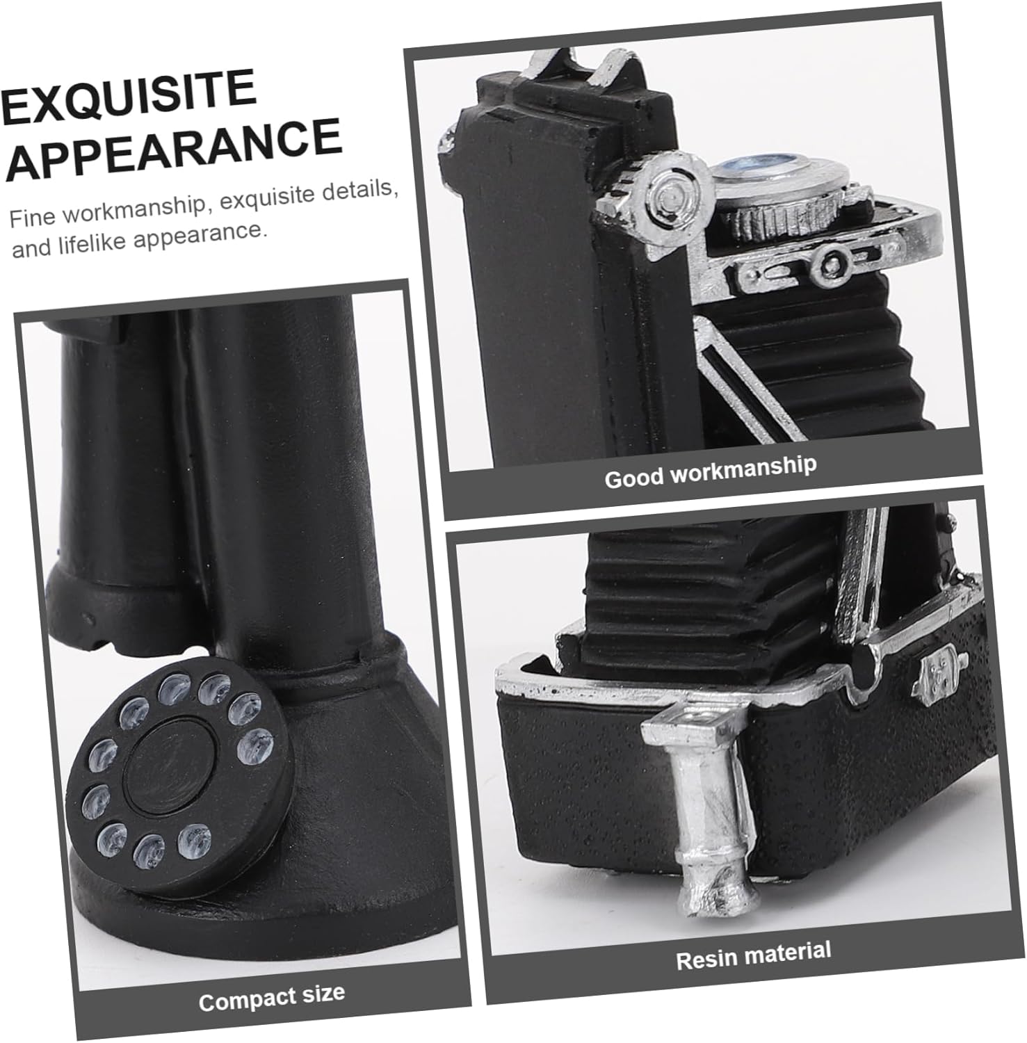 Modello in miniatura vintage: la pregevole fattura garantisce dettagli delicati e aspetto realistico, che offre effetti visivi realistici, fotocamera in miniatura Modelli mini: viene fornito con dimensioni compatte, senza occupare troppo spazio, decorazioni modello mini fotocamera Decorazione della stanza: un accessorio decorativo per la casa per bambini e collezionisti di mini modelli, figurine in miniatura Giocattolo per cellulare: può essere utilizzato come giocattolo per bambini, oggetto fotografico, mini accessorio per la decorazione del paesaggio, mini modello di decorazione Micro artigianato paesaggistico: realizzato in materiale resistente display a lungo termine, telefono in miniatura