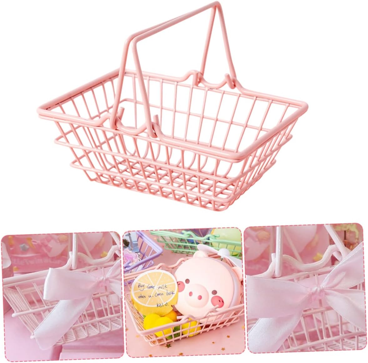 Cestino della spesa in metallo: questo cestino portaoggetti è adatto per riporre una varietà di oggetti, offre praticità per la vita quotidiana, organizzando i cestini Cesto portaoggetti: mantieni il tuo bagno, gli armadi, la dispensa, il tavolo da toeletta, i mobili della cucina o altri luoghi più organizzati, cesto per la biancheria e il cibo Portaoggetti in filo metallico: realizzato in materiale di ferro, robusto e con superficie liscia, non danneggia le mani, supporta l'uso e lo stoccaggio degli elettrodomestici da cucina Cestino portaoggetti per giocattoli: dal design semplice e pratico da usare, offre un'esperienza d'uso piacevole, cestino per la frutta per la cucina Cestino portabottiglie vuoto: è compatto, facile da riporre, trasportare e utilizzare, offre maggiore flessibilità, cestino per la spesa da picnic