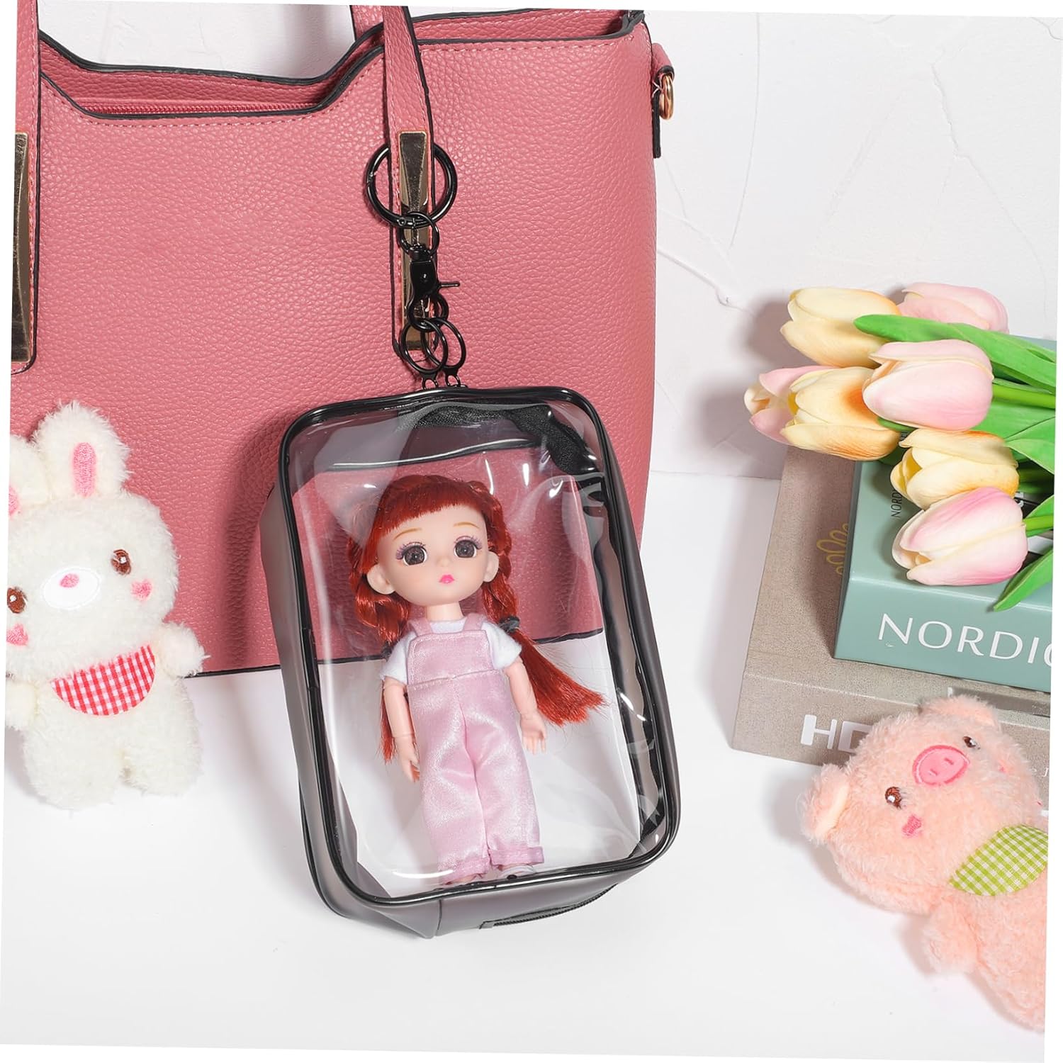 Vetrina per mini figure-- robusta e duratura: la borsa per esposizione delle figure è realizzata in robusto materiale pvc, resistente allo strappo e all'usura, garantendo un uso duraturo. Borsa portaoggetti per bambole sospesa - design con cerniera: la borsa portaoggetti per bambole presenta un design con cerniera robusto e liscio, che garantisce un facile accesso alle bambole all'interno. Borsa per esposizione di figure-- dimensione adatta: la borsa trasparente per figure è progettata per contenere bambole di dimensioni normali, rendendola un'opzione di archiviazione versatile per una varietà di bambole. Contenitore portatile per bambole piccole - uso duraturo: la borsa trasparente per bambole è realizzata in materiali in pvc ed è progettata per resistere all'usura quotidiana garantendo un divertimento duraturo. Portachiavi trasparente per borsa da esposizione per bambole: comodo da usare: la borsa trasparente per esposizione di figure è dotata di un anello portachiavi che consente di fissarla facilmente a zaino o a una borsa.