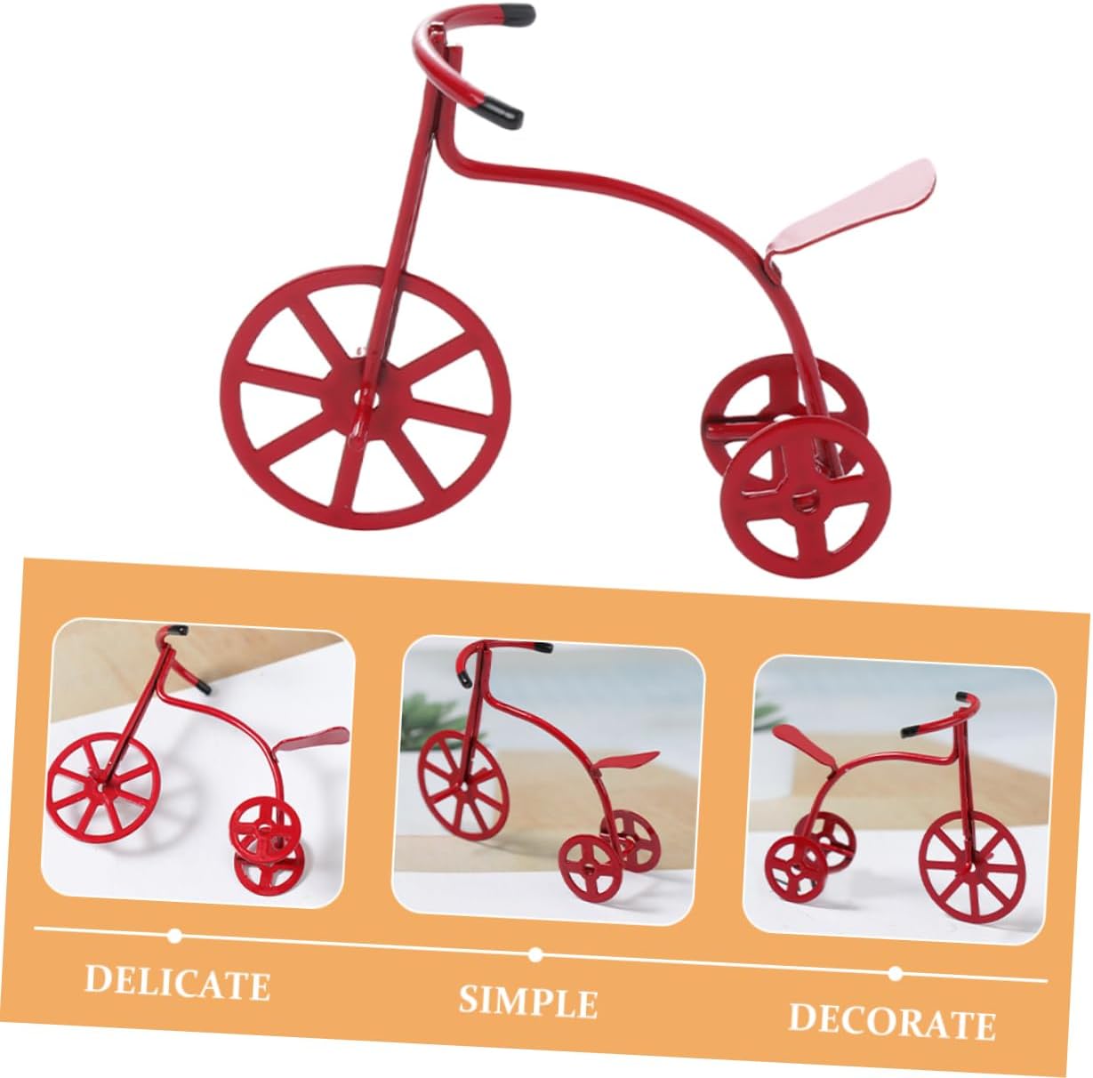 Giocattolo da vivaio in miniatura 1:12: il triciclo in miniatura è un fantastico modello in miniatura per collezionisti e appassionati di tutte le età, poiché è allo stesso tempo bello e decorativo, una bicicletta in miniatura Mini triciclo artificiale: realizzato in materiale in lega, struttura robusta e non facile da deformare, la mini bici è piacevole per un uso duraturo, modello di bici minuscolo Bici rossa della casa delle bambole: pregevole fattura, design delicato e semplice, vivido e realistico, il modello di mini bici è adatto per l'arredamento di mini casa, piccola bici Triciclo minuscolo mini casa: il triciclo in miniatura è anche bello da esporre su tavolo, scrivania da ufficio, comodino, scaffali, armadietti, davanzale, ecc., bicicletta in miniatura mini casa Modello di triciclo in miniatura: il nostro piccolo giocattolo per bici possiede la forte capacità di resistenza all'usura e alla rottura, che può essere utilizzato per lungo tempo, piccola bici da casa