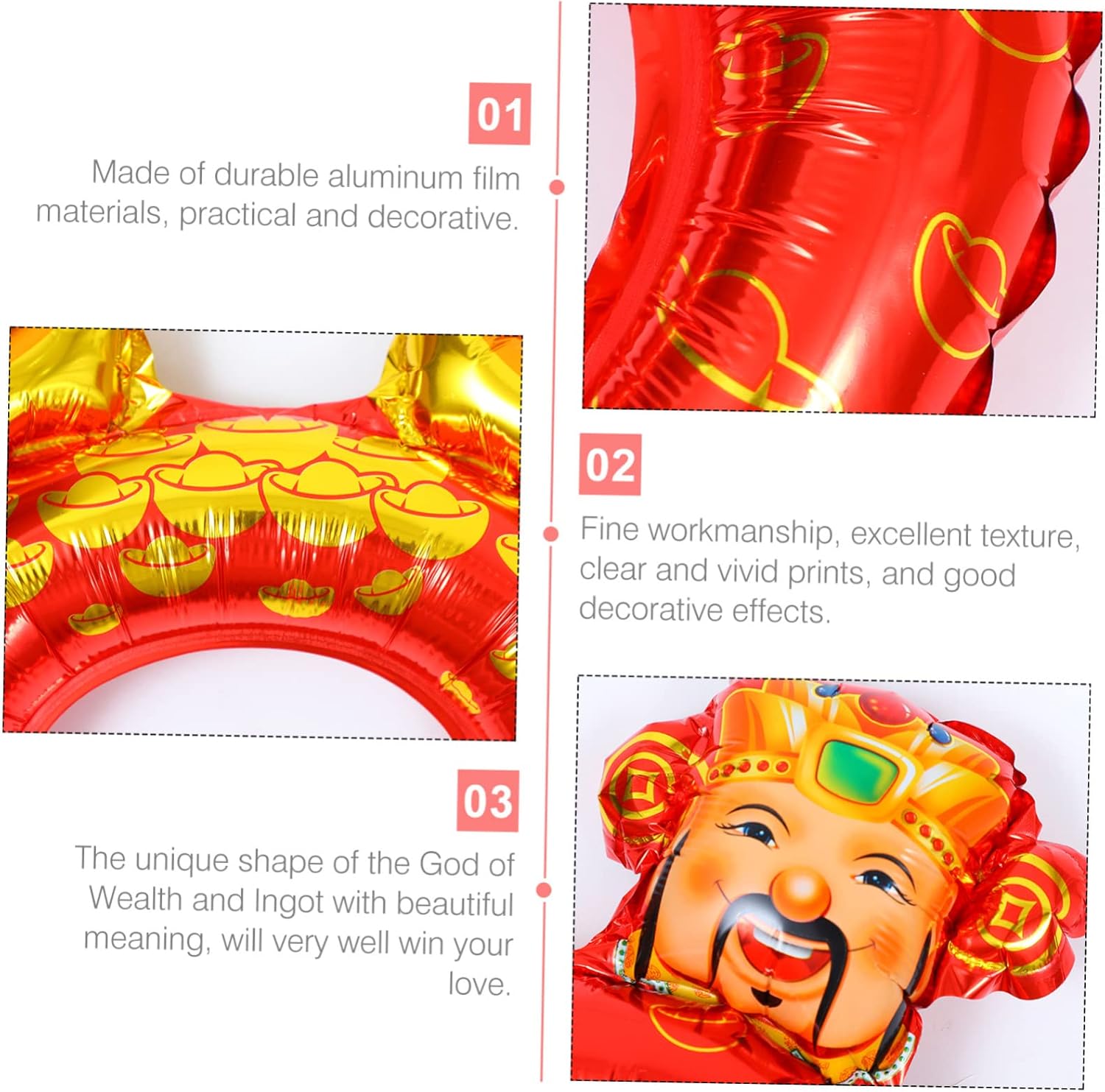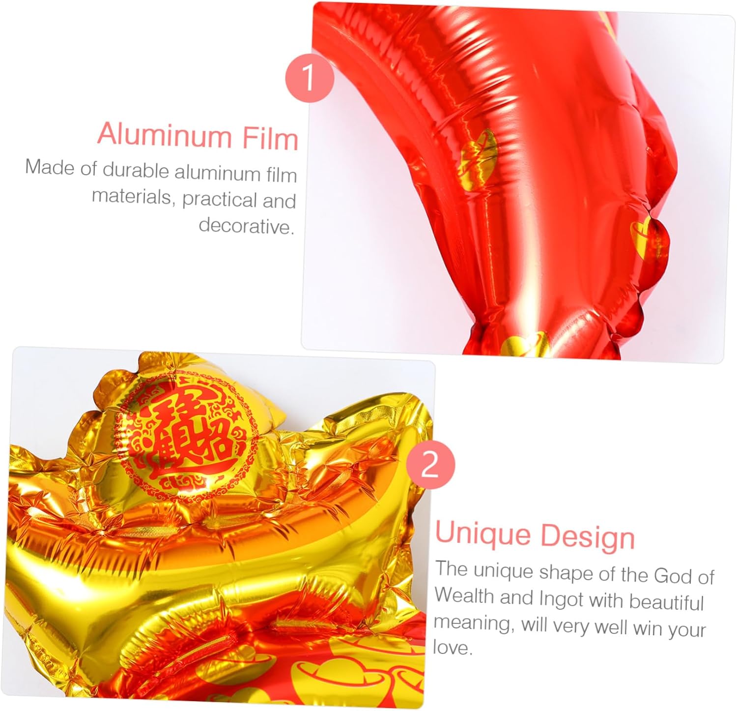 Palloncini di capodanno: piccoli e pratici, creativi e interessanti, possono essere usati come piccoli palloncini per i tuoi amici o decorazioni Palloncini creativi: un palloncino decorativo piccolo e unico può regalarti un'atmosfera di capodanno più forte e bomboniere Palloncini per la festa di capodanno: l'aspetto adotta lo yuanbao cinese e il della ricchezza, che sono simboli della ricchezza cinese, per esprimere le tue buone aspettative per il anno, forniture di palloncini per il anno Decorazioni per festival: è realizzato con squisita fattura, vivido e luminoso e può soddisfare le tue esigenze di decorazione e oggetti di scena Palloncini a tema ricchezza per il anno: pregevole fattura, consistenza eccellente, stampe chiare e vivaci e buoni effetti decorativi, forniture per il anno