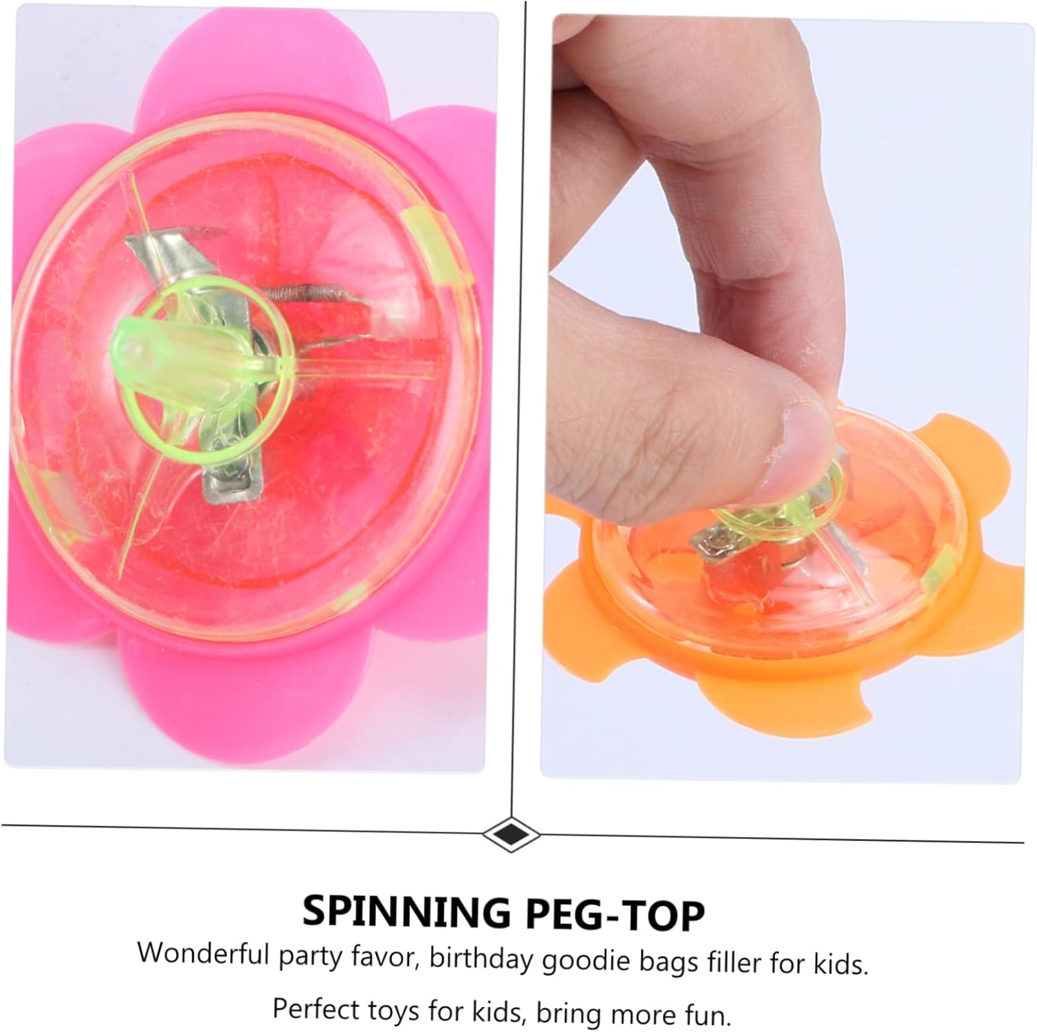 Top per bambini: meraviglioso regalo per la festa, riempitivo per sacchetti regalo di compleanno per bambini. Gioco: giocattoli perfetti per i bambini, porta più divertimento. Top per bambini: realizzato in materiale plastico di alta qualità per un uso duraturo e sicuro. Peg-top: aiuta ad esercitare la cognizione dei bambini e la coordinazione occhio-mano. Peg-top lampeggiante: presenta forma, colore brillante, design lampeggiante. molto attraente per far giocare i bambini.