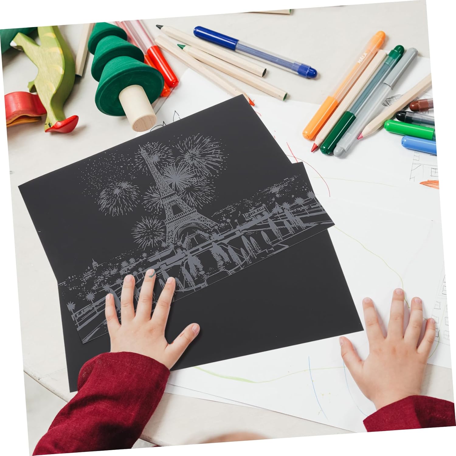 Carta da disegno antigraffio: i bambini utilizzano semplicemente la penna di bambù inclusa per rivelarli con un semplice . Giocattoli per bambini: ottimi per giochi di società, attività all'asilo, artigianato quotidiano e altro ancora. - gratta i disegni per rivelare un brillante su questi ornamenti fai da te. Articoli fai da te per bambini: perfetti per pigiama party, concerti, premi per le aule scolastiche, scrigni del , premi di carnevale. Immagine da grattare di un edificio cittadino: la carta è spessa e non strappa facilmente, perfetta per il bricolage e il tempo libero, tante divertenti esplorazioni creative.