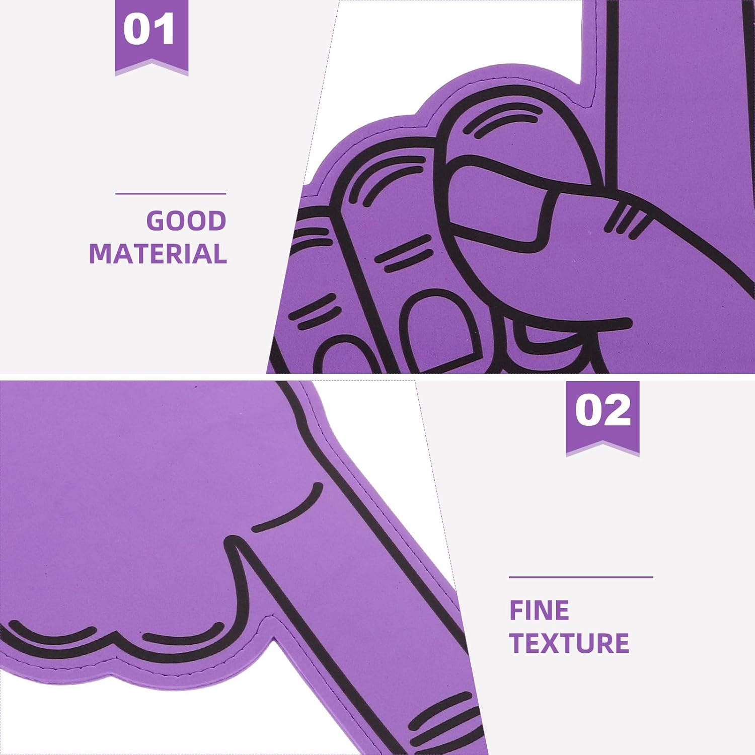 Leggere e morbide: realizzate in materiale EVA, queste dita in schiuma sono leggere e morbide, garantendo un'esperienza confortevole per lunghi periodi di tifo Tifo interattivo: il design delle dita in schiuma aumenta l'interazione con il pubblico, rendendo il tifo più coinvolgente e divertente, perfetto per gli eventi sportivi Luminosi e audaci: i colori vivaci e le grandi forme dei palmi di queste dita di schiuma attirano l'attenzione e migliorano l'atmosfera dell'evento Facili da usare: queste dita in schiuma sono facili da indossare e adatte a vari eventi o spettacoli sportivi, rappresentando lo spirito di squadra e l'unità Design portatile: facili da trasportare e riporre, queste dita in schiuma sono ideali per fare il tifo a scuola, nella comunità e negli eventi aziendali