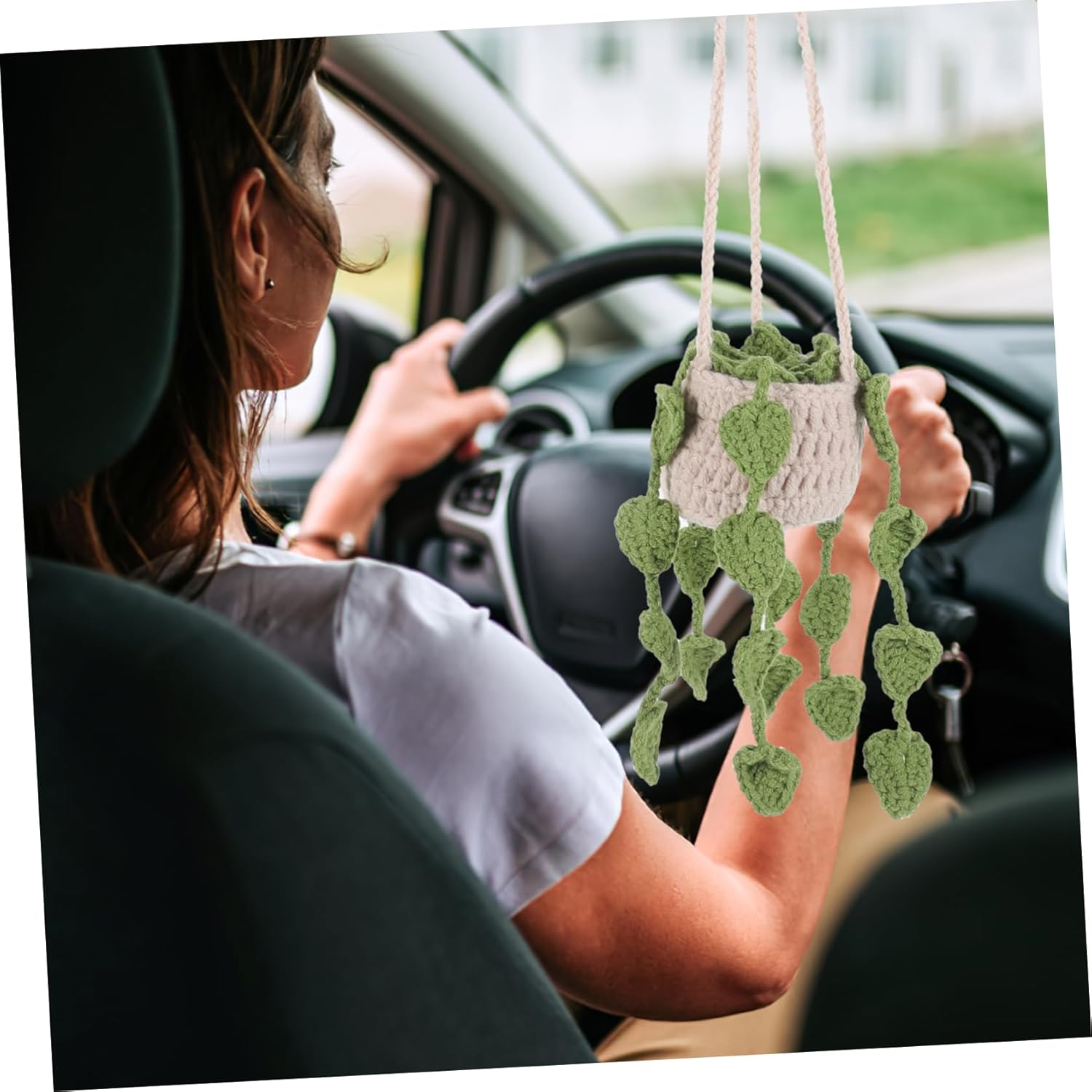 Interni di accessori per auto: ✨✨✨fatto a mano: accuratamente realizzato a mano, riflettendo la tua personalità e creatività, decorazione per auto davvero unica. Ciondolo vegetale per auto: modello di colore pulito e semplice, che conferisce più vivacità al tuo veicolo. Decorazione da appendere alla pianta: accessori interni per auto: appositamente progettati per l' dell'auto, possono essere appesi allo specchietto retrovisore dell'auto o ad altri ganci, il che è comodo e pratico. Ciondolo specchietto retrovisore: immagine: il ciondolo con pianta in vaso in filato aggiunge calore e vitalità all' dell'auto. Decorazione pendente per auto: ✨✨✨piccolo e raffinato: i dettagli sono finemente lavorati, le dimensioni sono moderate e non occupano spazio in macchina.