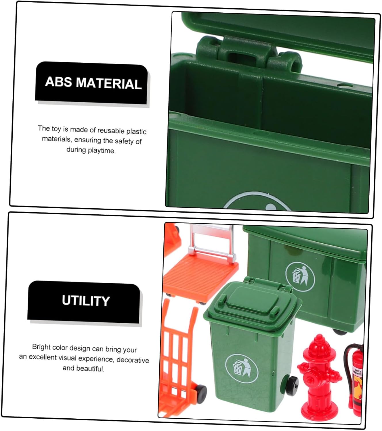 Giocattolo di finzione: migliora le capacità motorie e la creatività dei bambini fornendo loro una varietà di giocattoli con cui giocare ed esplorare, giochi di ruolo per bambini. Modello mini bidone della spazzatura: realizzato con robusti materiali abs, eccellente e utile, non facile da rompere e danneggiare, robusto e delicato, mini giocattolo bidone della spazzatura. Giocattoli per bambini: impara giocando, esercita la concentrazione dei bambini, la capacità di coordinazione occhio-mano, facile e divertente da giocare, bidone della spazzatura giocattolo. Giocattolo dei vigili del : realizzato con eccellente , superficie liscia e tuo figlio può giocare con sicurezza, giocattolo estintore. Giocattolo didattico: promuove i valori del lavoro di squadra e della cooperazione tra i bambini quando sono impegnati in giochi di gruppo, kit di .