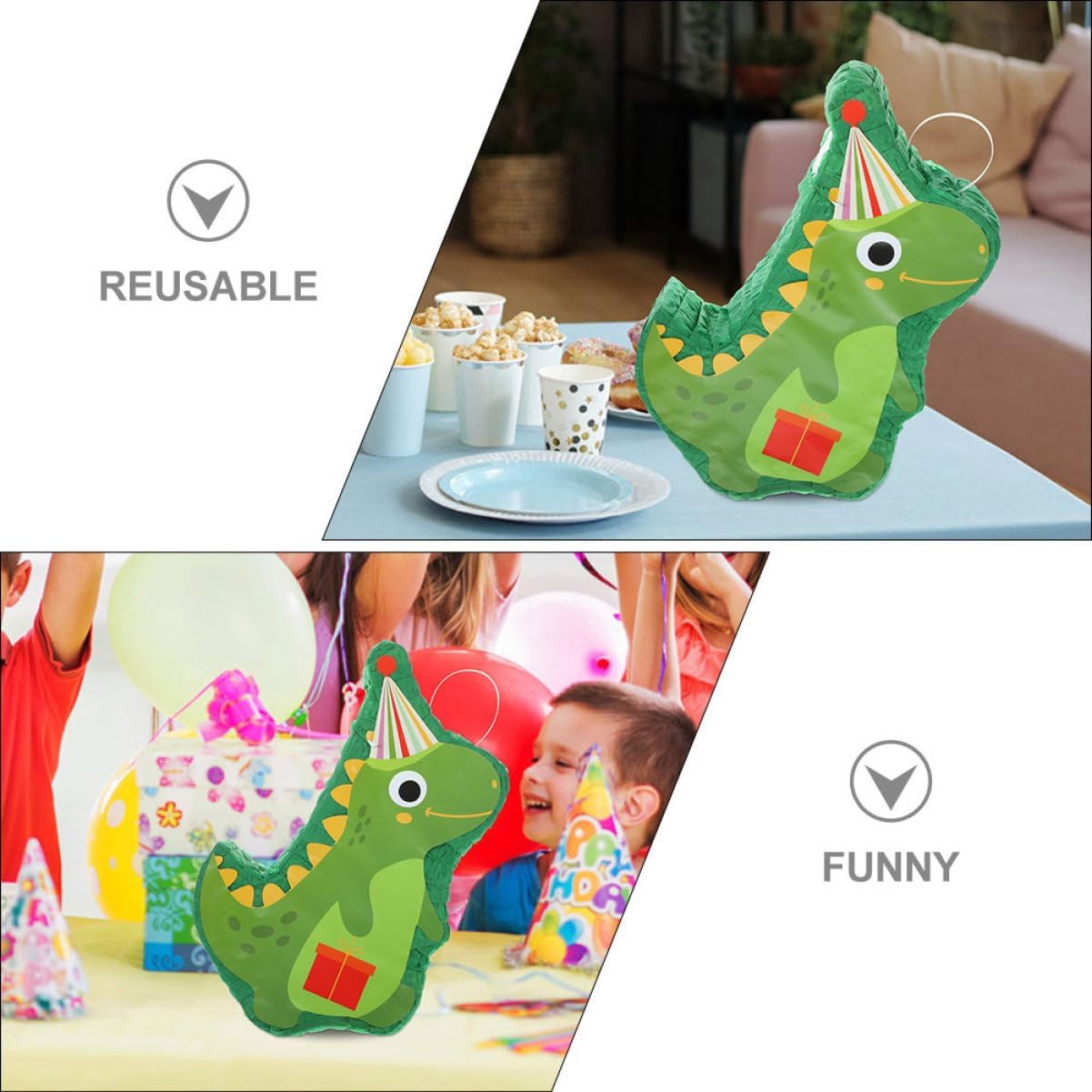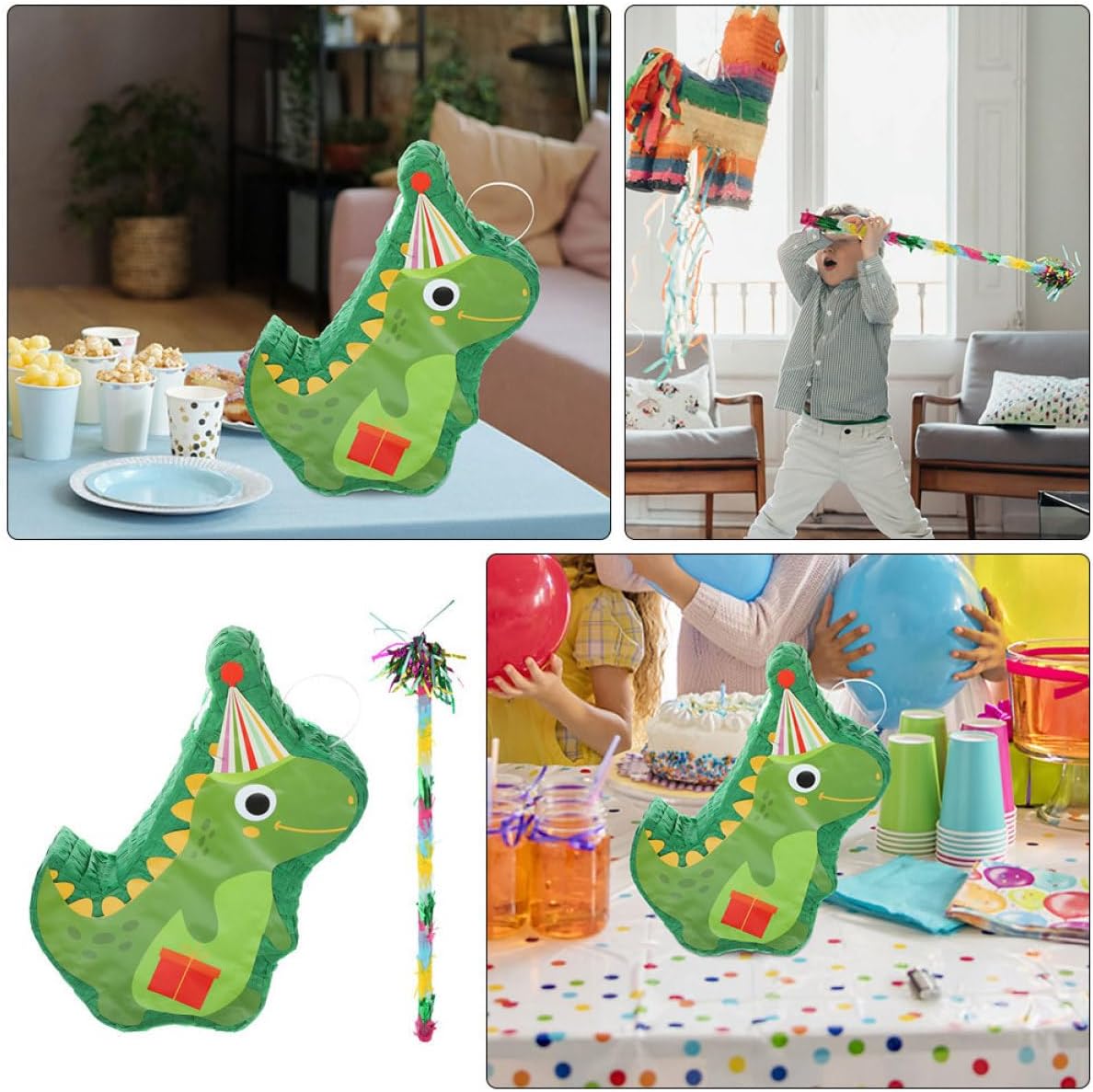 Decorazione per pignatta con dinosauro: realizzata in carta sicura, questa pignatta giocattolo è sicura e riutilizzabile, per offrirti un'esperienza di utilizzo piacevole, decorazione divertente per pignatta Pignatta originale: simpatica decorazione per feste e accessorio fotografico per aggiungere un'atmosfera e rilassante a qualsiasi occasione, decorazione per pignatta di compleanno Decorazione per pignatta da festa: artigianato raffinato e prospettiva creativa, festa e , la gente lo adorerà, pignatta da appendere Decorazione tridimensionale per pignatta: la tradizionale pignatta è realizzata a forma di dinosauro, che è molto in linea con la festa, questa decorazione per pignatta è accattivante con colori vivaci per le decorazioni delle feste e anche per gli oggetti di scena delle foto, pignatta per addio al nubilato Pignatta per feste di compleanno: ti offre la possibilità di scegliere tra decorazioni per interni ed esterni, per creare momenti più gioiosi per famiglie e amici, pignatta per adulti