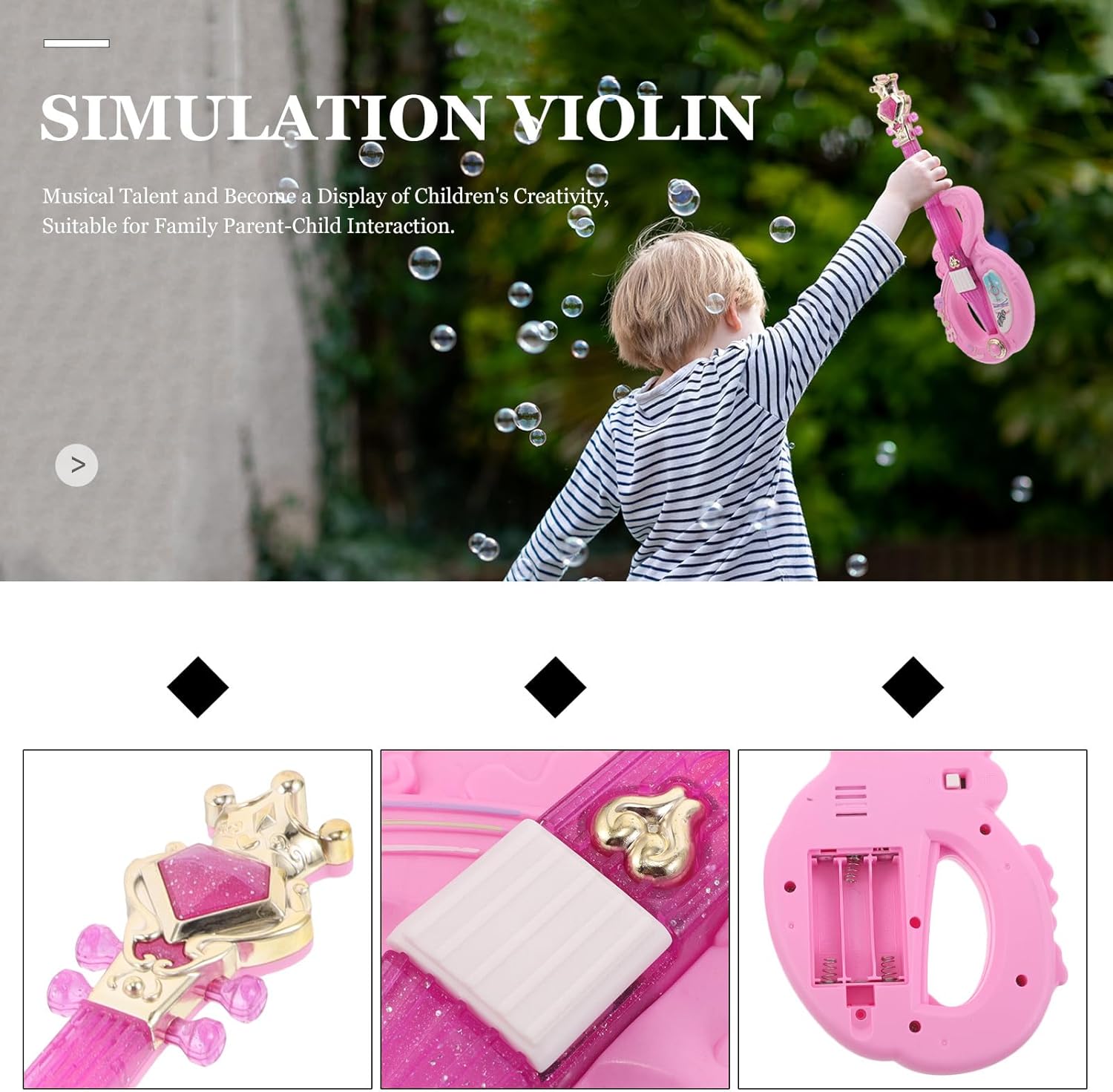 Espressione creativa: questo mini violino giocattolo consente ai bambini di esprimersi musicalmente, stimolando la creatività e rafforzando la fiducia in se stessi attraverso il gioco di finzione Facile da maneggiare: leggero e dal design ergonomico, questo giocattolo è adatto alle mani piccole e aiuta i bambini a sviluppare coordinazione e destrezza durante il gioco Educativo e divertente: combinando l'intrattenimento con l'apprendimento, questo giocattolo introduce i bambini ai concetti musicali, rendendolo uno strumento prezioso per l'educazione precoce Versatile accessorio per giochi di ruolo: che si tratti di feste, eventi o giochi quotidiani, questo giocattolo per violino migliora gli scenari di gioco di ruolo, rendendolo uno dei preferiti bambini Design sicuro: realizzato con bordi lisci e materiali resistenti, questo giocattolo garantisce la sicurezza durante il gioco, dando tranquillità ai genitori