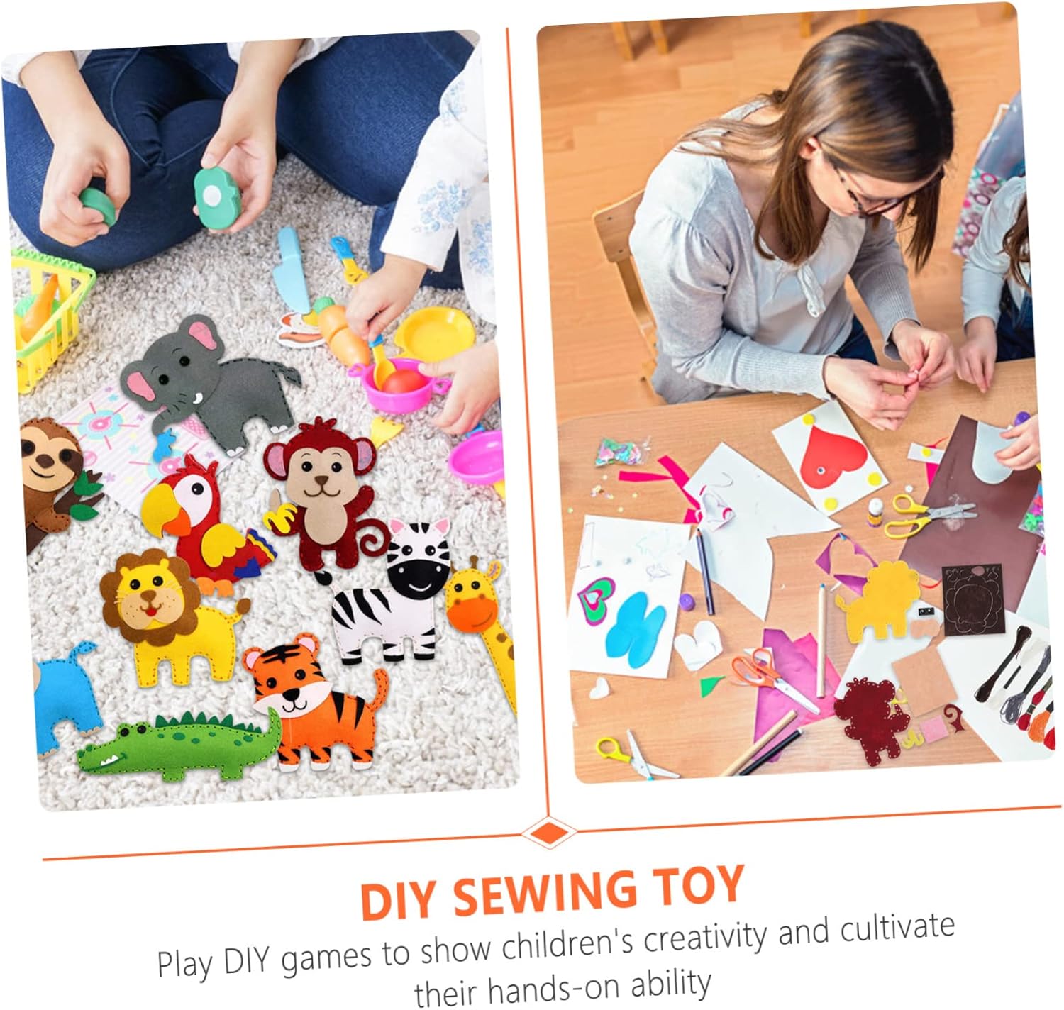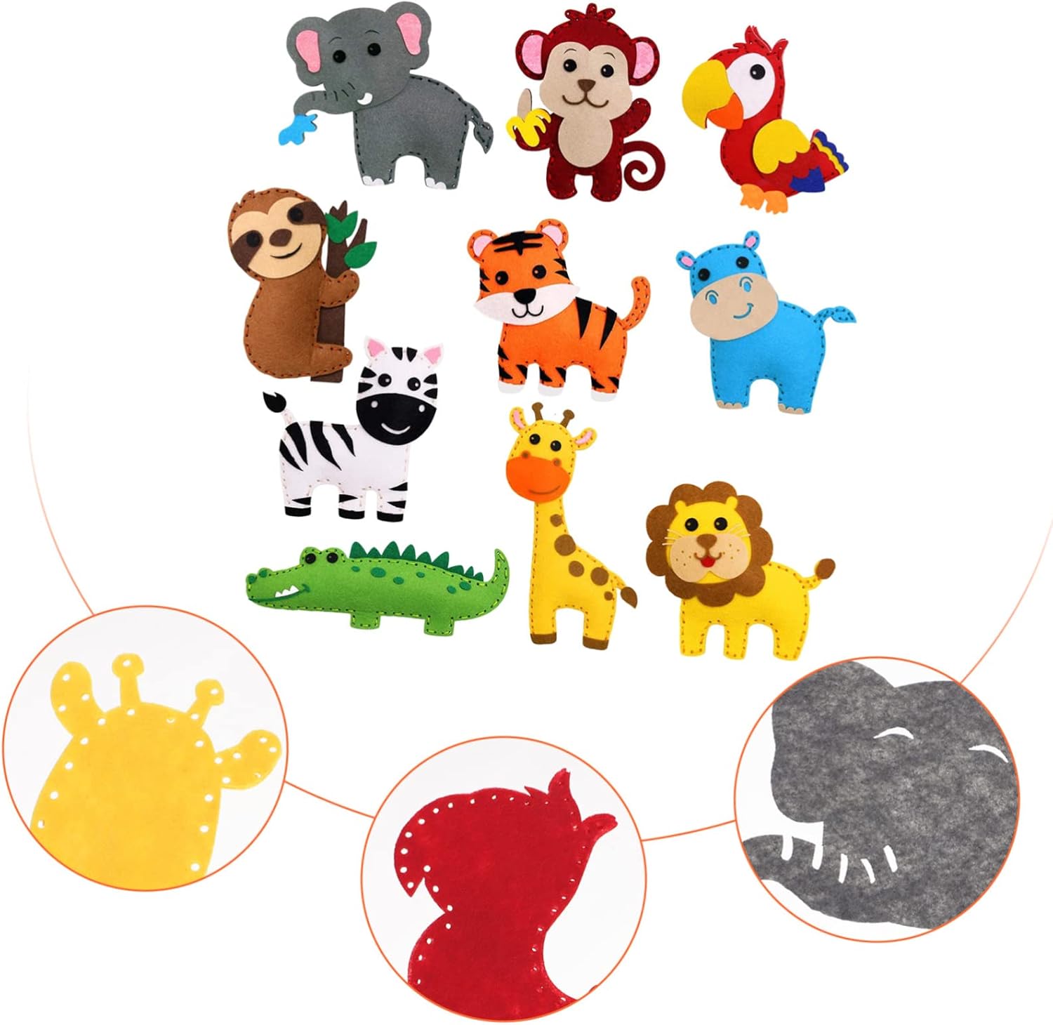 Giocattolo da cucito fai da te: non solo un kit da cucito, questo è un giocattolo educativo, un giocattolo da cucito Lavoretti fai da te: trascorri del tempo di qualità con tuo figlio e aiutalo a sviluppare le sue capacità motorie, la creatività e la sicurezza!,giocattolo da cucire in feltro Kit da cucito per principianti: un bambino, un appuntamento per giocare, un pigiama party, piccoli gruppi o feste artigianali, creazioni con animali dei cartoni animati Giocattoli con animali in feltro: puoi anche usarli come puzzle per i tuoi giocattoli, attireranno i tuoi giocattoli creativi Ornamento con animali dei cartoni animati: può anche essere una festa di compleanno per bambini, natale o qualsiasi occasione, ciondolo in feltro