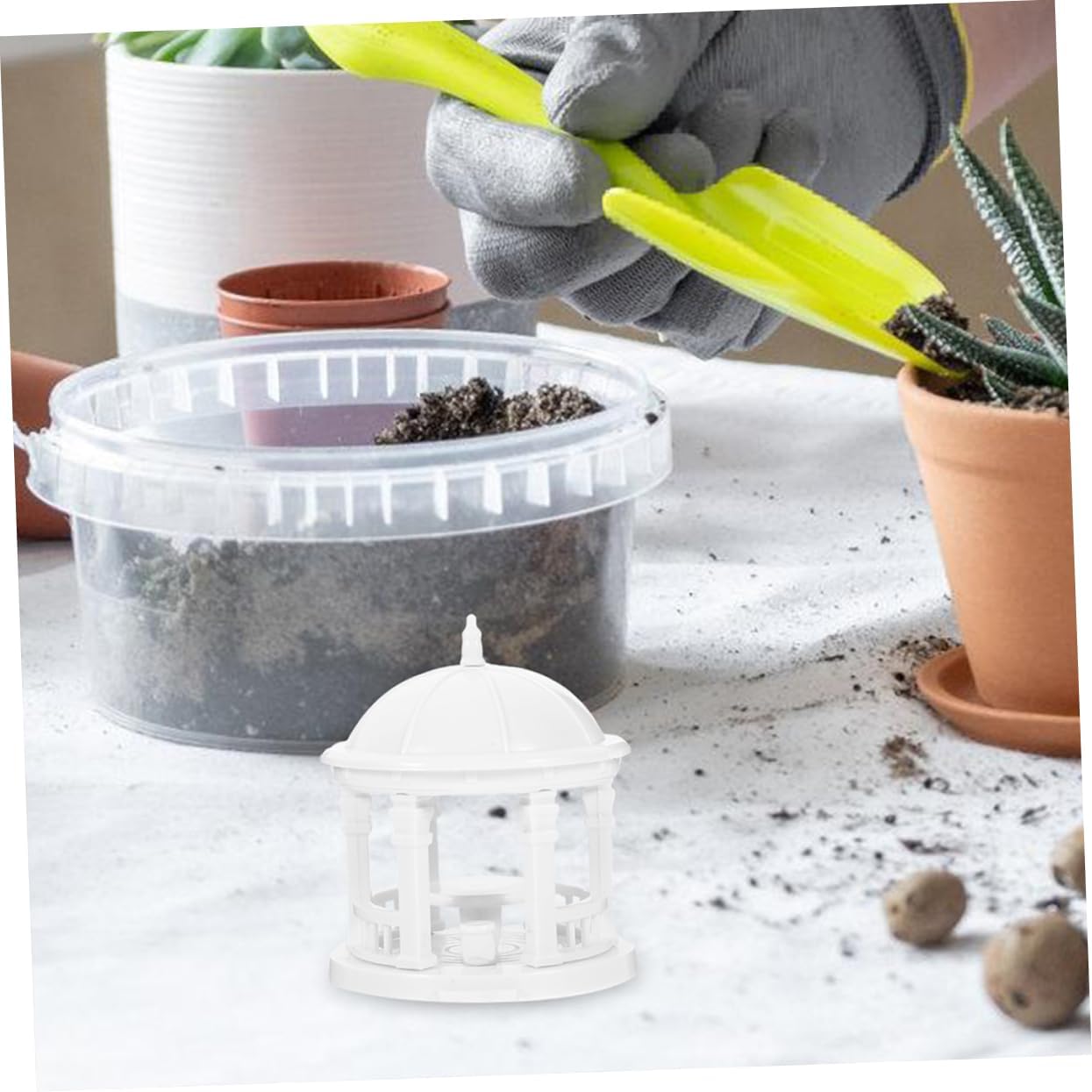 Ornamenti da giardinaggio con statua del padiglione: questo ornamento del padiglione è adatto per l'uso in giardino, cortile e balcone, presenta un design di dimensioni compatte, senza occupare troppo spazio, arredamento da giardino Mini padiglione da giardino: la statua del padiglione di simulazione è leggera e può essere facilmente posizionata e spostata, decorazioni da giardino Decorazione della statua del mini padiglione: che tu stia lavorando su un modello piccolo o su una scena più , questo modello ti aiuterà a l'effetto desiderato, adornare i bonsai Decorazione del paesaggio della statua del padiglione: pregevole fattura e bell'aspetto, garantiscono popolarità e utilità dell'arredamento del padiglione, ornamento da tavolo Ornamento zen: migliora l'autenticità della scena del tuo modello con la statua del padiglione dettagliata e realistica, decorazioni per la casa