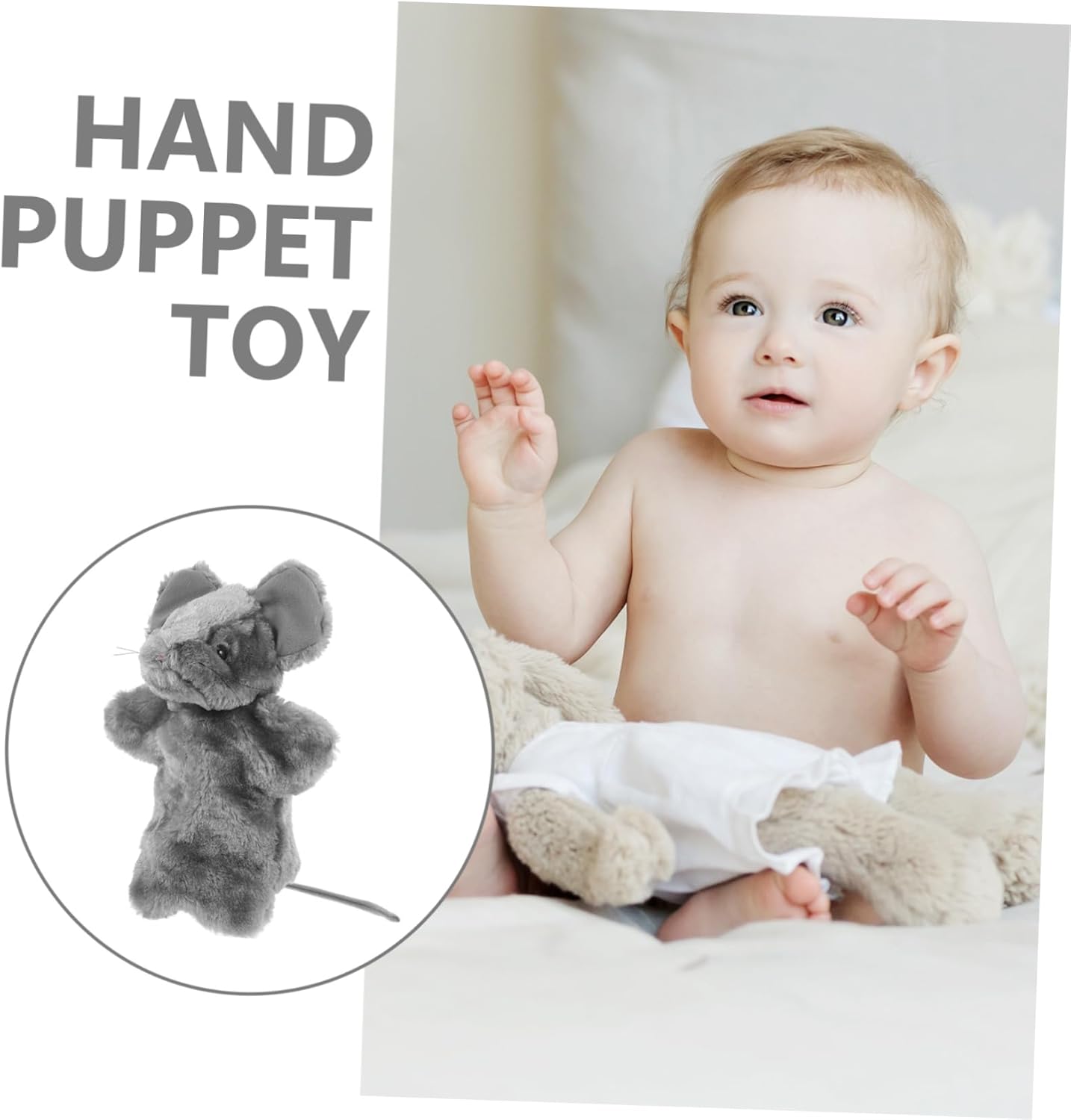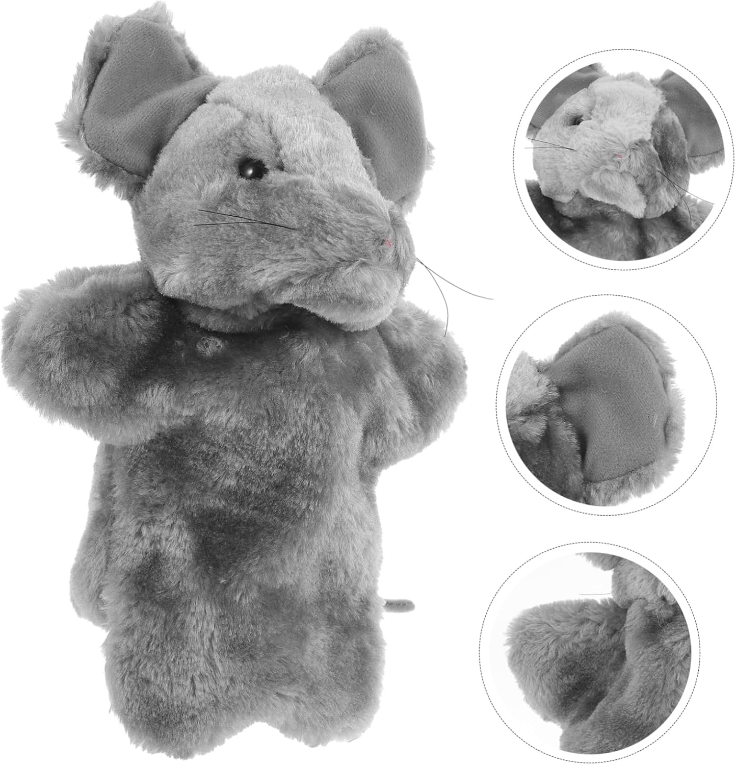 Burattino da mano in peluche con animali: il burattino da mano è realizzato in cotone pp sicuro e materiali morbidi, elastico, comodo da tenere, di buona consistenza. Burattini a mano: possono aiutare a sviluppare la destrezza, la creatività, il vocabolario e l'immaginazione del bambino, inoltre migliorano la comunicazione emotiva tra il bambino e i genitori. Giocattolo della marionetta a mano: questo giocattolo della marionetta a mano del topo dei cartoni animati aiuta a stimolare la creatività e la comprensione del tuo bambino. Giocattolo per le degli animali: forma adorabile e carina, porta ai tuoi bambini un divertimento senza fine e stimola l'immaginazione, è una buona scelta per il tuo burattino a mano. Burattino a mano di peluche: il burattino a mano è eccellente per migliorare le capacità motorie, la coordinazione occhio-mano, le capacità di comunicazione e costruire la fiducia in se stessi.