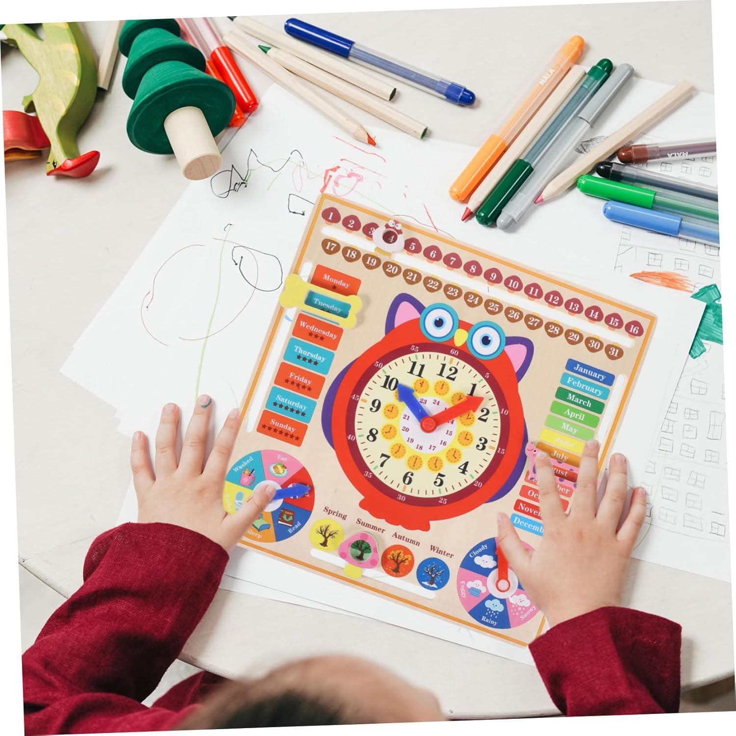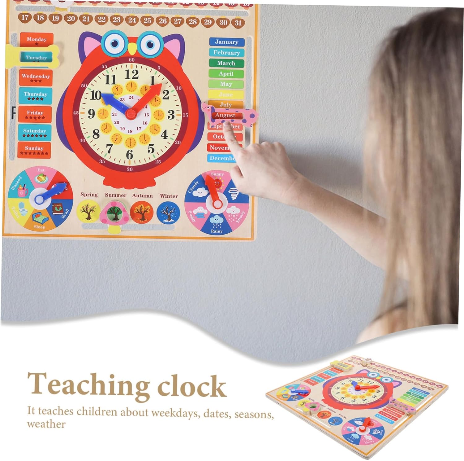 Orologio per l'insegnamento del tempo - Il materiale in legno è più sicuro e adatto a giocattoli didattici cognitivi, educativi e pratici. Orologio per bambini - I quadranti aiutano i bambini a leggere l'ora e a comprendere il significato del tempo in giovane età. imparare gli orologi in legno Giocattoli orologio - meravigliosa idea regalo per e amici per promuovere lo sviluppo intellettuale e la conoscenza del calendario Sveglia per bambini - non solo insegna ai bambini ma promuove anche l'importanza del tempo in giovane età, orologio per bambini Orologio giocattolo per bambini - ottimo per interagire con i genitori, può insegnare ai bambini a riconoscere l'ora, giocattoli orologio per