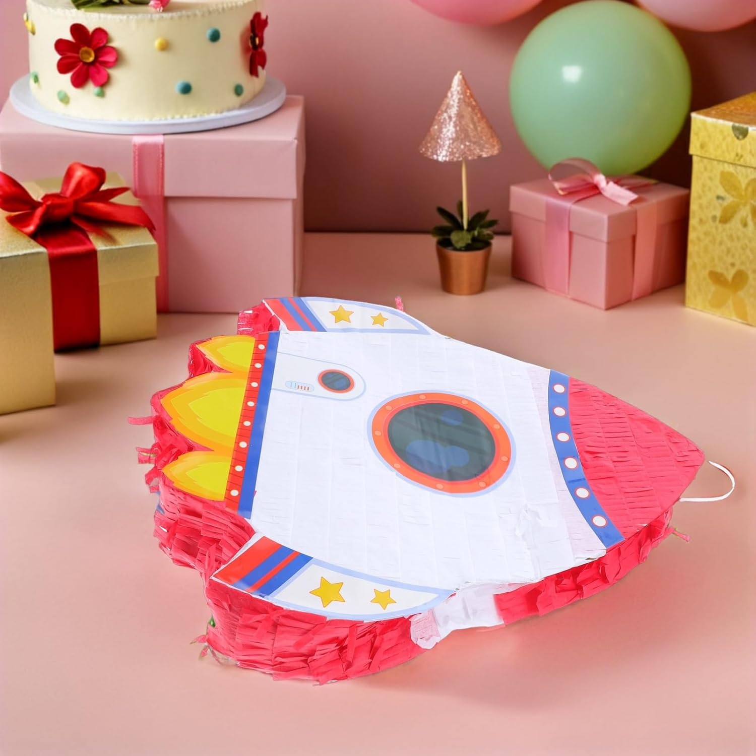 Facile da appendere: dispone di un robusto anello per appenderlo in varie posizioni, decorazioni per feste spaziali, decorazioni per feste di compleanno Materiale: realizzato in cartone e decorato con carta crespa, garantendo durata e un aspetto vivace per un uso ripetuto, decorazioni giocattolo piñata, decorazioni di compleanno spaziali Elementi essenziali per la festa: include una benda e un bastone che portano il divertimento e l'eccitazione dei tradizionali giochi della piñata per potenziare, bastone della piñata, ornamento del razzo Accessori interattivi: include una benda e un bastone, che lo rendono un'attività divertente ed emozionante per feste, benda sugli occhi, decorazioni di compleanno del gioco Riempibile design: viene fornito con un comodo foro di riempimento e adesivi, così puoi aggiungere caramelle, cioccolato, coriandoli o mini per una meravigliosa sorpresa. Decorazioni per feste a tema spaziale, giochi per feste di compleanno