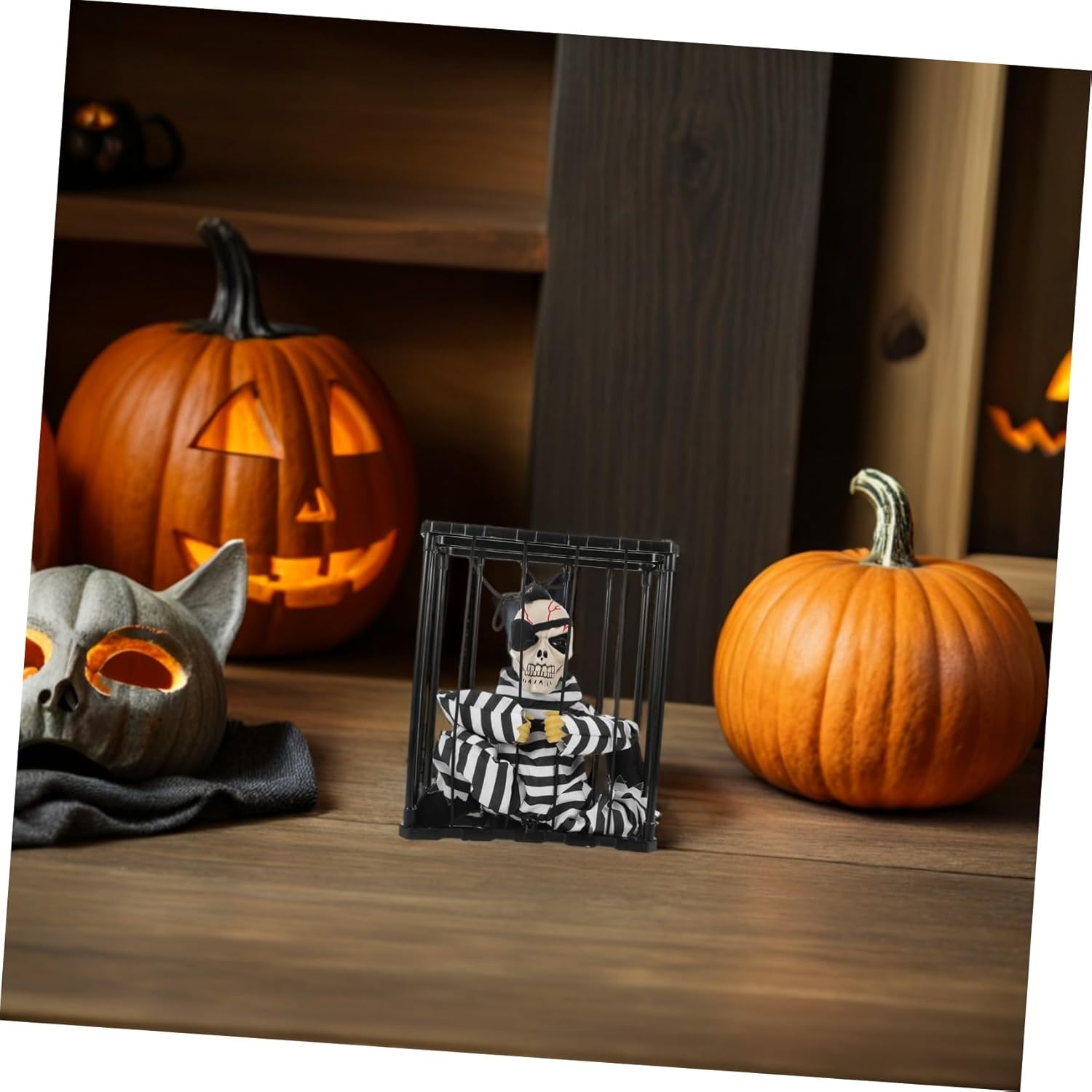Design unico: illumina la tua festa di Halloween con questo scheletro pirata progettato in gabbia e aggiungi un'atmosfera vivace e divertente alla tua celebrazione. Figura di teschio luminoso, accessori per costumi da scheletro E riutilizzabile: questa decorazione è progettata per un uso a lungo termine, assicurandoti di goderti il divertimento festivo in molti Halloween a venire. Puntello scheletro di Halloween, display scheletro Adatto per uso interno ed esterno: ideale per uso interno ed esterno, che lo rende una decorazione versatile per riunioni di famiglia o spazi commerciali, oggetti di scena e burattini scheletrici di Halloween. Multiuso: adatto per uso interno ed esterno, rendendolo una decorazione versatile per riunioni di famiglia o luoghi commerciali, statuetta di scheletro di Halloween, decorazione di scheletro Scheletro di Halloween: questa decorazione è progettata per un uso ripetuto, assicurandoti di goderti il divertimento festivo in molti Halloween a venire. Ornamento scheletro di Halloween, oggetto di scena per il teatro scheletro