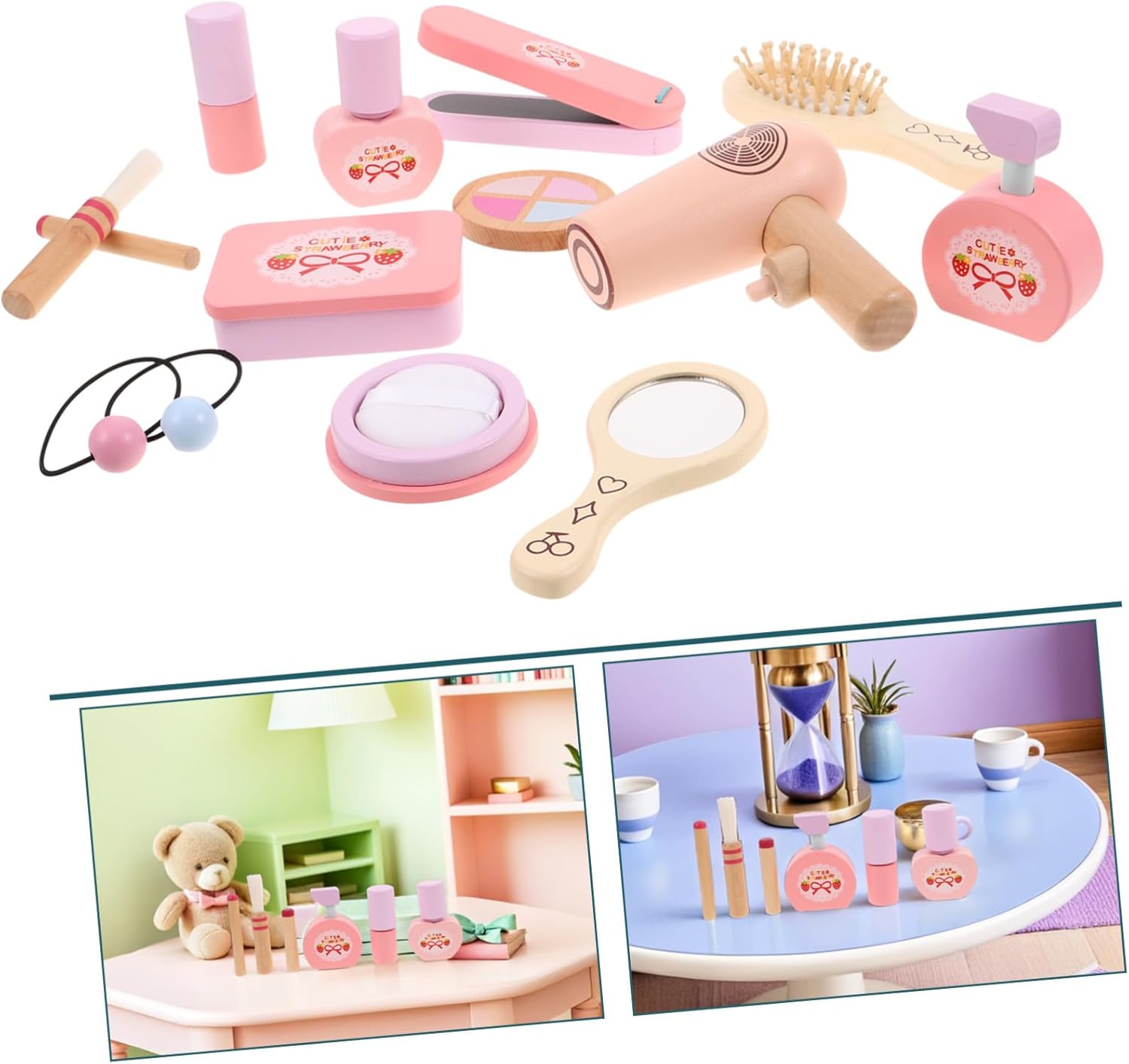 Promuove la creatività e la coordinazione: lo strumento per lo styling dei giochi di ruolo aiuta i bambini a sviluppare le loro capacità motorie e a liberare la loro creatività attraverso attività fantasiose. Toeletta per giochi di ruolo, borsa per il trucco per ragazze dal design in legno: il set di giocattoli per il trucco in legno è realizzato con materiali sostenibili e offre opportunità di gioco, un set da gioco per un salone di bellezza in legno e uno strumento per lo styling per il gioco di ruolo. Autentica esperienza di gioco di ruolo: il set di trucchi per giocattoli per bambini offre un design realistico che ti consente di godere della bellezza realistica durante il gioco di ruolo. Costruzione in legno: il set di bellezza giocattolo in legno realizzato in legno robusto garantisce un facile utilizzo e offre ai bambini un'esperienza di gioco affidabile. giocattoli per il trucco per ragazze, set da toeletta per ragazze Adatto per giochi di gruppo: il set da gioco per il trucco è ideale per le interazioni sociali, consentendo ai bambini di condividere il divertimento con amici e familiari in finte attività da salone, set per il trucco, trucco per principesse