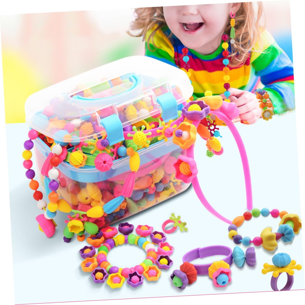 Questi reperti di gioielleria sono conservati separatamente in un contenitore trasparente, il che è utile per scoprire rapidamente i componenti Rendere i bambini silenziosi, aiutare i bambini a migliorare la coordinazione occhio-mano, la creatività e così via Realizzato in materiale plastico per un uso duraturo, e decorativo Viene fornito con una scatola, la scatola è composta da tipi di perline fai da te colorate e adorabili con diverse dimensioni e forme Che è adatto alle ragazze per realizzare braccialetti, collane e altri mestieri
