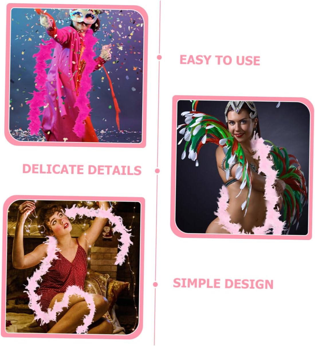 Il pacchetto include 4 x boa piuma Caratteristiche - : Boa di colori assortiti per le donne -Dimensioni: 200,00X6,00X3,00cm/78,60X2,36X1,18in Boa da cucito -Materiale: boa di per cucire - Adatti per aggiungere un tocco di glamour ai tuoi vestiti, questi bordi di sono ideali per progetti fai da te e decorazioni Boa per costumi. - Realizzate con materiali morbidi e confortevoli, queste strisce sono delicate al tatto e piacevoli sulla pelle. Boa Accessories. - Bellissimi e resistenti, questi boa da sono realizzati con cura per resistere all'uso ripetuto. Boa da donna. - Questi boa piumati sono disponibili in due colori diversi, per permetterti di scegliere la decorazione Boa For Crafts ideale. - Che tu voglia travestirti per una festa o creare un costume di scena, queste strisce di sono un'ottima scelta per il tuo Boa fai da te. Informazioni sulla merce Boa per donne Le nostre strisce di sono l'accessorio perfetto per costumi di scena e da festa! Disponibili in due colori diversi, queste strisce sono progettate per soddisfare tutte le tue esigenze decorative. Accessori per boa per costumi da festa La lavorazione artigianale fine fa sì che non stacchino facilmente. Boa fai da te Realizzati con comode , questi boa offrono un tocco delicato e delicato