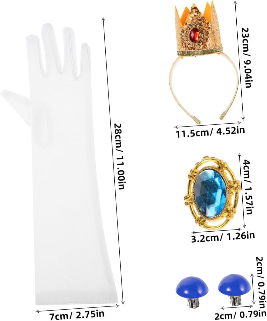 Il pacchetto include 1 x fascia per a 1 x paio di guanti 1 x paio di orecchini 1 x spilla Caratteristiche - Materiali affidabili: questo set cosplay da principessa è comodo, durevole e progettato per resistere all'usura dei regali per feste con - memorabile: un adatto per gli amici, che riflette la tua cura e l'unicità con questo affascinante set di decorazioni per feste da principessa. -Dimensioni (orecchino): 2,00X2,00X1,00 cm/0,79X0,79X0,39 pollici decorazioni a per feste -Dimensioni (guanto): 28,00X7,00X0,20 cm/11,00X2,75X0,08 pollici principessa -Dimensioni (spilla): 4,00X3,20X1,00 cm/1,57X1,26X0,39 pollici corone di compleanno per l'aula - : accessori multi principessa -Dimensioni ( ): 23,00X11,50X6,00 cm/9,04X4,52X2,36 pollici gioielli da vestire -Materiale: plastica, stoffa, accessori da principessa in acrilico per le donne -Gioco di ruolo: ideale per una varietà di feste e attività di cosplay, che ti consente di diventare la principessa che hai sempre desiderato essere guanti da principessa Informazioni sulla merce decorazioni da principessa per feste di compleanno Ideale per feste di cosplay, feste di compleanno ed eventi a tema, questo set è l'accessorio adatto per qualsiasi costume da principessa.accessori da principessa per adulti La fascia e gli orecchini sono facili da indossare e rimuovere, rendendoli un'aggiunta comoda al tuo vestito-.decorazioni per feste da principessa Abbinali al tuo vestito da principessa preferito per un look sbalorditivo.festa da principessa Aggiungi un tocco di regalità al tuo costume per le feste con questo set di fascia e orecchini con da principessa