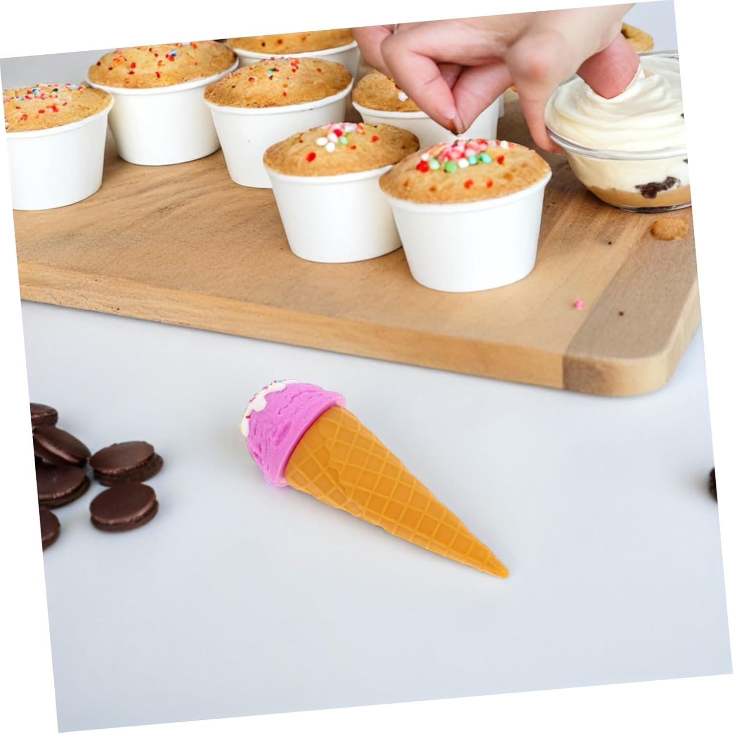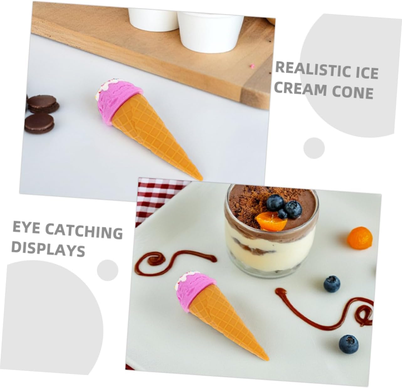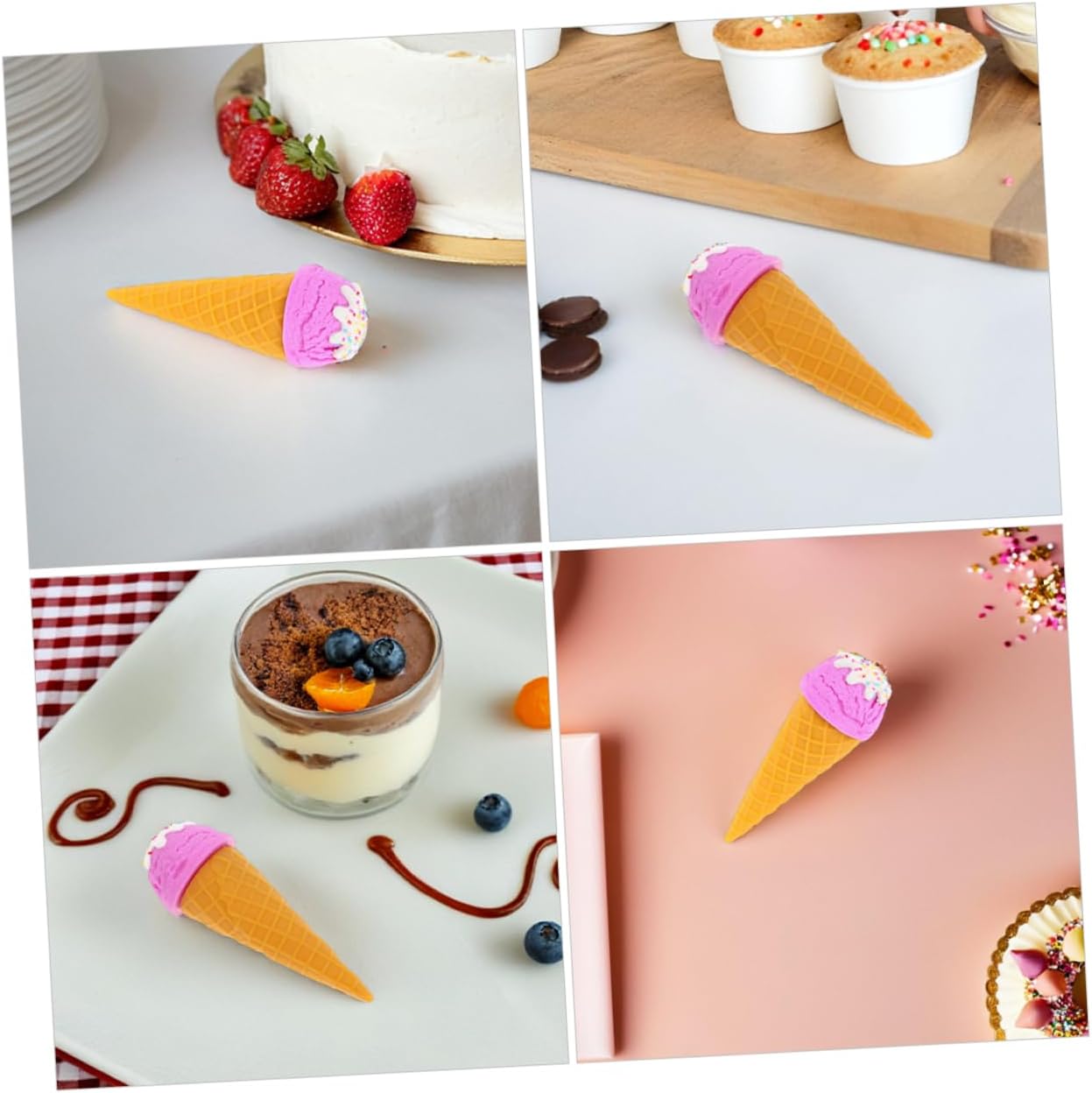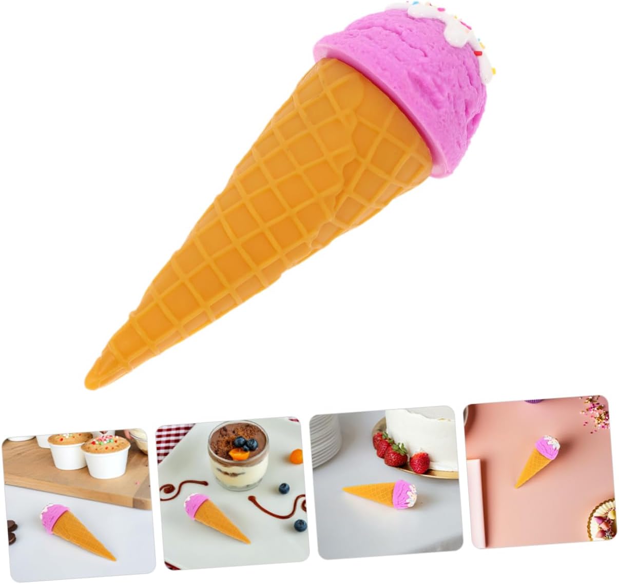 MULTIUSO: Ideale per vari ambienti come l'arredamento di ristoranti, sfondi per studi fotografici o giocattoli educativi per bambini, aggiunge un tocco di realismo a chiunque, modello alimentare realistico, gelato artificiale Gelato finto: questo modello di cono gelato finto vanta un aspetto autentico che attira l'attenzione e aumenta il fascino di qualsiasi esposizione. Gelato finto, supporto fotografico per gelato Cibo finto: realizzato con materiali durevoli, questo supporto per cibo simulato è resistente alla deformazione e allo sbiadimento, garantendo che rimanga in ottime condizioni per periodi di tempo più lunghi. Coni gelato per dessert simulati. Semplice: la superficie liscia del puntello simulato del cono gelato lo rende più semplice. Basta pulire delicatamente per ripristinare l'aspetto originale. Senza sforzo: la superficie liscia della decorazione del cono gelato consente un facile utilizzo di cibo artificiale per la decorazione della cucina, cibo di scena.