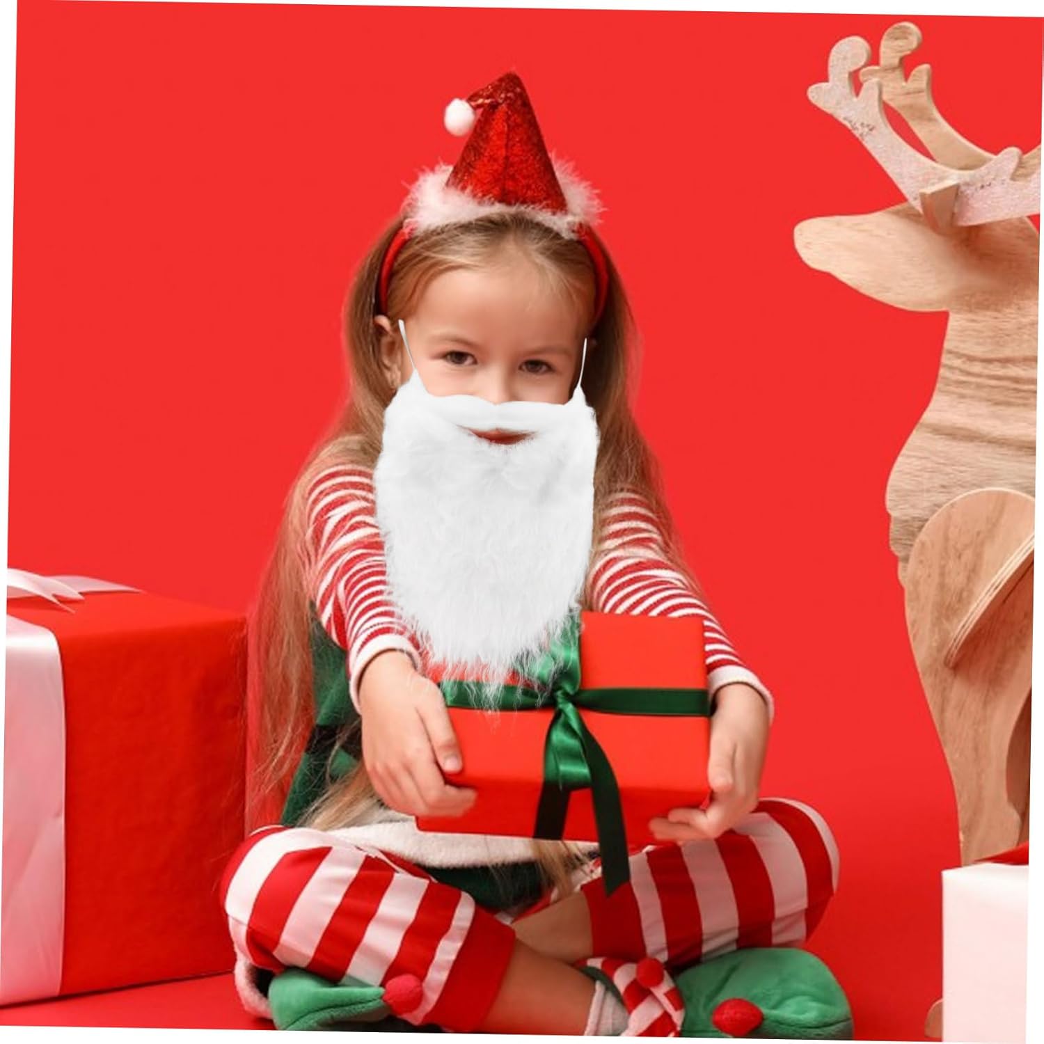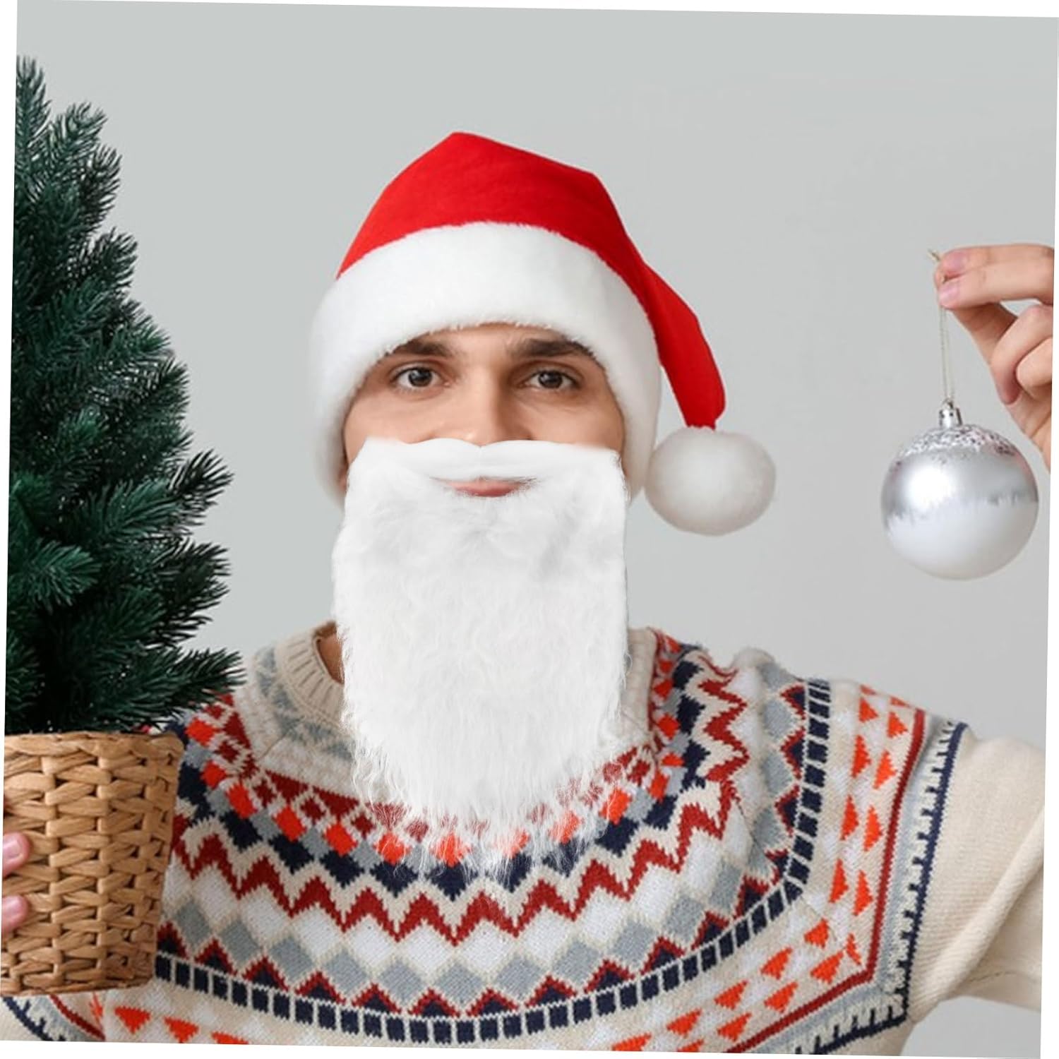 Barba di Babbo Natale bianca finta: perfetta per il tuo costume da Babbo Natale, Barba di Babbo Natale da uomo Bianca: ottimi accessori per cosplay di Natale, Barba di Natale per Babbo Natale Finta realistica: è multistrato e i baffi sono fantastici arricciati ed elastici per una vestibilità aderente, Babbo Natale e capelli Oggetti di scena bianchi: perfetti per completare qualsiasi look di Babbo Natale in questo periodo natalizio, sbagliato per le vacanze
