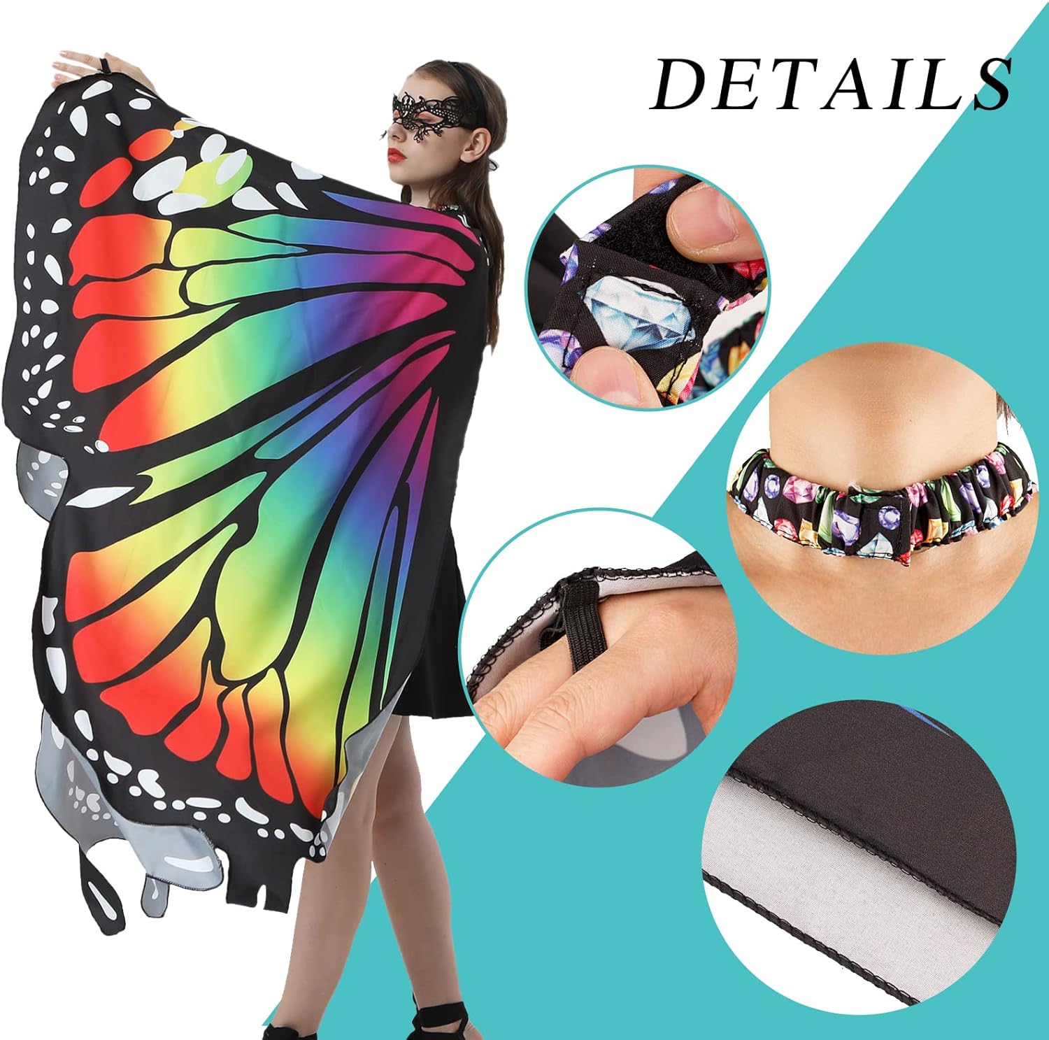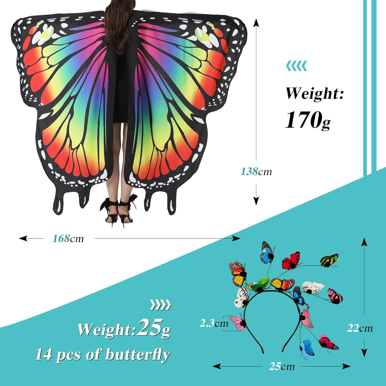 🦋Confezione: 1 x ali farfalla per costume farfalla donna adulti + 1 x cerchietto farfalla per decorazione halloween carnevale. 🦋Dimensione: Gli ali di mantella farfalla e il cerchietto farfalla sono adatti perfettamente per la maggior parte delle persone. Si prega di vedere la foto per capire bene le dimensioni dettagliate. 🦋Materiale: Questa mantella farfalla è realizzata in tessuto di poliestere di alta qualità, leggera, traspirante, molto comoda da indossare. Il cerchietto farfalla è realizzato in plastica, non tossico, resistente e riutilizzabile. 🦋Design Farfalla: Questi ali mantella e il cerchietto sono dotati a forma di farfalla, col colore vivace brillante, molto carino e speciale. Possono aiutarti a diventare più affascinante come un elfo di farfalla. 🦋Decorazione Perfetta: Questo set di costume farfalla è molto ideale come decorazione per giocchi di ruolo, festa di ballo, festa a tema di costume, Halloween, carnevale e altre feste. È anche un regalo perfetto per i tuoi amici, familiari, ecc.