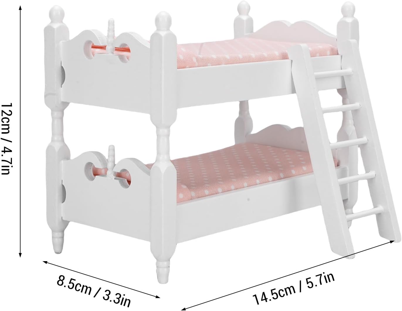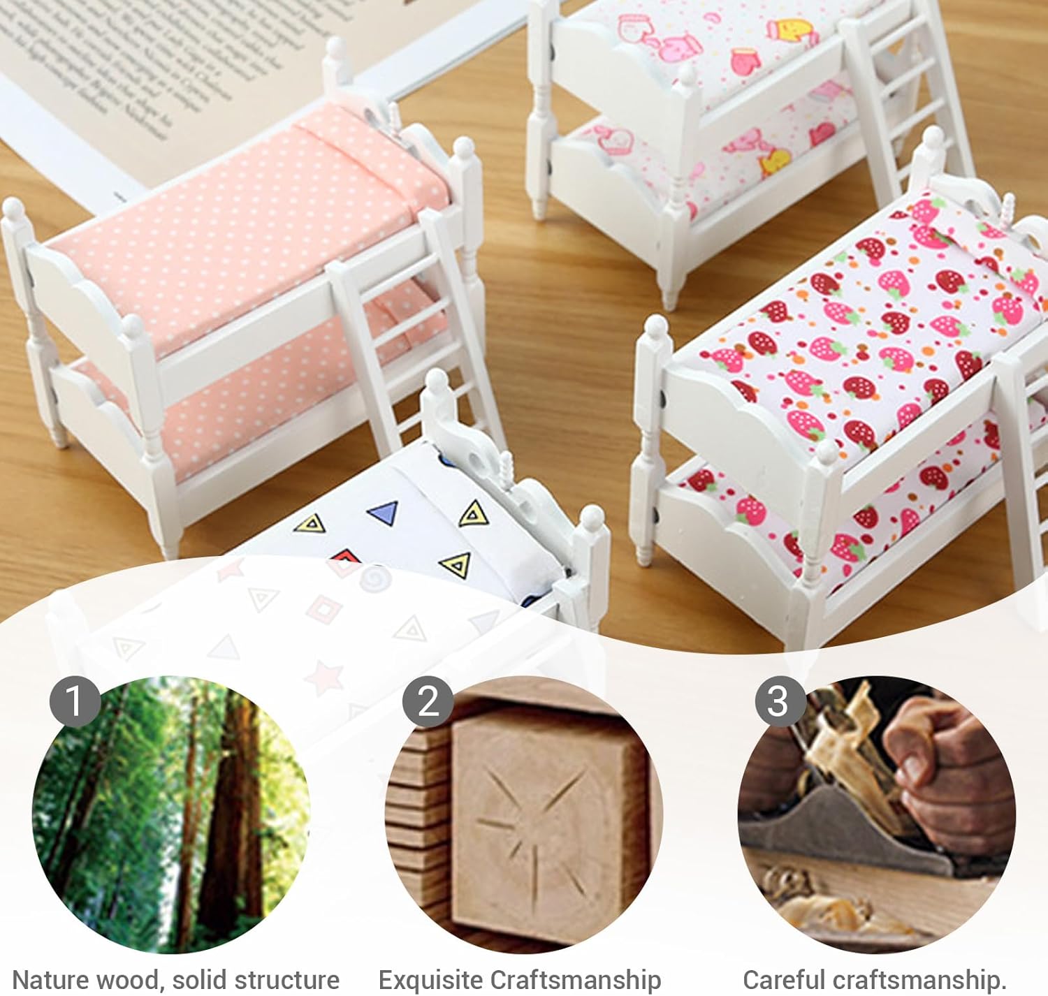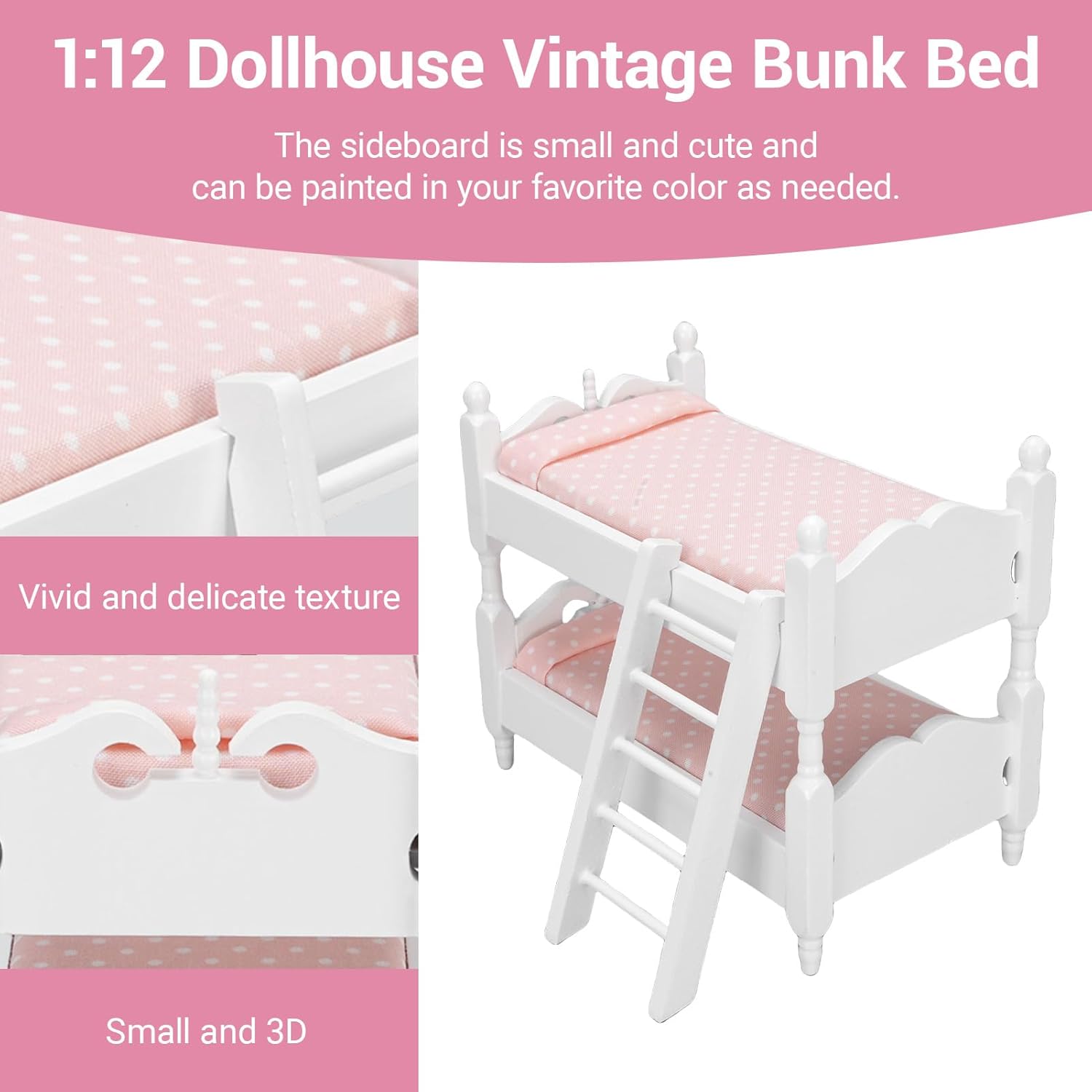 Materiale in legno: questo letto per la casa delle bambole è realizzato in legno, con squisita lavorazione e una struttura robusta, che fornisce una durata duratura, adatto per la redazione di gioco prolungata Aspetto carino: questo letto a castello per bambini in miniatura presenta un design realistico e adorabile, ha un aspetto squisito di cartoni animati che ne migliora Decorazione dello spazio: con il design del letto a castello e l'adorabile abbellimento del foglio da letto, aiuta ad aggiungere strati alla sala delle bambole, migliorando il valore ornamentale del display 1:12 Modello delle bambole: questo modello a castello è progettato per adattarsi a una casa delle bambole in scala 1:12, mostrando dettagli intricati e design squisito, aggiungendo calore all'ambientazione delle bambole I bambini giocano giocattolo: come un pezzo di giocattolo innovativo finto per mobili, questo letto a castello in miniatura arricchisce i bambini giocano scenari, promuovendo la loro immaginazione e le loro mani sulle capacità