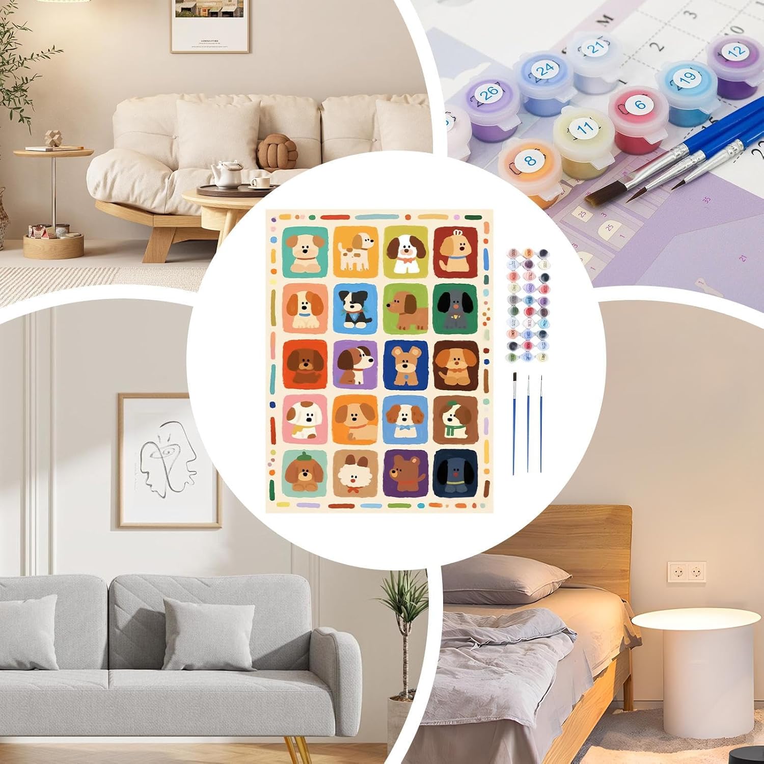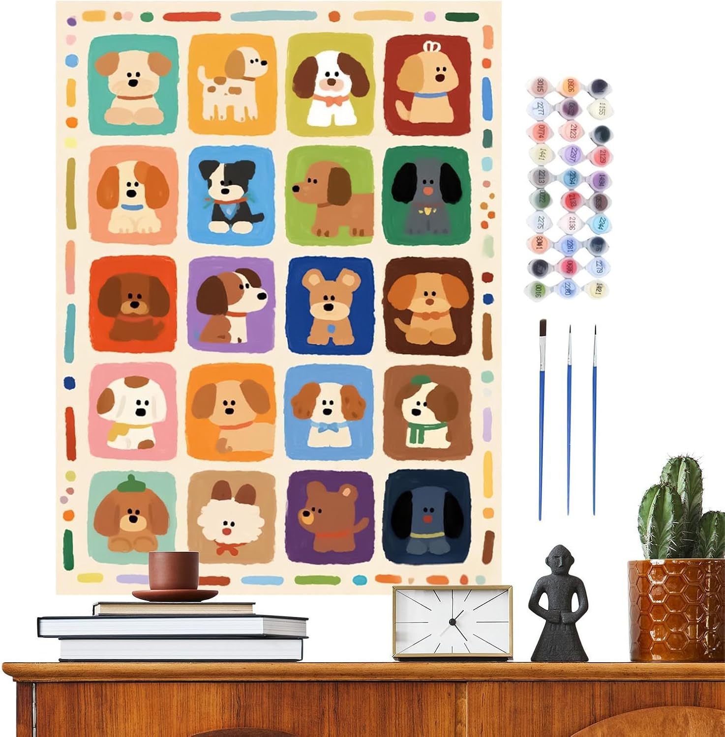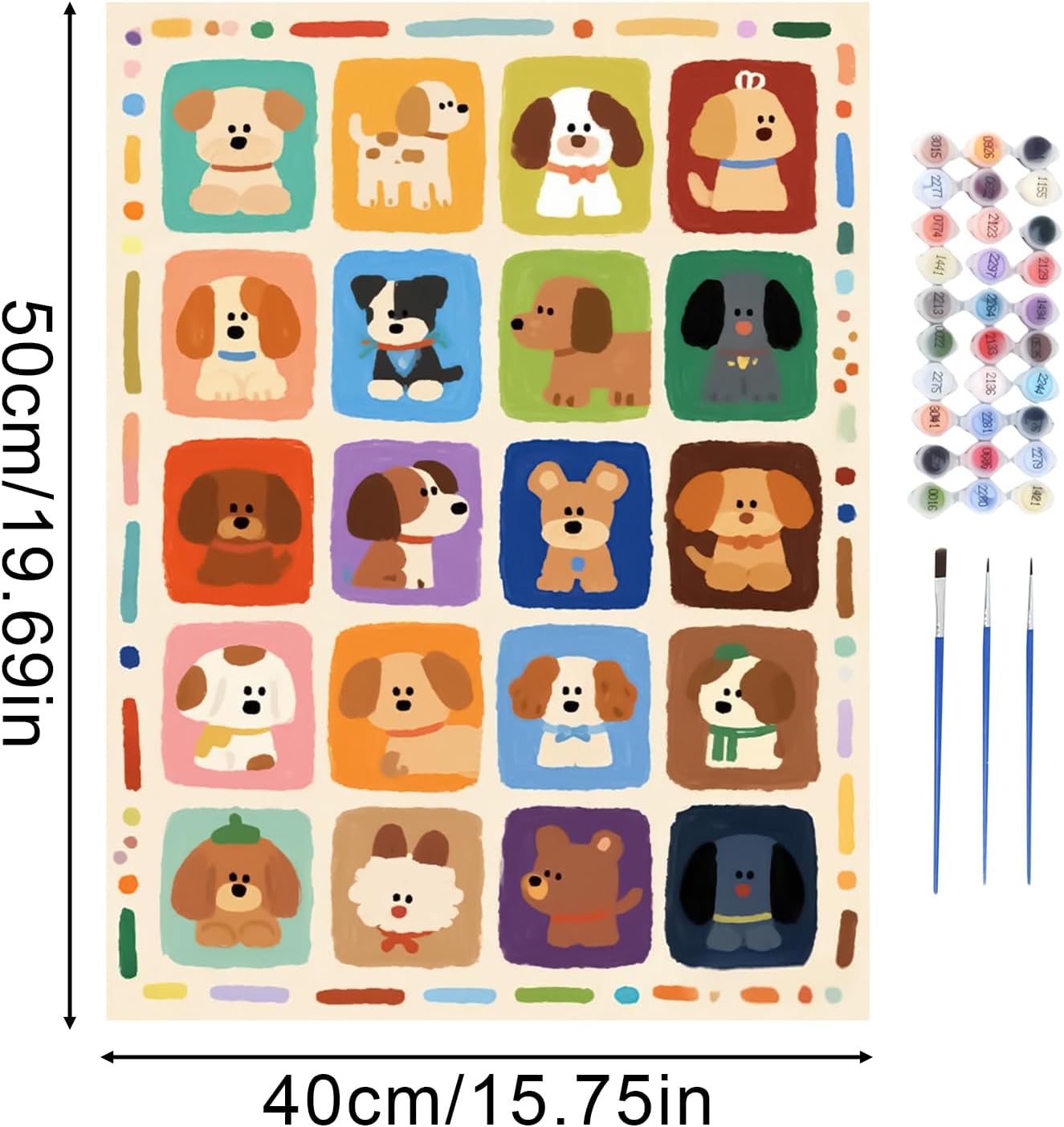 Utilizzo versatile: Partecipa a un processo di pittura a olio handmade rilassante che promuove il relax mentre crei un buon souvenir per la decorazione della parete domestica o un articolo decorativo adatto al genitore-figlio, per momenti di qualità in famiglia Caratteristiche Artistiche: Vernice ad asciugatura rapida con colori vibranti e design inodore sicuro; la formula idrosolubile semplifica la pulizia e la composizione acrilica ecologica supporta l'espressione artistica sostenibile senza compromettere la qualità Potenzia la coordinazione artistica: Interagire con il digitale a olio per cani stimola la creatività, sviluppa abilità manuali e migliora la percezione estetica attraverso un'espressione artistica piacevole e soddisfacente Processo Creativo Senza Sforzo: Produci opere d'arte notevoli passo dopo passo utilizzando un organizzato di tela pre-numerata che garantisce il successo senza richiedere alcuna esperienza artistica d'Arte Decorativa: Scopri il fascino dei temi animali decorativi a modelli sereni e terapeutici, aggiungendo un tocco accogliente e artistico ai tuoi ambienti con questa collezione di quadri digitali per la decorazione domestica