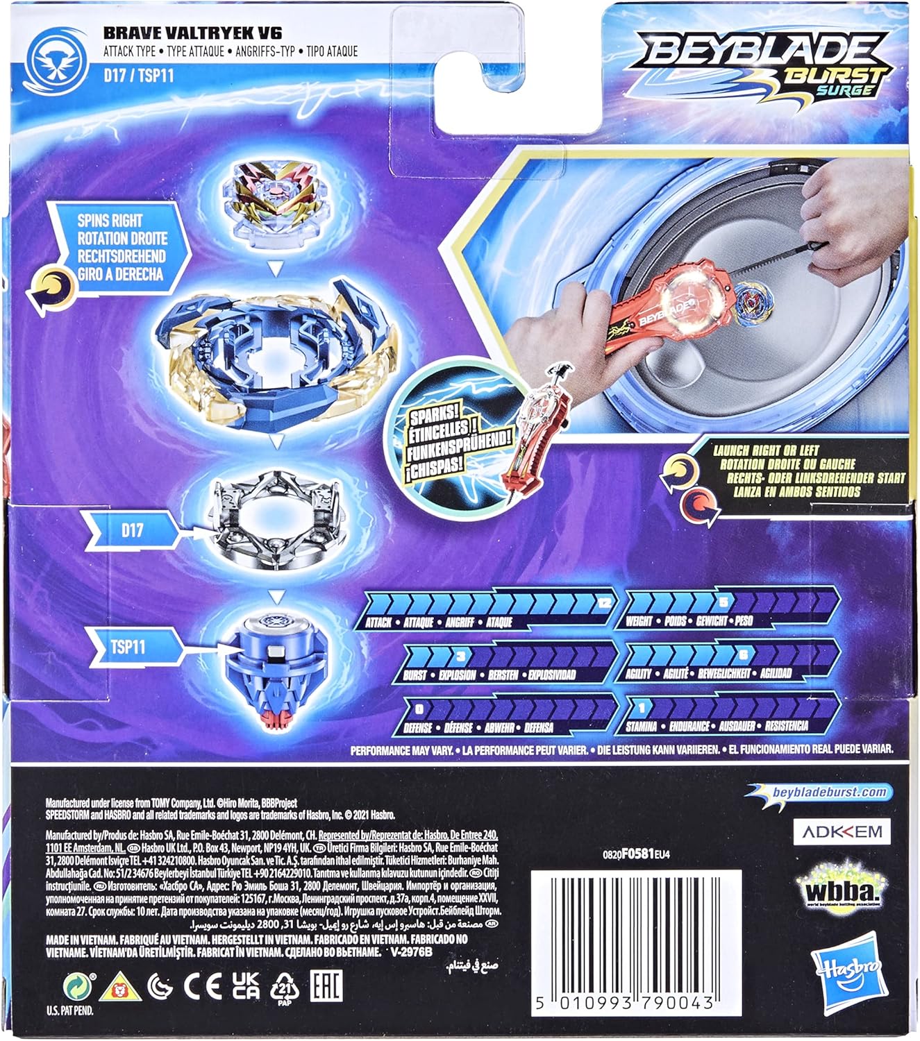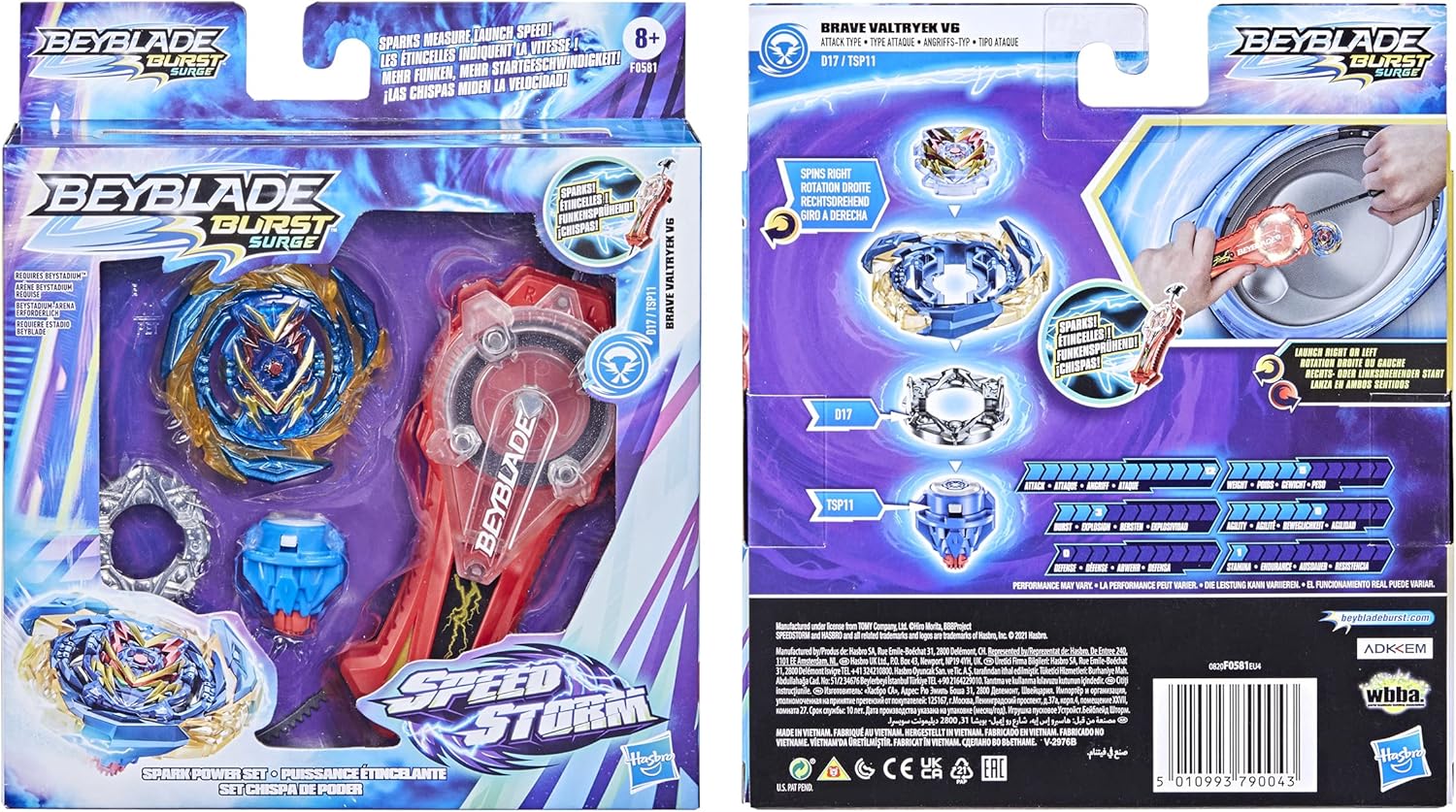 LANCIATORE CHE SPARKS: la parte superiore dello Spark Power Launcher si accende con scintille quando i bambini tirano il ripcord. Più veloce è il lancio, più scintilla BEYBLADE BURST COMPETITIVE BATTLING TOP: Viene fornito con Beyblade Burst Surge Speedstorm Brave Valtryek V6 D17 TSP11 attacco top che gira a destra. Dispone di un componente Storm Chip nella base Energy Layer BATTAGLIA IN UNA SPEEDSTORM BEYSTADIUM: le cime da combattimento competitive Speedstorm sono progettate per sfruttare la potenza dello Speedstorm Beystadium (richiesto Speedstorm Beystadium. Venduto separatamente. Soggetto a disponibilità) COMPETETE IN BATTAGLIE DIGITALI: Scansiona il codice sull'Energy Layer e Spark Power Launcher in alto per sbloccarli nell'app Beyblade Burst. Lascialo strappare! Bambini dagli 8 anni in su: competi in giochi di battaglia testa a testa con trottole Beyblade Burst, lanciatori e giocattoli Beystadium per ragazzi e ragazze dagli 8 anni in su (ciascuno venduto separatamente. Soggetto a disponibilità)