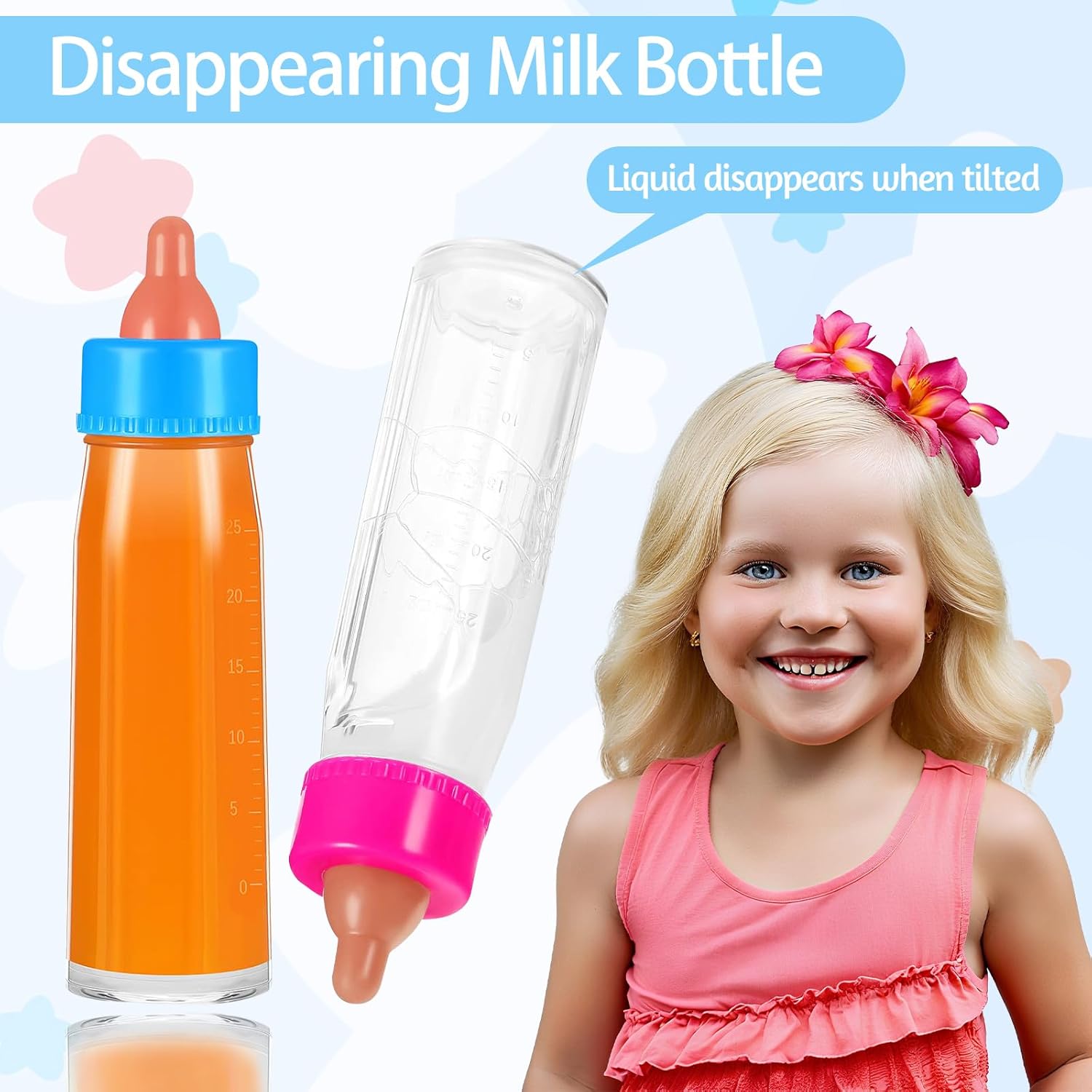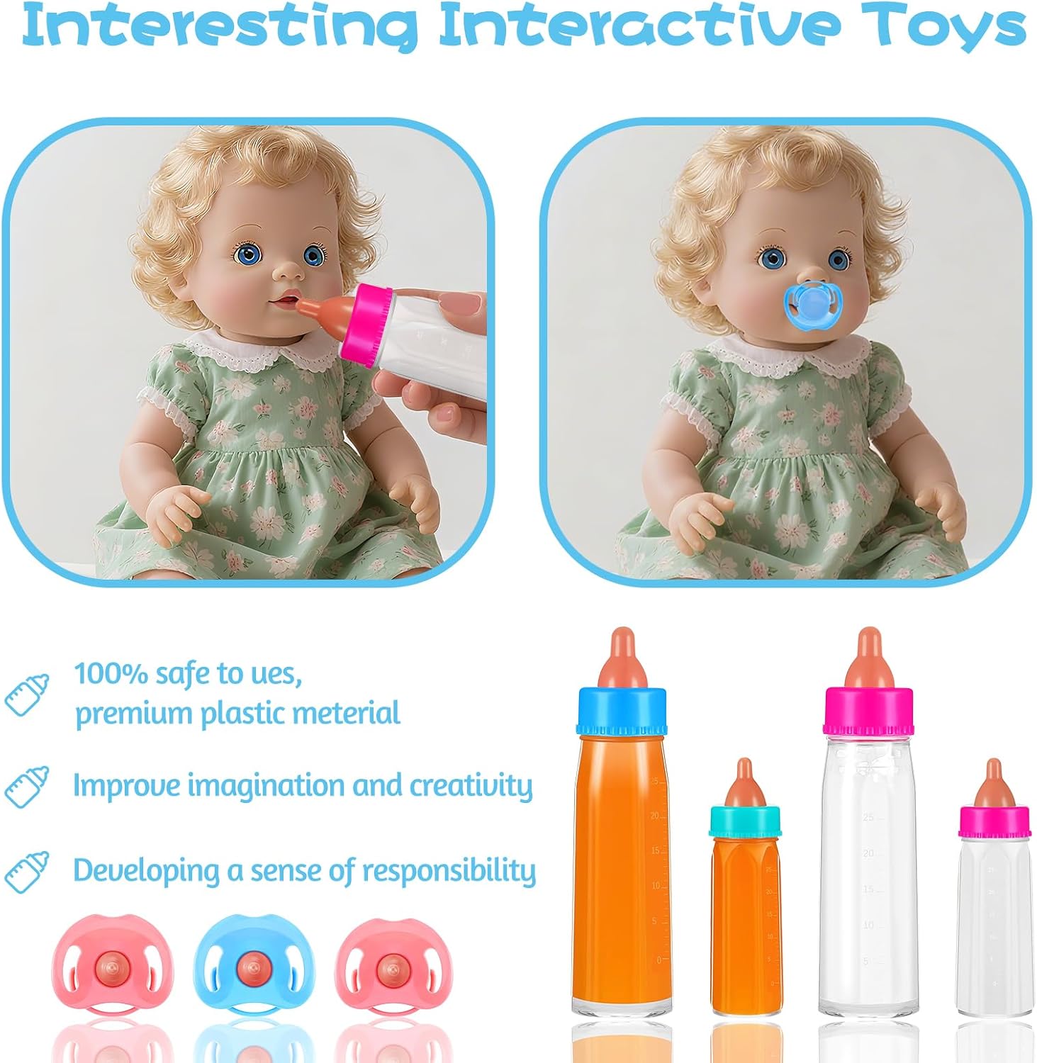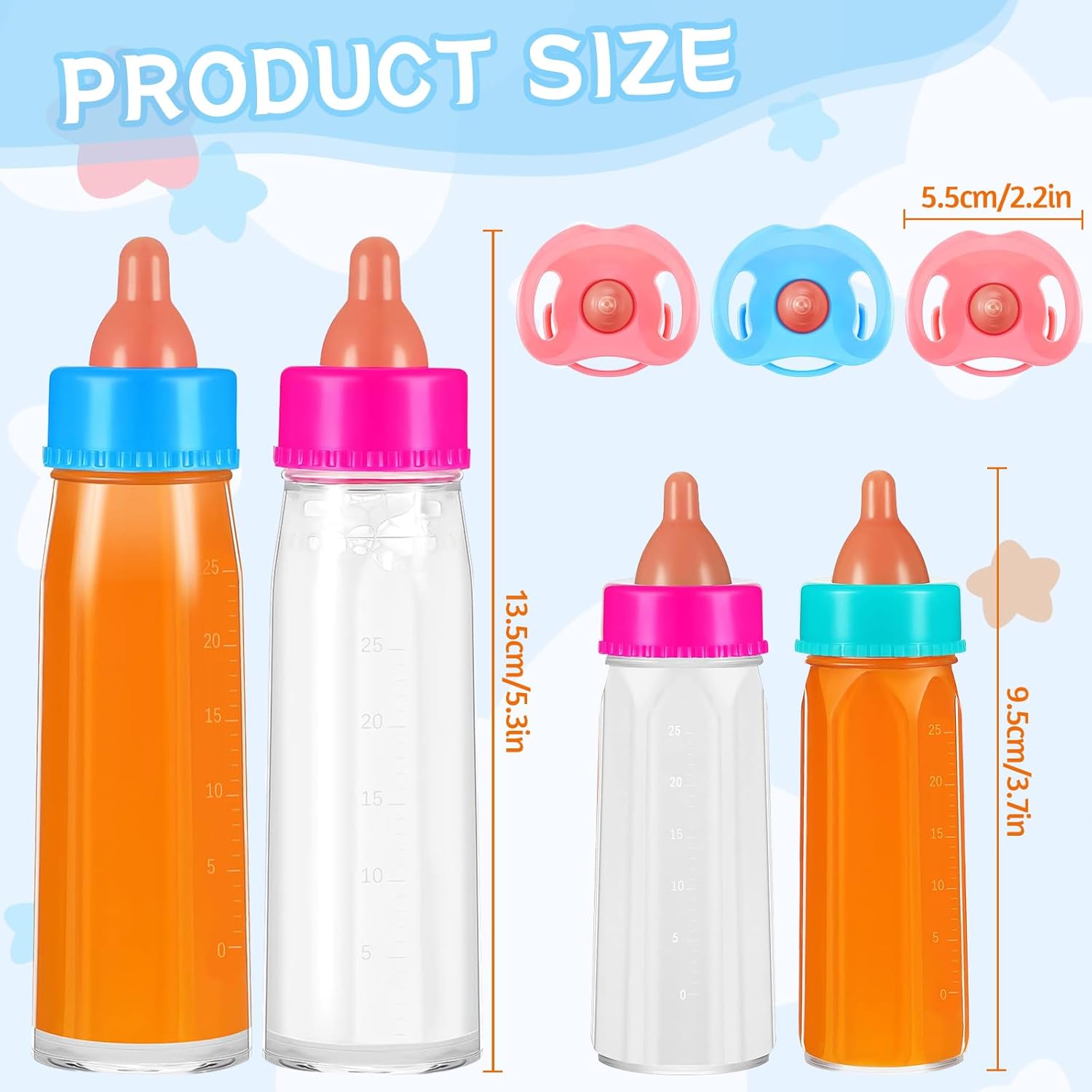 【Il pacchetto include】 Il set di accessori bambole biberon contiene 4 biberon per bambole e 3 ciuccio per bambole, permettendo al bambino di partecipare al gioco di ruolo genitore-figlio, migliorare la comunicazione emotiva ed è l'elica perfetta per il gioco di alimentazione dei bambini simulato. Nota: tutti gli accessori sono solo per bambole giocattoli e non sono adatti per bambini veri. 【Sicuro e senza preoccupazioni】I nostre biberon magico bambole sono realizzati con materiali plastici di alta qualità, atossici e inodori, senza aromi aggiunti, senza BPA, morbidi e comodi al tatto, resistenti e non facili da rompere, sicuri e affidabili, puoi stare certo che il tuo bambino può interagire con la bambola senza preoccuparsi di problemi di salute. 【Biberon bambole】 Questa bottiglia magica latte bambini ha un forte effetto di tenuta e non perde il liquido. Quando si lancia la bottiglia per bambole, l'effetto del liquido nella bottiglia che scompare farà i bambini pieni di curiosità e sorprese, aumenterà il divertimento di giocare, stimolare il desiderio dei bambini di esplorare e portare esperienze interessanti ai bambini. 【Promuovere lo sviluppo】 Questo set di biberon magico giocattolo offre ai bambini opportunità di diventare padri o madri a prendersi cura delle bambole. Può promuovere lo sviluppo della creatività e dell'immaginazione, coltivare la cognizione emotiva e il senso di responsabilità, coltivare le capacità e i valori della comunicazione, che sono favorevoli allo sviluppo del cervello e alla crescita emotiva. 【Regalo ideale】 Questo set di accessori per bambole è perfetto per regalare a tuo figlio come regalo di Natale, regalo di compleanno, regalo di nuovo anno, regalo per la doccia per bambini ed è un regalo che è sia divertente che educativo, offrendo a tuo figlio più opportunità di giocare e arricchire la sua vita d'infanzia.