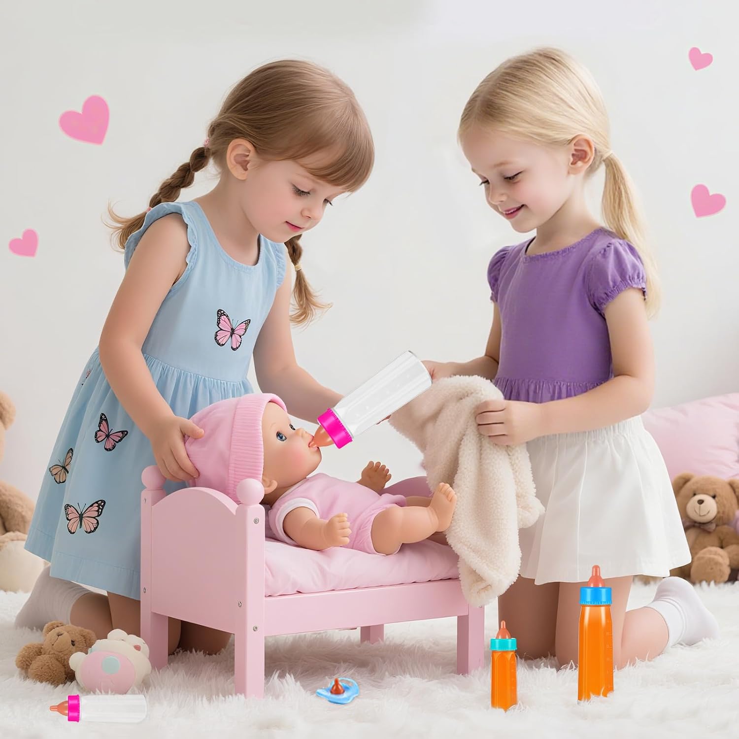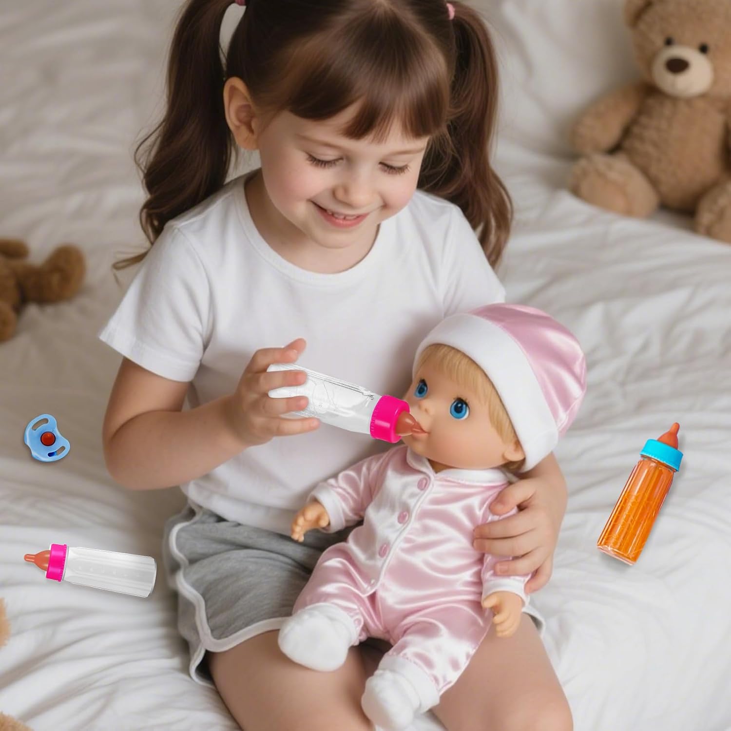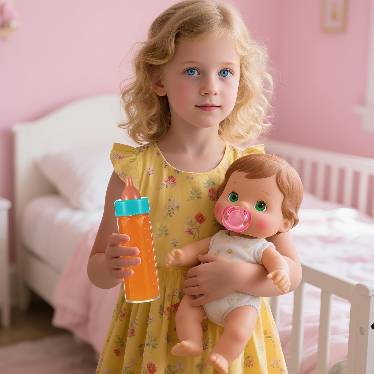 【Il pacchetto include】 Il set di accessori bambole biberon contiene 4 biberon per bambole e 3 ciuccio per bambole, permettendo al bambino di partecipare al gioco di ruolo genitore-figlio, migliorare la comunicazione emotiva ed è l'elica perfetta per il gioco di alimentazione dei bambini simulato. Nota: tutti gli accessori sono solo per bambole giocattoli e non sono adatti per bambini veri. 【Sicuro e senza preoccupazioni】I nostre biberon magico bambole sono realizzati con materiali plastici di alta qualità, atossici e inodori, senza aromi aggiunti, senza BPA, morbidi e comodi al tatto, resistenti e non facili da rompere, sicuri e affidabili, puoi stare certo che il tuo bambino può interagire con la bambola senza preoccuparsi di problemi di salute. 【Biberon bambole】 Questa bottiglia magica latte bambini ha un forte effetto di tenuta e non perde il liquido. Quando si lancia la bottiglia per bambole, l'effetto del liquido nella bottiglia che scompare farà i bambini pieni di curiosità e sorprese, aumenterà il divertimento di giocare, stimolare il desiderio dei bambini di esplorare e portare esperienze interessanti ai bambini. 【Promuovere lo sviluppo】 Questo set di biberon magico giocattolo offre ai bambini opportunità di diventare padri o madri a prendersi cura delle bambole. Può promuovere lo sviluppo della creatività e dell'immaginazione, coltivare la cognizione emotiva e il senso di responsabilità, coltivare le capacità e i valori della comunicazione, che sono favorevoli allo sviluppo del cervello e alla crescita emotiva. 【Regalo ideale】 Questo set di accessori per bambole è perfetto per regalare a tuo figlio come regalo di Natale, regalo di compleanno, regalo di nuovo anno, regalo per la doccia per bambini ed è un regalo che è sia divertente che educativo, offrendo a tuo figlio più opportunità di giocare e arricchire la sua vita d'infanzia.