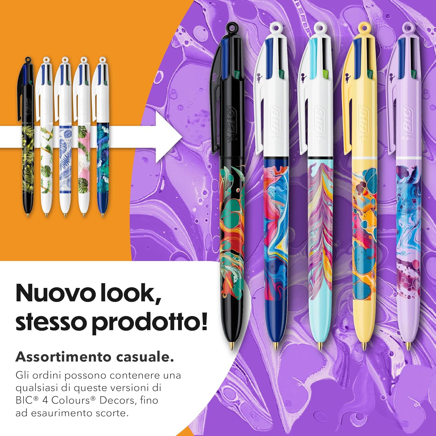Con la serie di penne a sfera BIC 4 Colours Decors Hydro Dipping esprimi il tuo lato creativo attraverso disegni divertenti e di tendenza Per gli appassionati: questa penna è creata in diverse collezioni, ad ognuno la sua Blu, rosso, verde, nero: 4 colori d’inchiostro da scegliere, ottimi per organizzare gli appunti o realizzare bullet journal creativi Con 4 punte medie da 1.0 mm queste penne a sfera si adattano a diversi usi, creando linee nette e ben definite Fabbricate in Francia, queste penne a sfera sono estremamente durevoli con 4 cartucce che scrivono in media 6 km