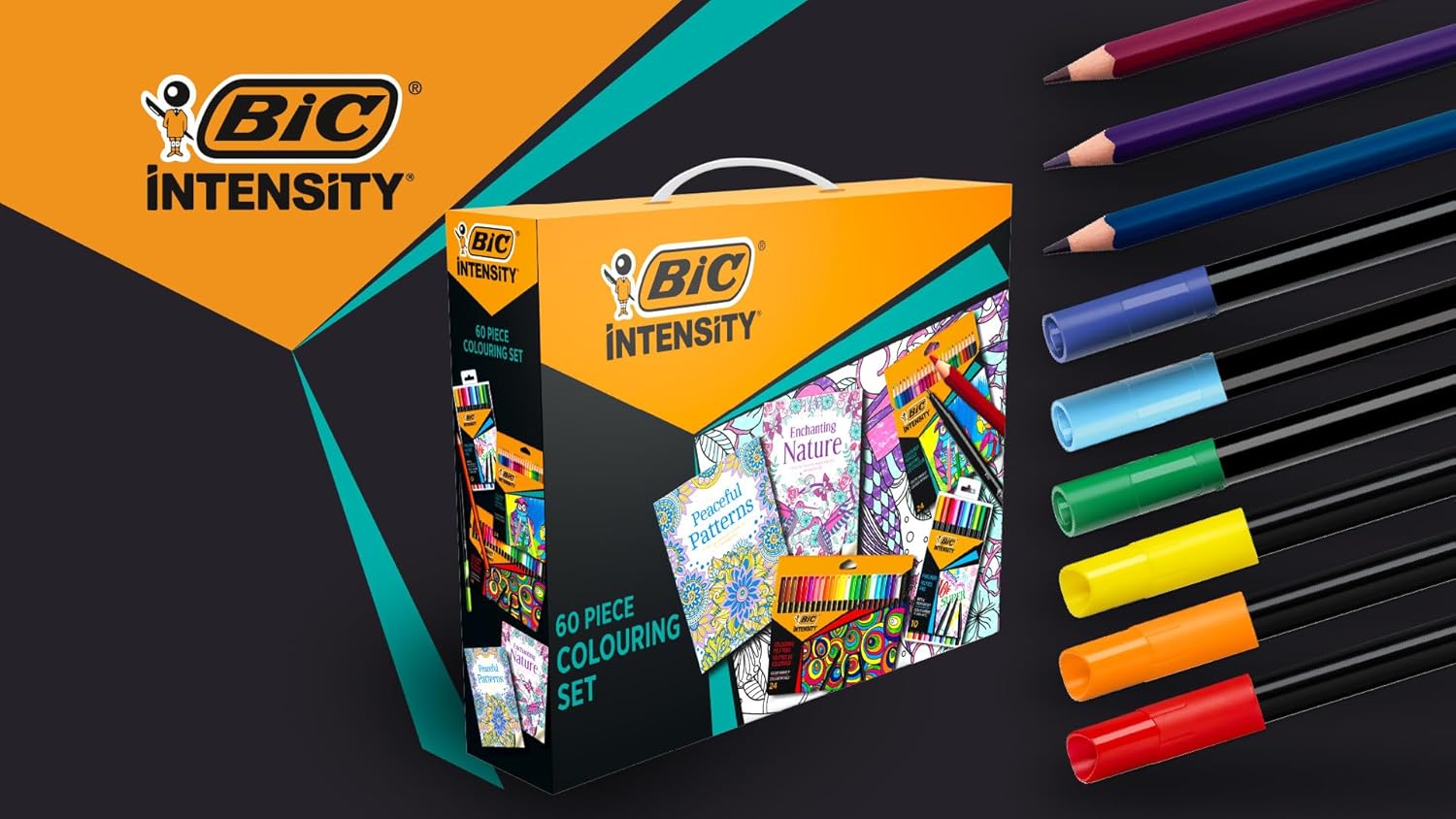 Esclusiva per Amazon Riscopri la tua creatività con questo set BIC Intensity, pensato per riaccendere l'artista che è in te Un kit completo per permettere a chiunque di esprimere sé stessi e la propria arte e migliorare il proprio umore All'interno di questo set troverai: 24 matite colorate, 24 pennarelli colorati e 10 fine liner colorati Completano il set due libri da colorare per adulti Prodotto in Europa. Qualità garantita BIC