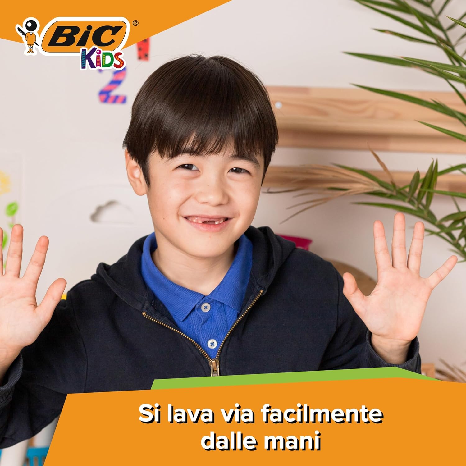 Sviluppa la creatività dei più piccoli con questo set di 36 strumenti per colorare Pensato per i bambini fino a 5 anni, questo set include 12 matite colorate BIC Kids, realizzate con fusto triangolare e privo di legno e con mine resistenti agli urti Il kit include inoltre 12 pennarelli colorati BIC Kids Couleur, con inchiostro lavabile e punta tonda Completano il set 12 pastelli a cera BIC Kids, con fusto triangolare per agevolare l'impugnatura nelle manine dei bambini Qualità BIC