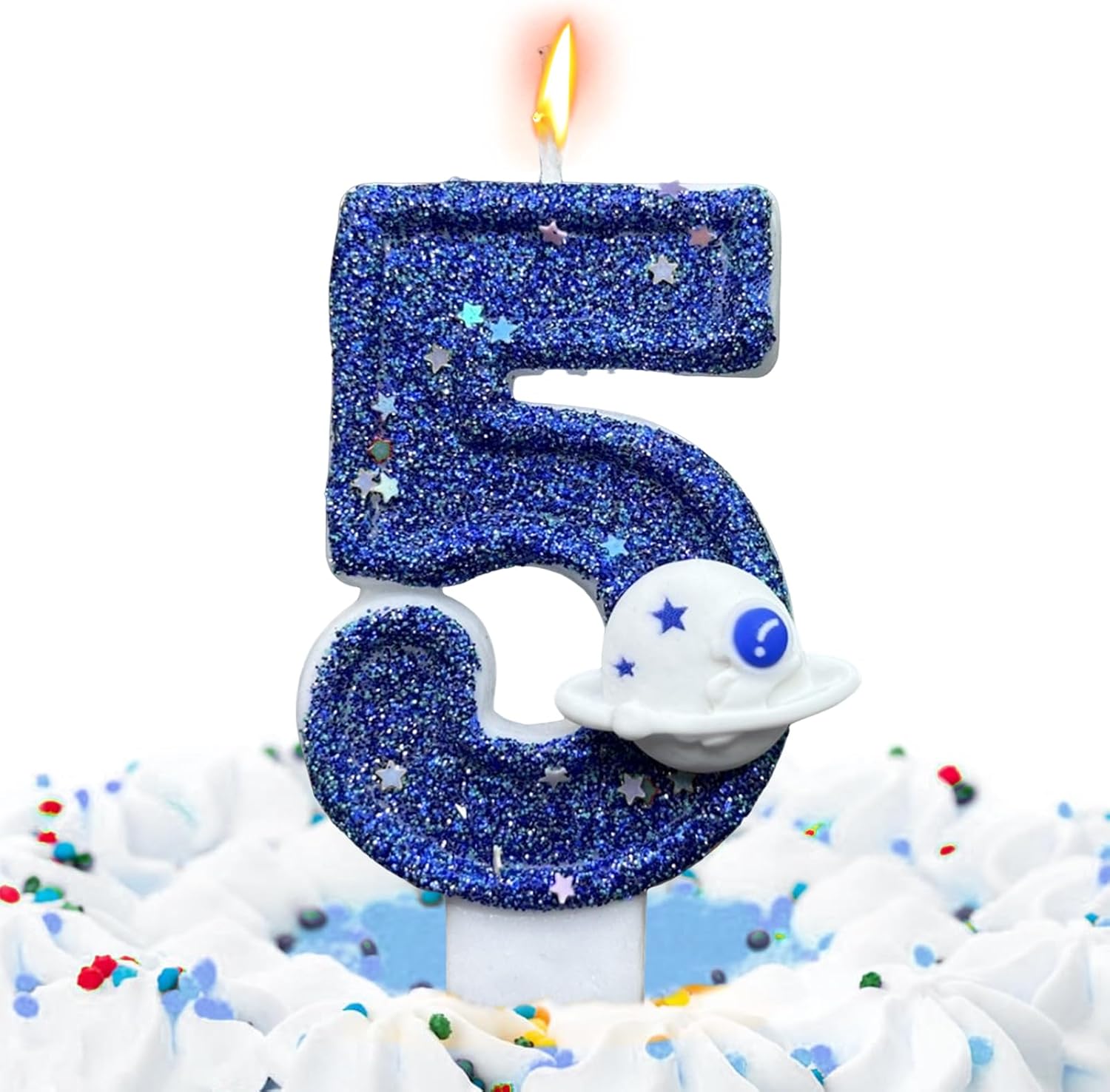 Design di colore blu: preparati a stupire in qualsiasi celebrazione di compleanno con il fascino e l'aspetto brillante di questa candela Blue Number che aggiunge divertimento con un design scintillante Decorazione versatile: set completi di candele digitali da 0 a 9 numeri sono disponibili e possono essere combinati per qualsiasi età, rendendo facile aggiungere un tocco alla tua celebrazione speciale Attraente decorazione del pianeta spaziale: infondere soggezione ed eccitazione alla tua festa di compleanno con questo accattivante topper per torta di compleanno con design a pianeta spaziale blu. Aggiungi un tocco di fantasia alla torta tradizionale, creando un bellissimo paesaggio che rende la celebrazione più memorabile Sicuro per gli utenti: il fondo della candela è progettato saldamente, rendendolo facile da inserire nella torta, assicurando che non si pieghi o cada, fornendo più sicurezza per le celebrazioni e rendendolo sicuro per i bambini da usare Progettato per feste: candele decorative ideali per una festa a tema spaziale per i bambini, parte dell'intera decorazione della festa, o un'aggiunta romantica a una festa per adulti, non solo il momento clou della torta di compleanno