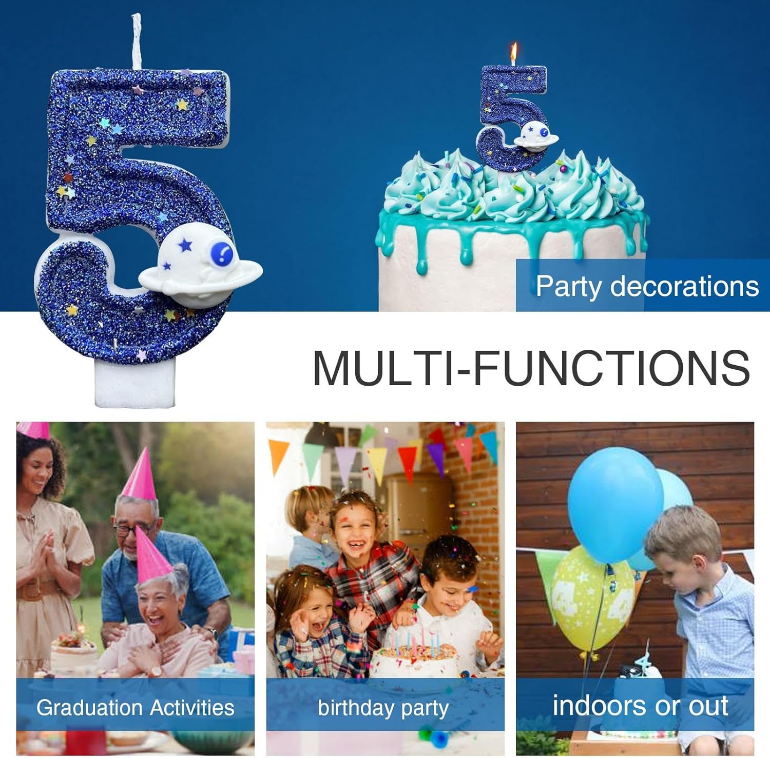Design di colore blu: preparati a stupire in qualsiasi celebrazione di compleanno con il fascino e l'aspetto brillante di questa candela Blue Number che aggiunge divertimento con un design scintillante Decorazione versatile: set completi di candele digitali da 0 a 9 numeri sono disponibili e possono essere combinati per qualsiasi età, rendendo facile aggiungere un tocco alla tua celebrazione speciale Attraente decorazione del pianeta spaziale: infondere soggezione ed eccitazione alla tua festa di compleanno con questo accattivante topper per torta di compleanno con design a pianeta spaziale blu. Aggiungi un tocco di fantasia alla torta tradizionale, creando un bellissimo paesaggio che rende la celebrazione più memorabile Sicuro per gli utenti: il fondo della candela è progettato saldamente, rendendolo facile da inserire nella torta, assicurando che non si pieghi o cada, fornendo più sicurezza per le celebrazioni e rendendolo sicuro per i bambini da usare Progettato per feste: candele decorative ideali per una festa a tema spaziale per i bambini, parte dell'intera decorazione della festa, o un'aggiunta romantica a una festa per adulti, non solo il momento clou della torta di compleanno