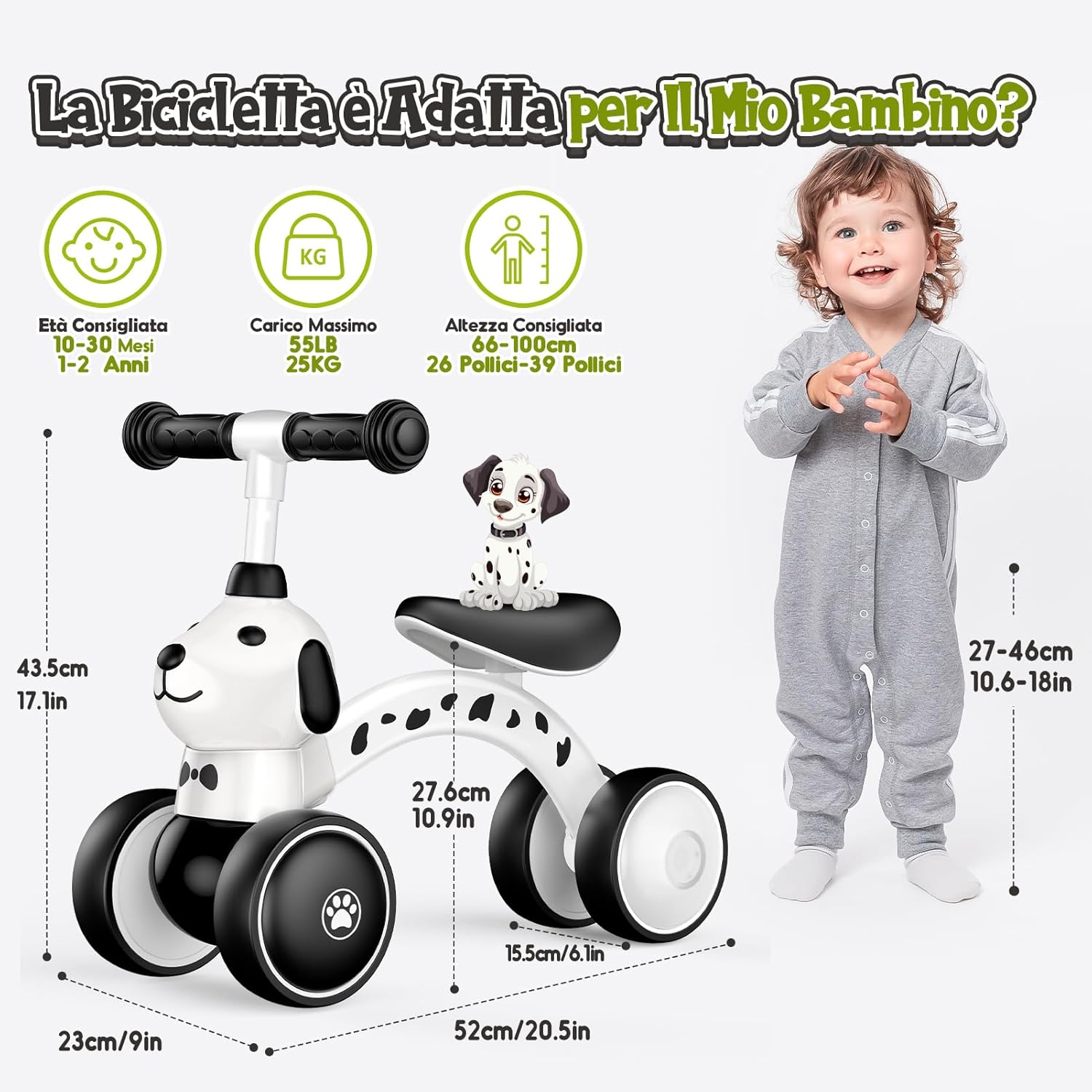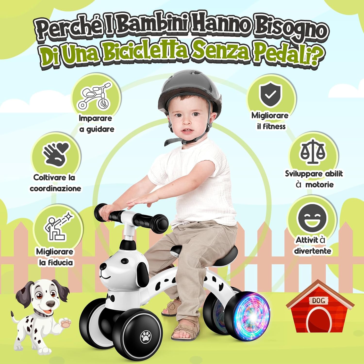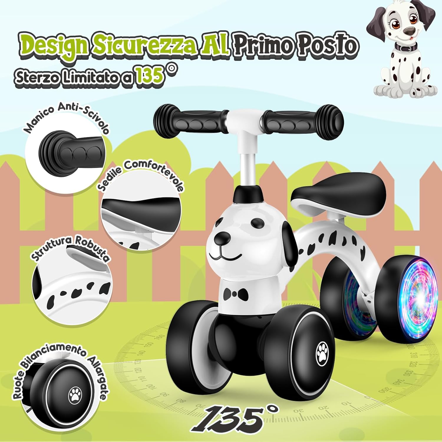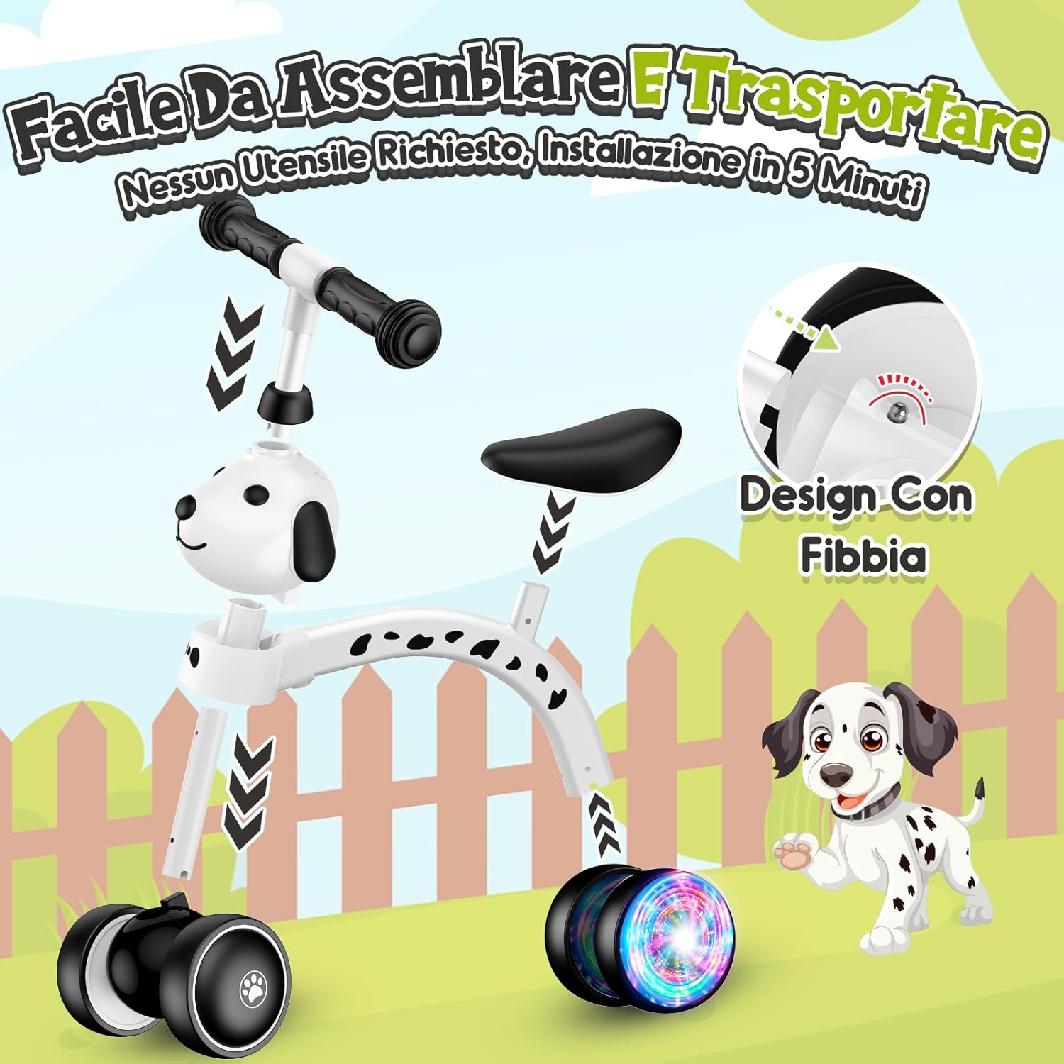 🌈【Ruote a LED colorate】Per aumentare il divertimento di giocattoli bambino 1 2 Anno, le sue ruote sono dotate di una vivace illuminazione a LED (senza batterie, si illuminano durante il movimento). Visibili anche alla luce del giorno, brillano davvero di notte. Siamo certi che i bambini saranno entusiasti del design luminoso delle ruote. 👶🏻【Progettazione orientata alla sicurezza】Con la sicurezza dei bambini in primo piano, bicicletta bambini 1 2 anni incorpora diverse caratteristiche che migliorano la sicurezza. Tra queste, un manubrio morbido e antiscivolo, uno sterzo limitato a 135° per prevenire le cadute laterali, un sedile morbido e confortevole, un telaio resistente in acciaio al carbonio e ruote allargate e silenziose per una maggiore trazione. 🛠️【Veloce montaggio in 5 minuti】Non sono necessari attrezzi; grazie al nostro design a fibbia, il montaggio è un gioco da ragazzi. Le fasi di montaggio sono le seguenti: ① Fissare la ruota anteriore e il manubrio ② Fissare il sedile ③ Fissare la ruota posteriore. Per istruzioni dettagliate, consultare il manuale in dotazione. 🧠【Prima bicicletta senza pedali】Il nostro triciclo di equilibrio è fatto su misura per i bambini dai 12 mesi in su. È uno strumento eccellente durante gli anni della prima infanzia, in quanto favorisce la coordinazione, aumenta la fiducia, migliora la forma fisica e insegna le capacità di equilibrio. 🎠【Garanzia di gioia】Siamo certi che questo regali bambini sarà un regalo Bambino 1 2 anni eccezionale. Controllare le linee guida per l'altezza e il peso consigliati. Consigliato per un'età compresa tra i 10 e i 24 mesi, con un peso massimo di 55 libbre e un'altezza consigliata di 26-39 pollici.